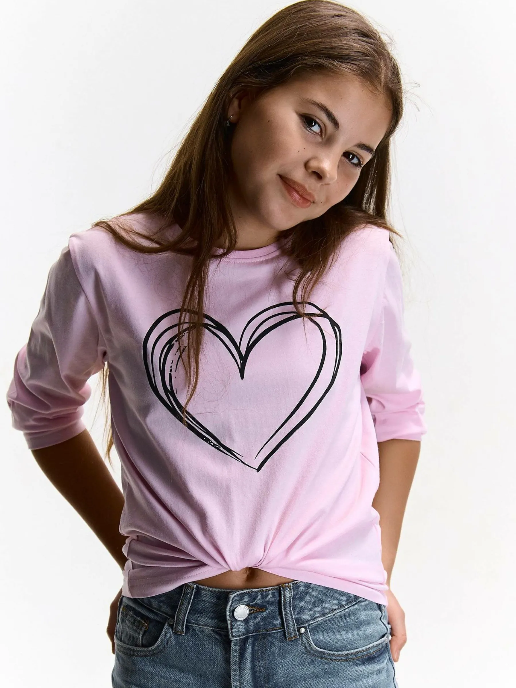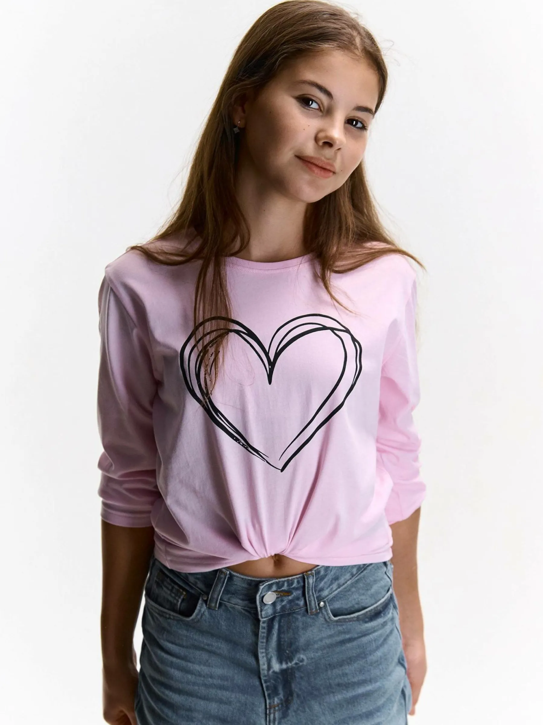 Kolor: różowyKrój: podstawowyTyp: koszulkaRekaw: długi rękawDługość: krótkiPattern style: z nadrukiemDetal: nad…
