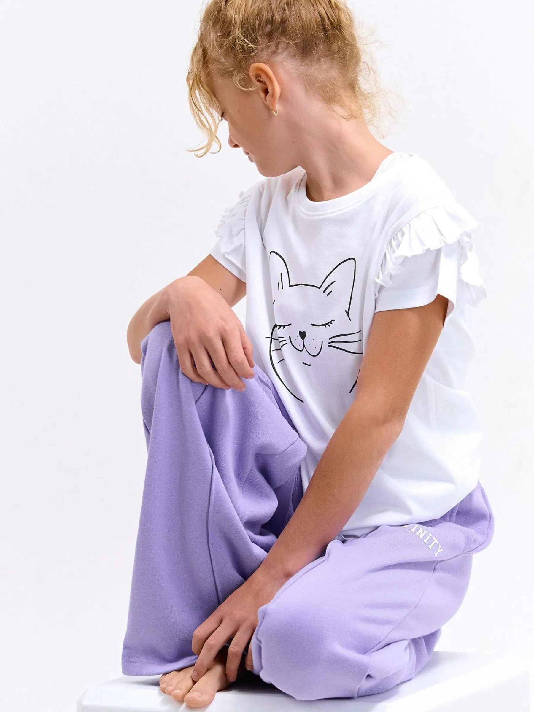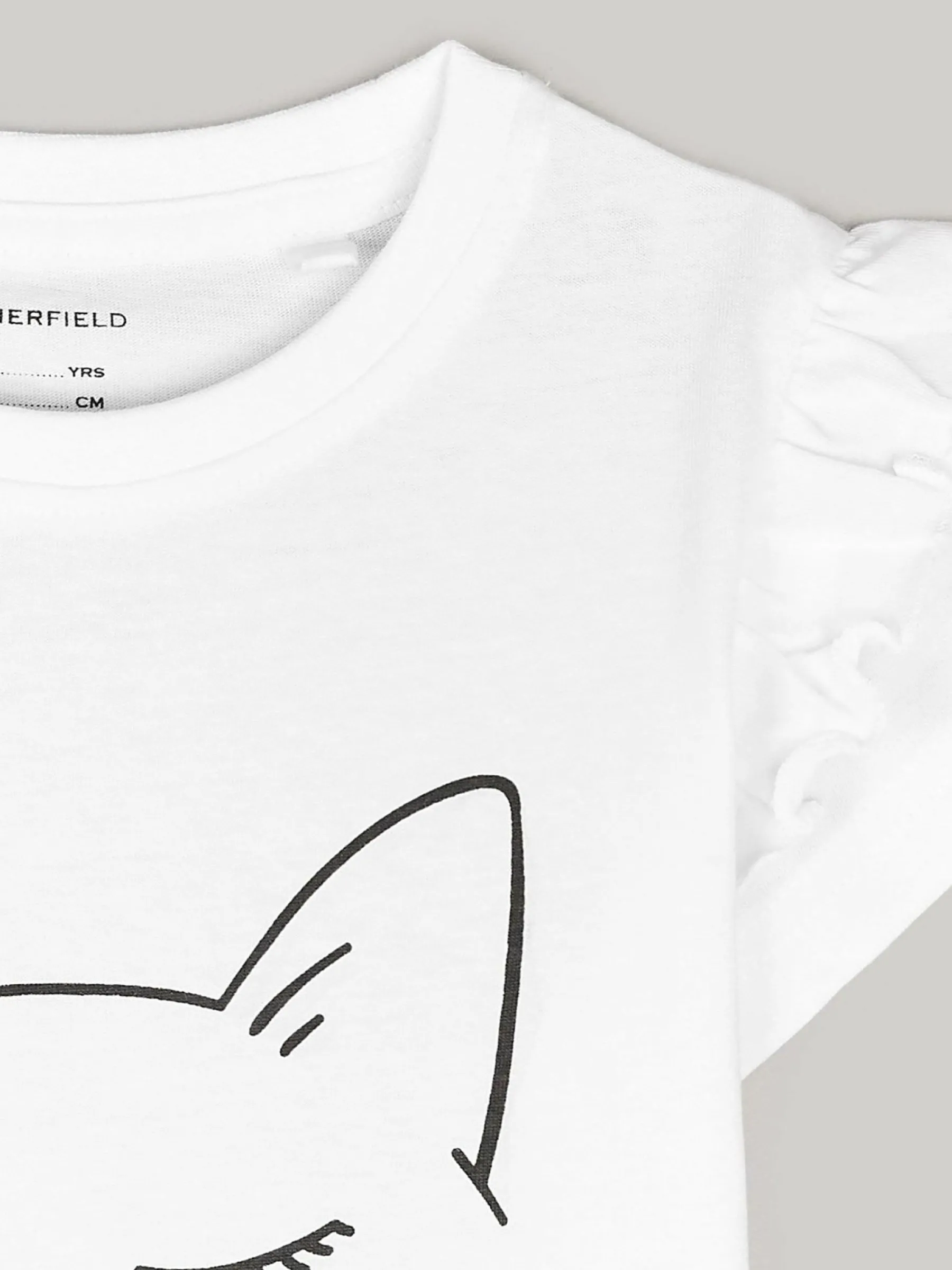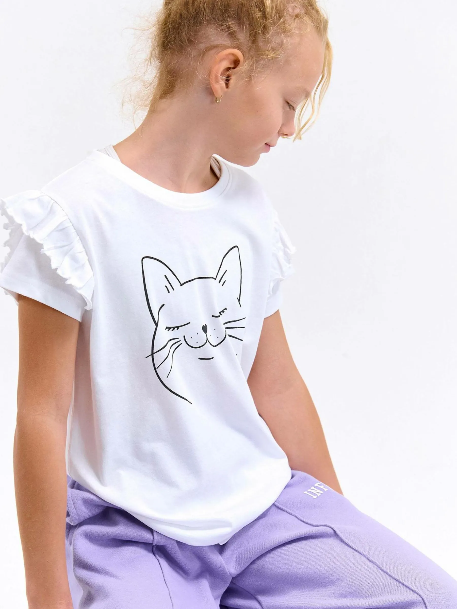 Kolor: białyKrój: z falbanąTyp: koszulkaRekaw: krótki rękawDługość: krótkiPattern style: z nadrukiemDetal: nad …