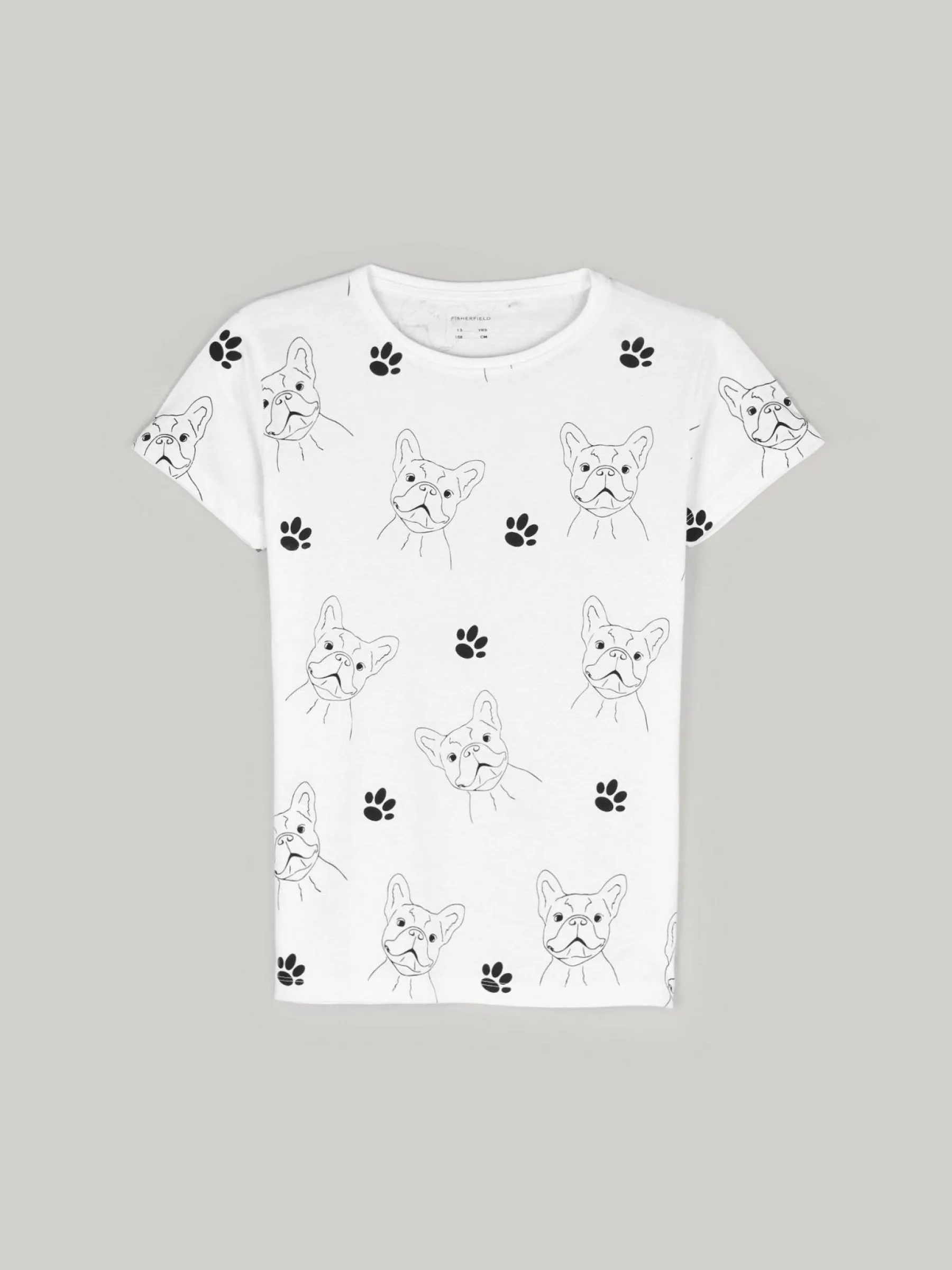 Kolor: białyKrój: regularTyp: koszulkaRekaw: krótki rękawDługość: krótkiPattern style: z nadrukiemDetal: nad gł…