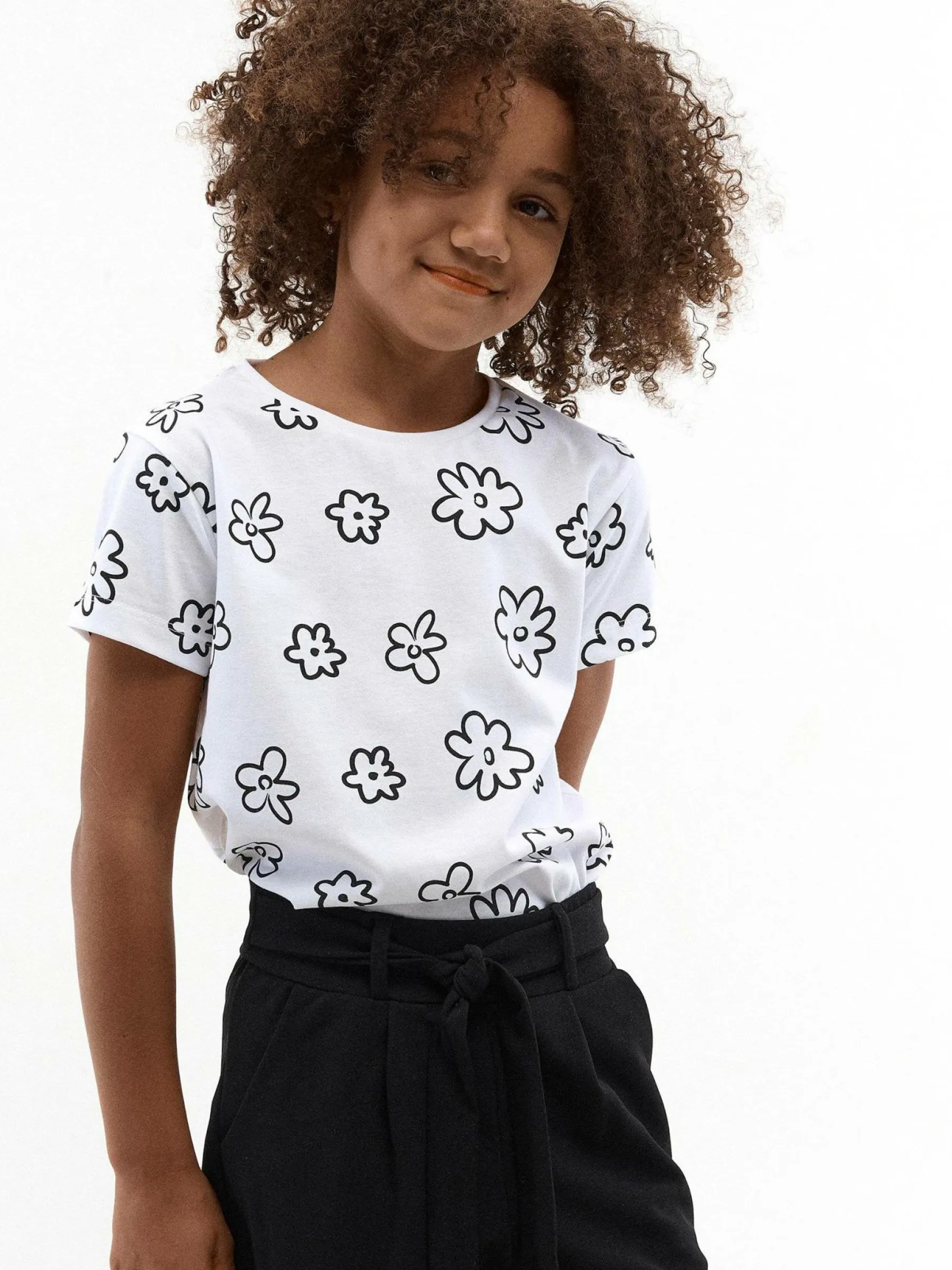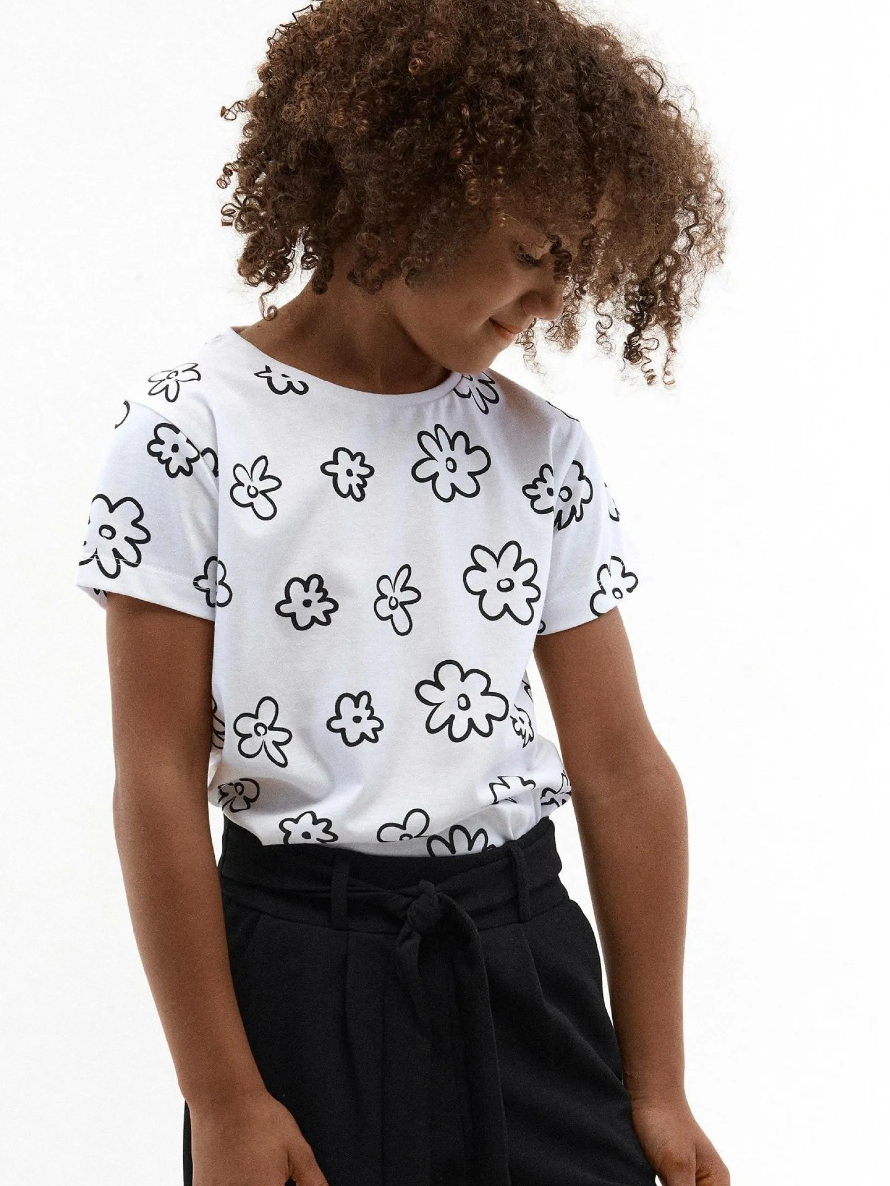 Kolor: białyKrój: podstawowyTyp: koszulkaRekaw: krótki rękawDługość: krótkiPattern style: z nadrukiem, kwiatoweD…