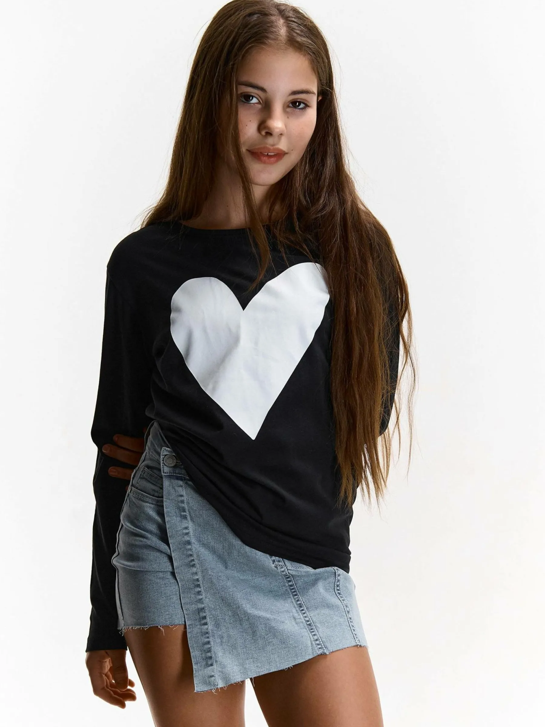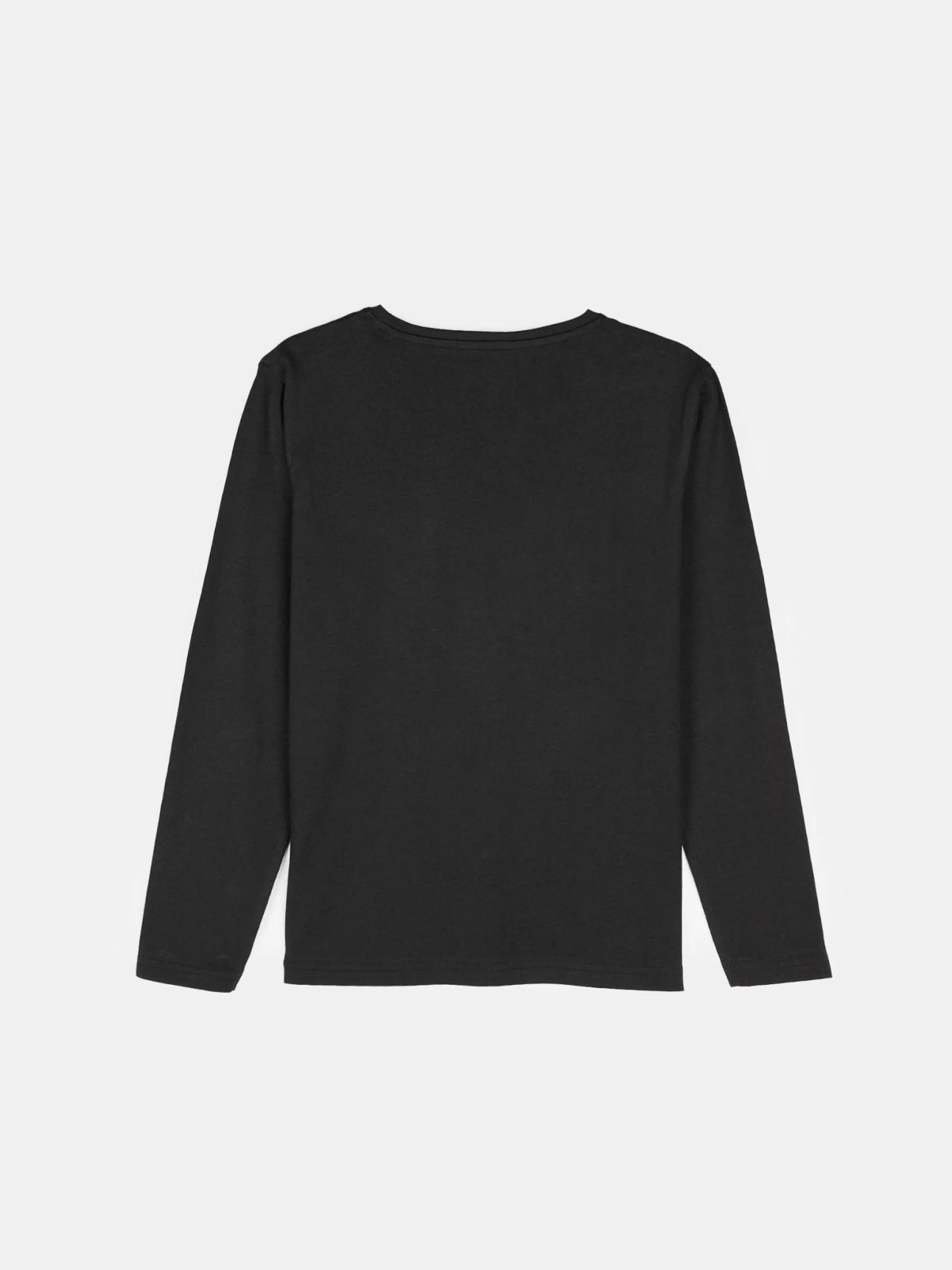 Kolor: czarnyKrój: podstawowyTyp: koszulkaRekaw: długi rękawDługość: krótkiPattern style: z nadrukiemDetal: nad g…