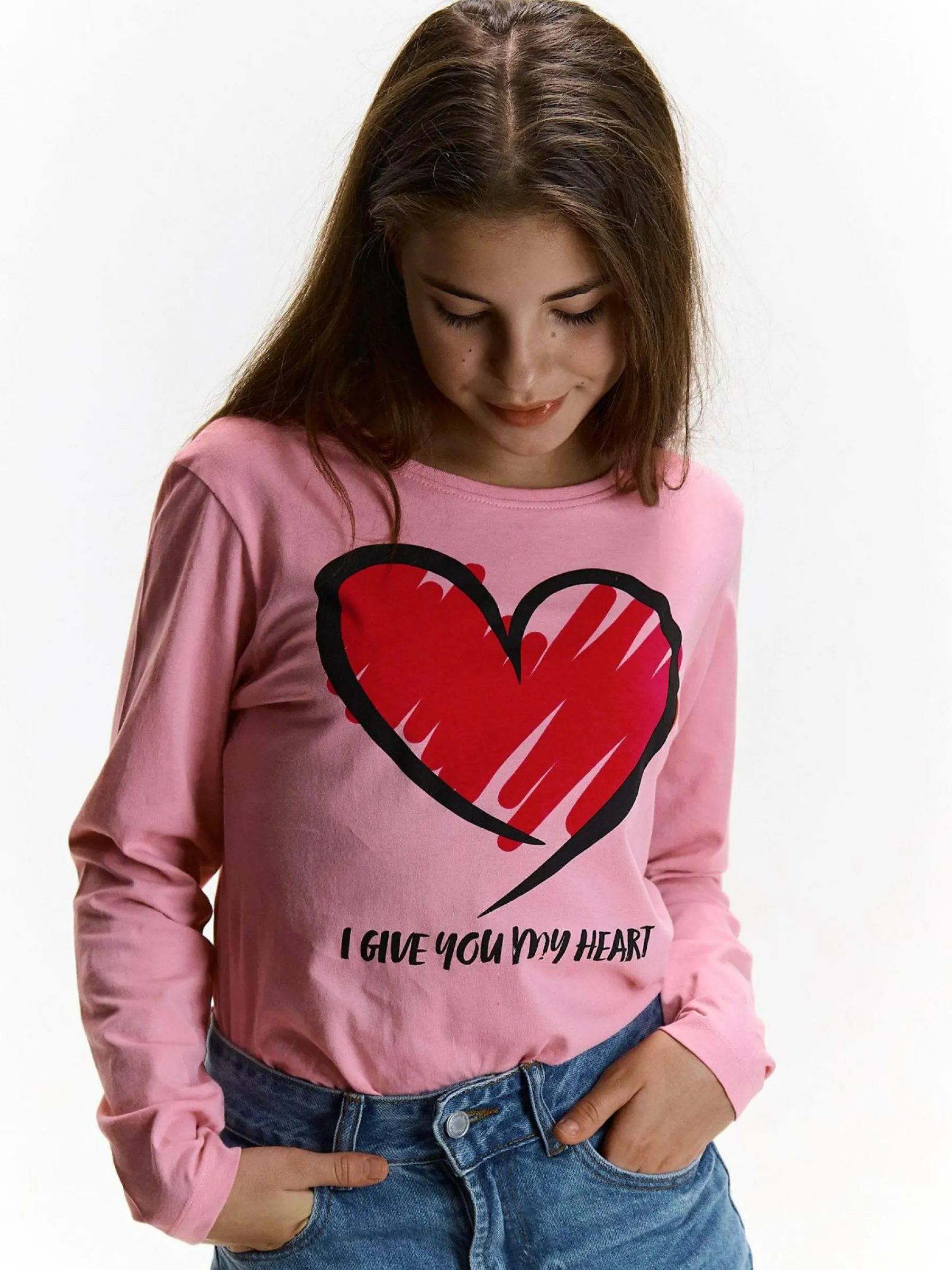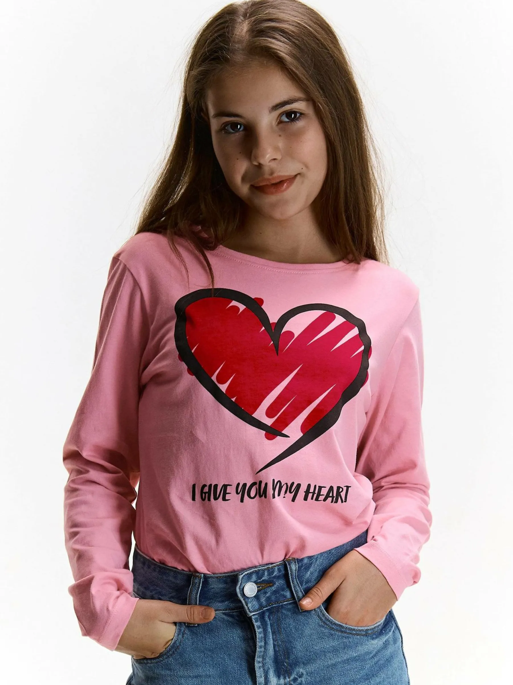 Kolor: różowyKrój: podstawowyTyp: koszulkaRekaw: długi rękawDługość: krótkiPattern style: z nadrukiemDetal: nad…