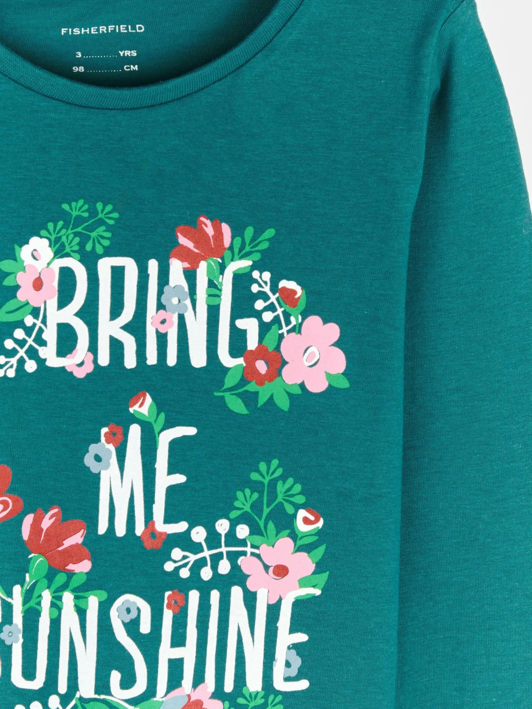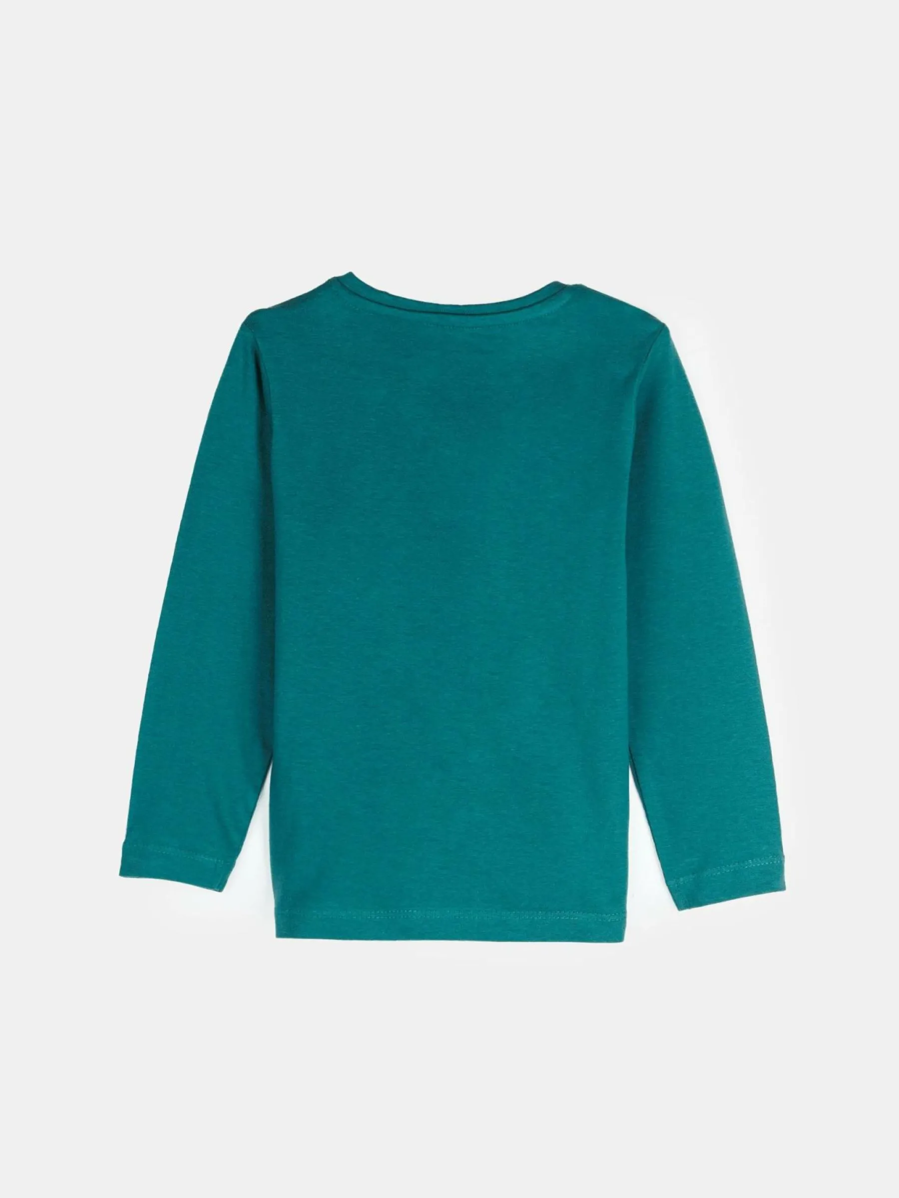 Kolor: zielonyKrój: regularTyp: koszulkaRekaw: długi rękawDługość: krótkiPattern style: z nadrukiemDetal: nad gł…