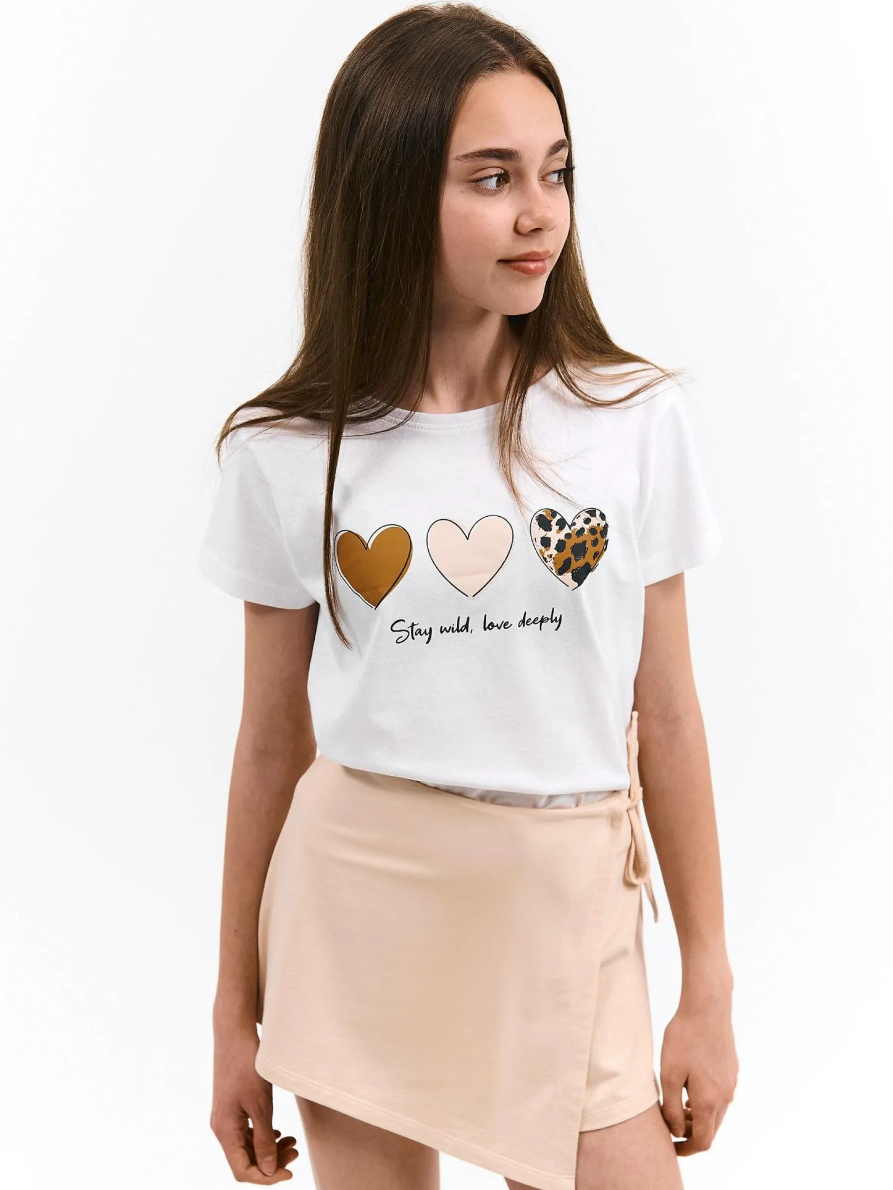 Kolor: białyKrój: regularTyp: koszulkaRekaw: krótki rękawDługość: krótkiPattern style: z nadrukiemDetal: nad gł…