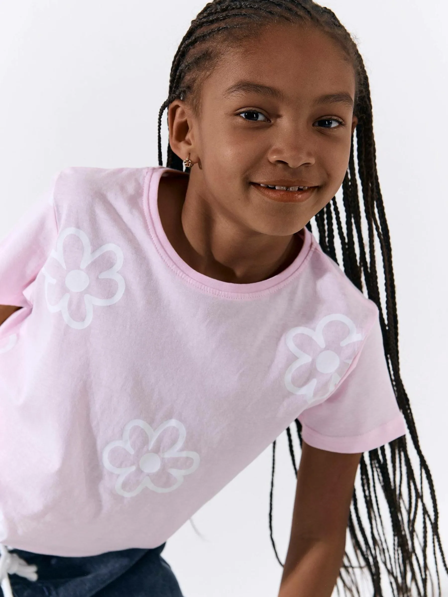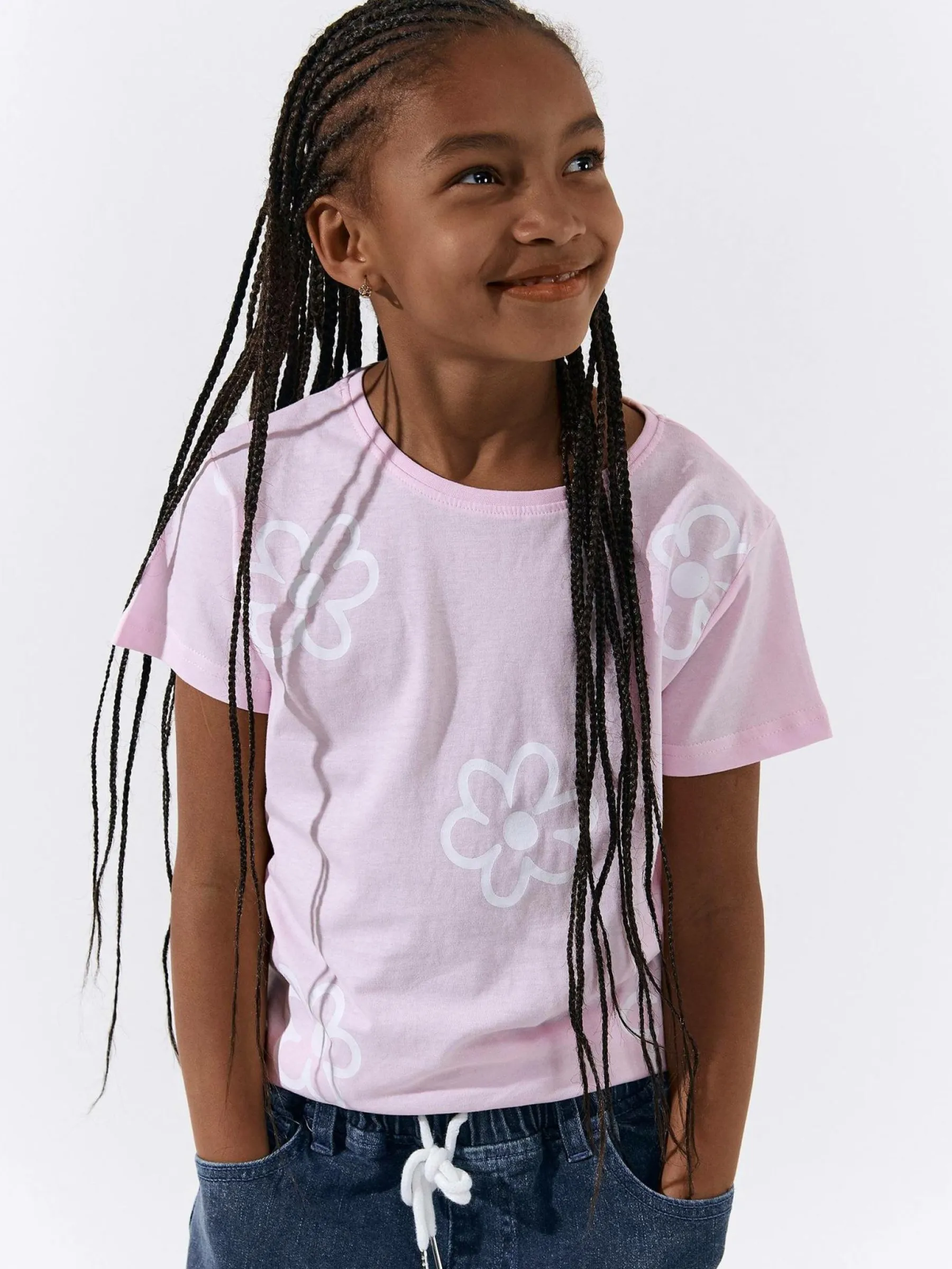 Kolor: różowyKrój: regularTyp: koszulkaRekaw: krótki rękawDługość: krótkiPattern style: z nadrukiemDetal: nad g…