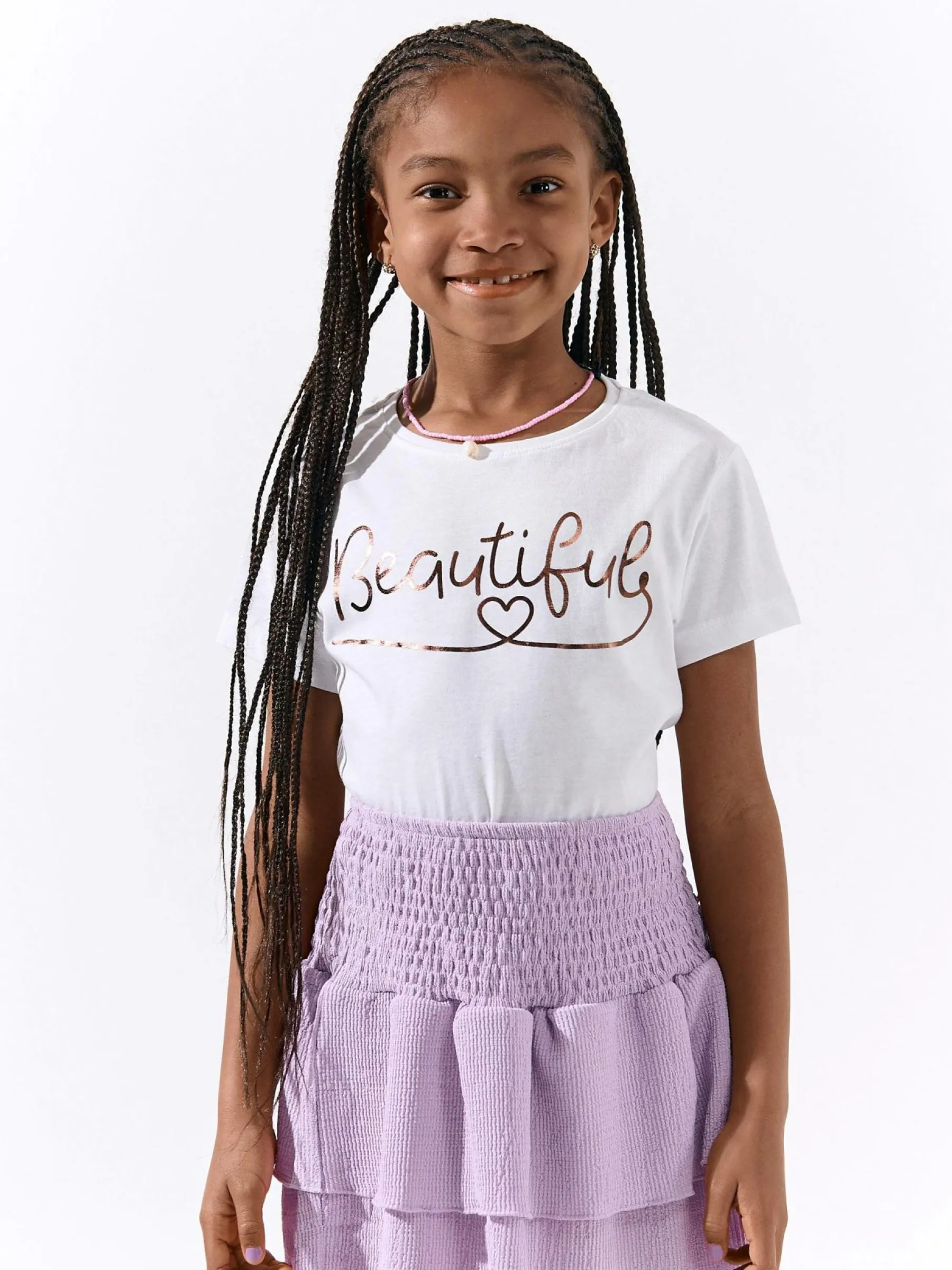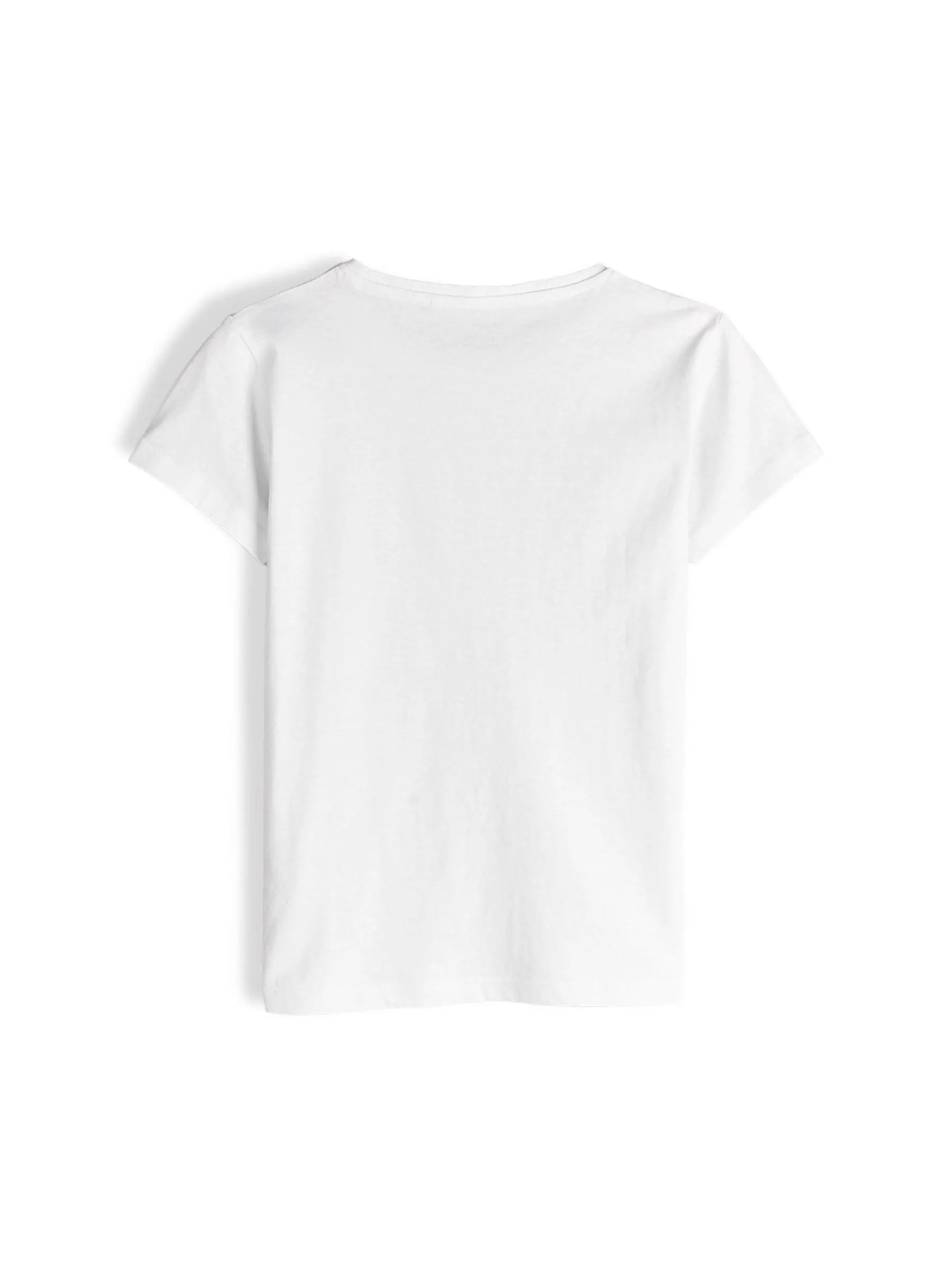 Kolor: białyKrój: regularTyp: koszulkaRekaw: krótki rękawDługość: krótkiPattern style: z nadrukiemDetal: nad gł…