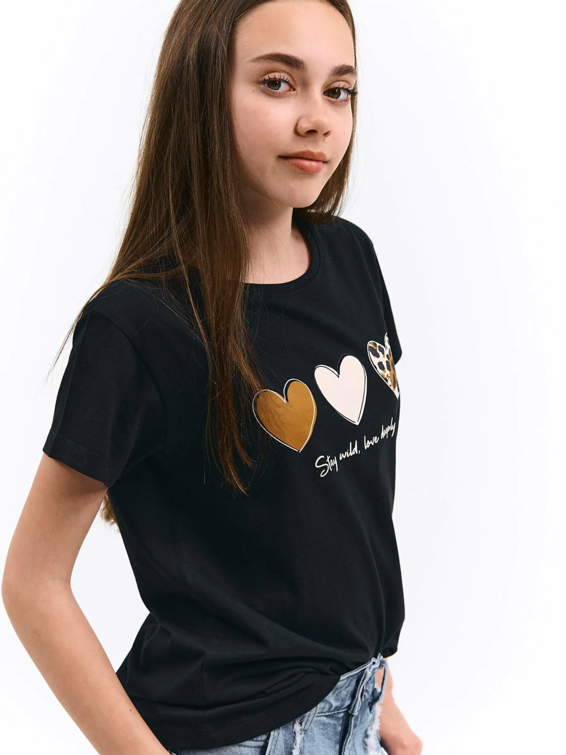 Kolor: czarnyKrój: regularTyp: koszulkaRekaw: krótki rękawDługość: krótkiPattern style: z nadrukiemDetal: nad gł…