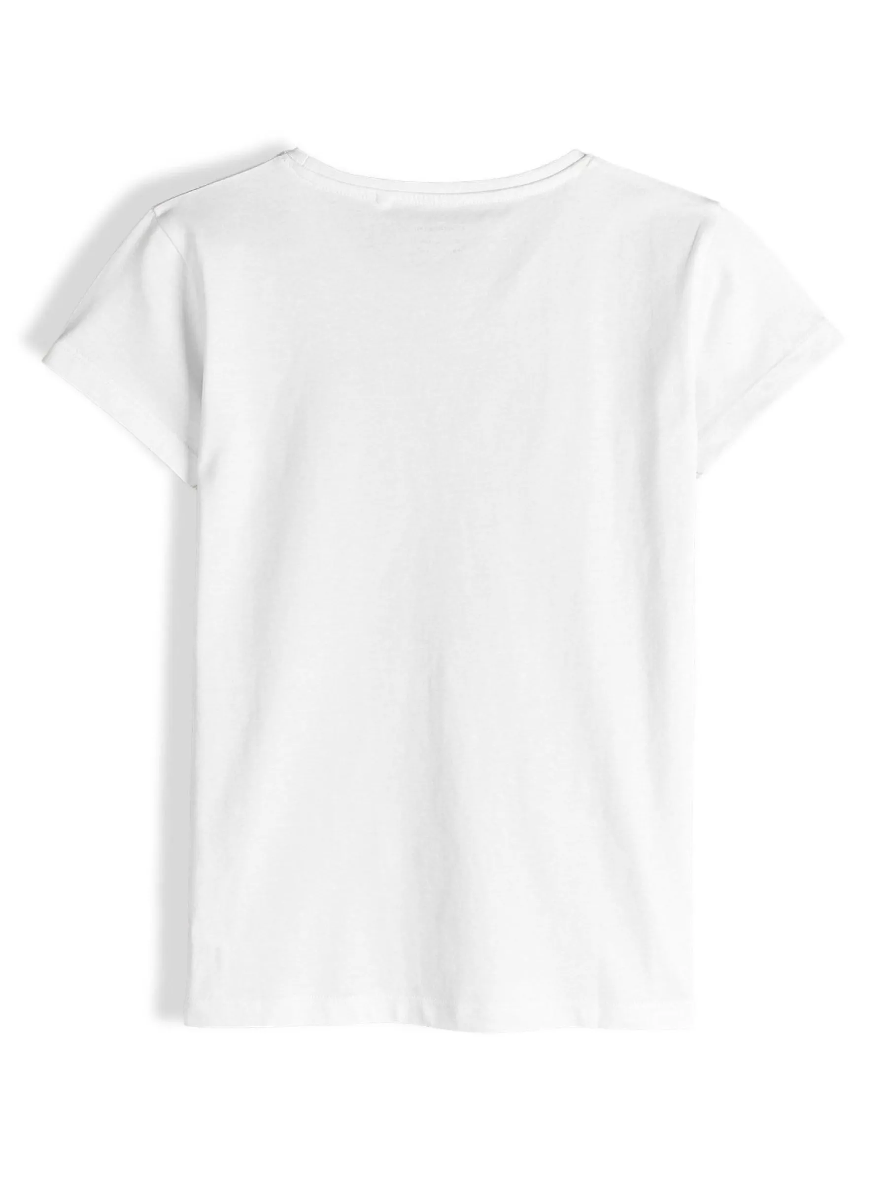 Kolor: białyKrój: regularTyp: koszulkaRekaw: krótki rękawDługość: krótkiPattern style: z nadrukiemDetal: nad gł…