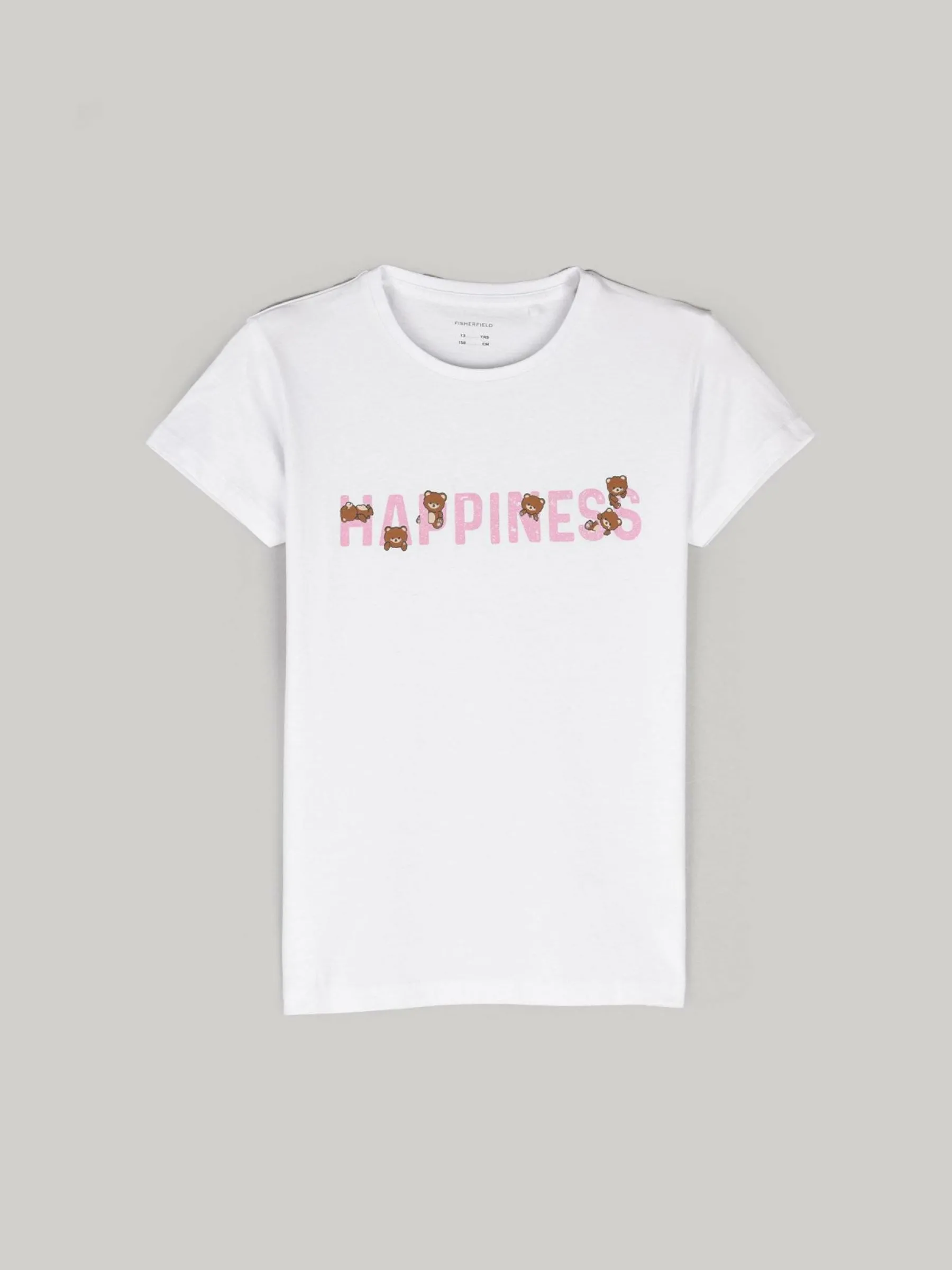 Kolor: białyKrój: regularTyp: koszulkaRekaw: krótki rękawDługość: krótkiPattern style: z nadrukiemDetal: nad gł…