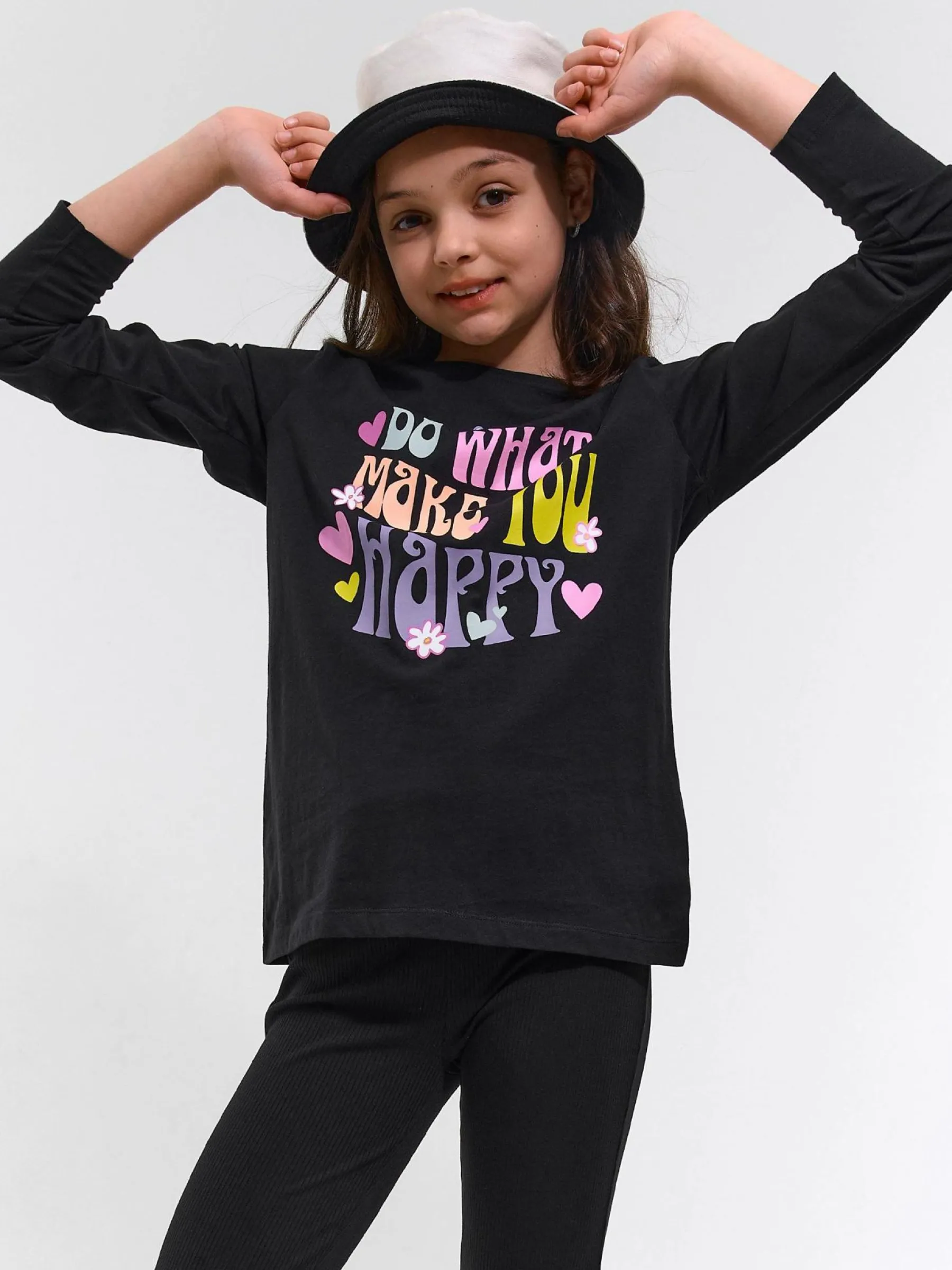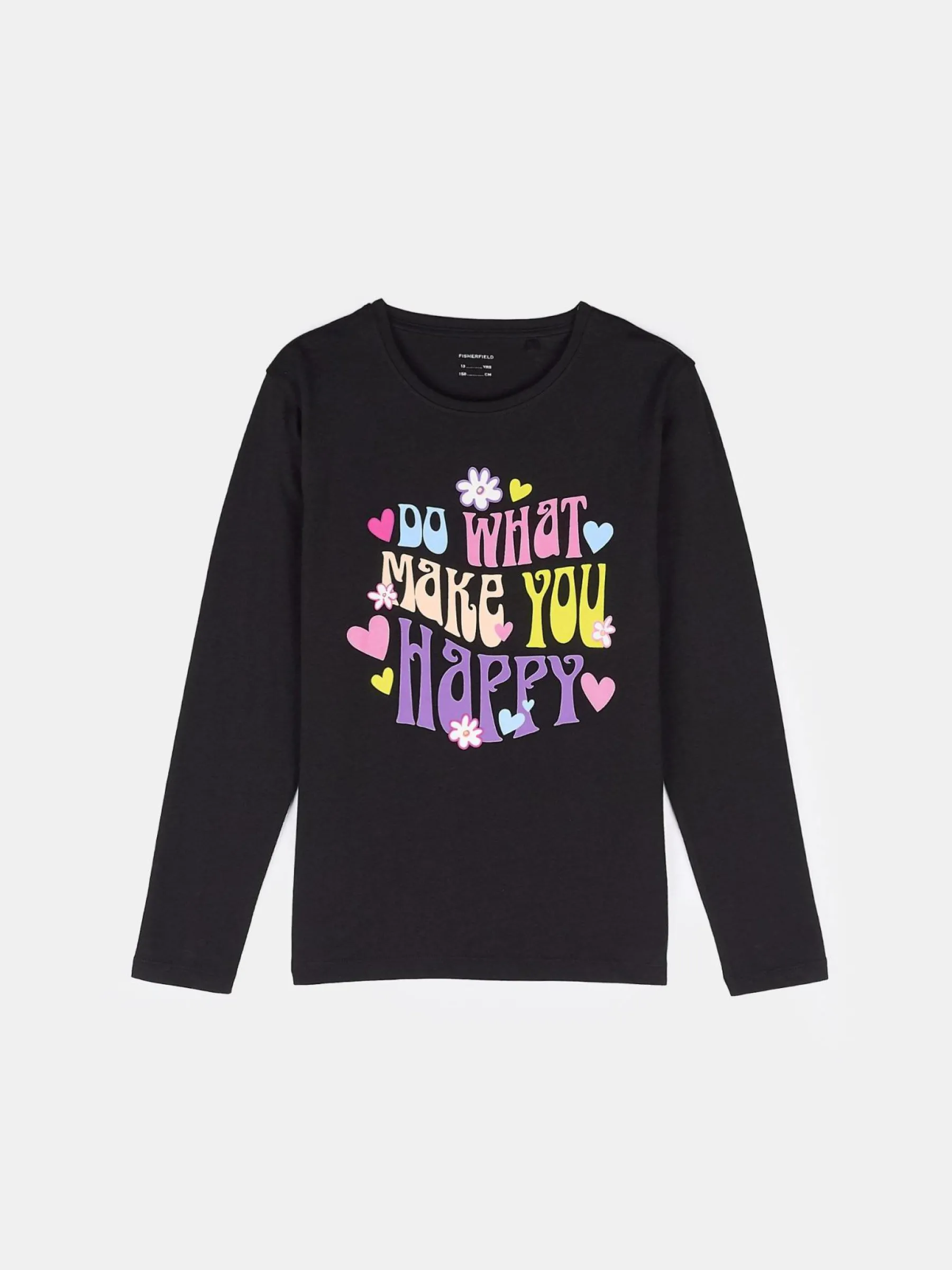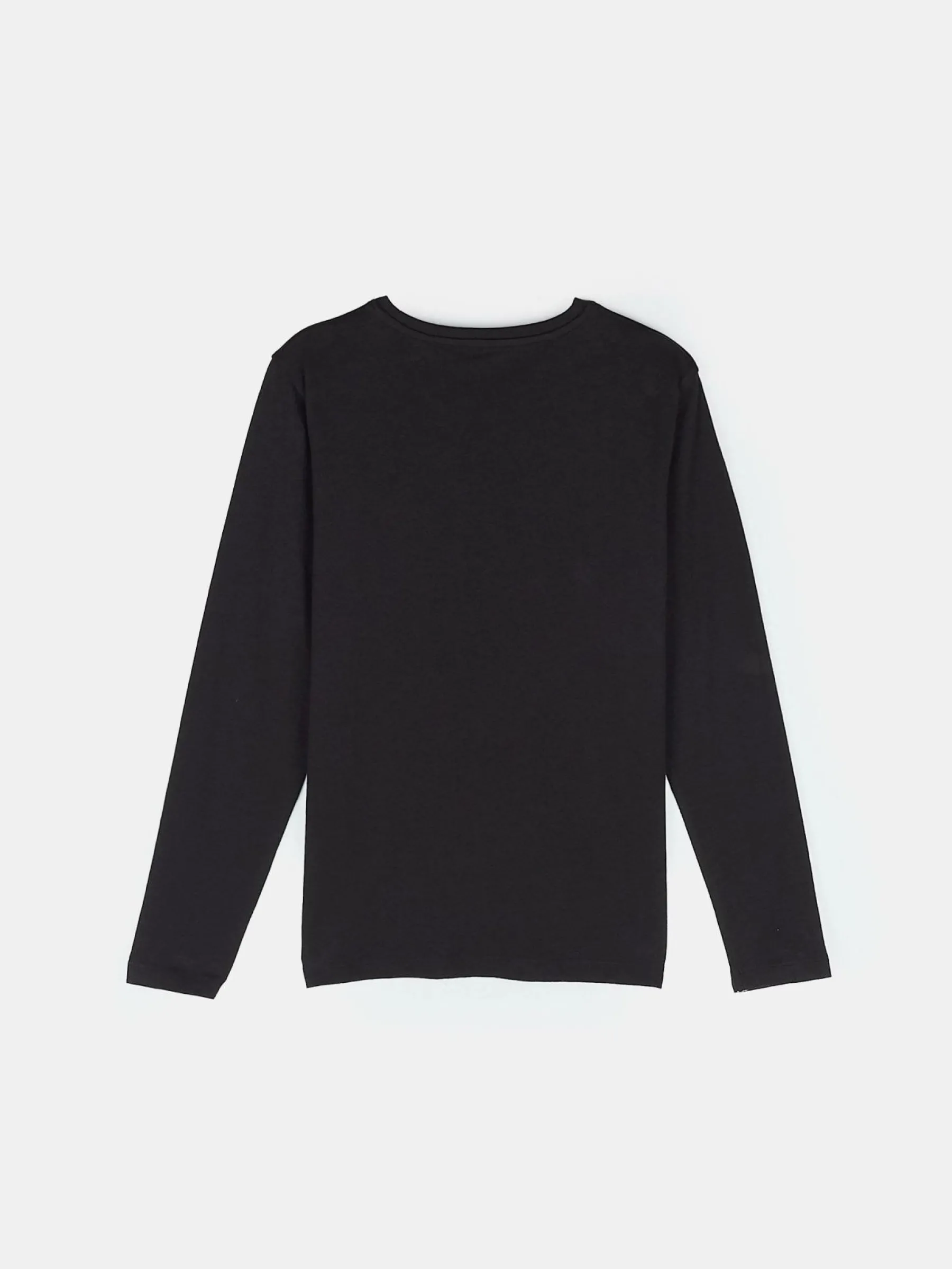 Kolor: czarnyKrój: regularTyp: koszulkaRekaw: długi rękawDługość: krótkiPattern style: z nadrukiemDetal: nad gło…