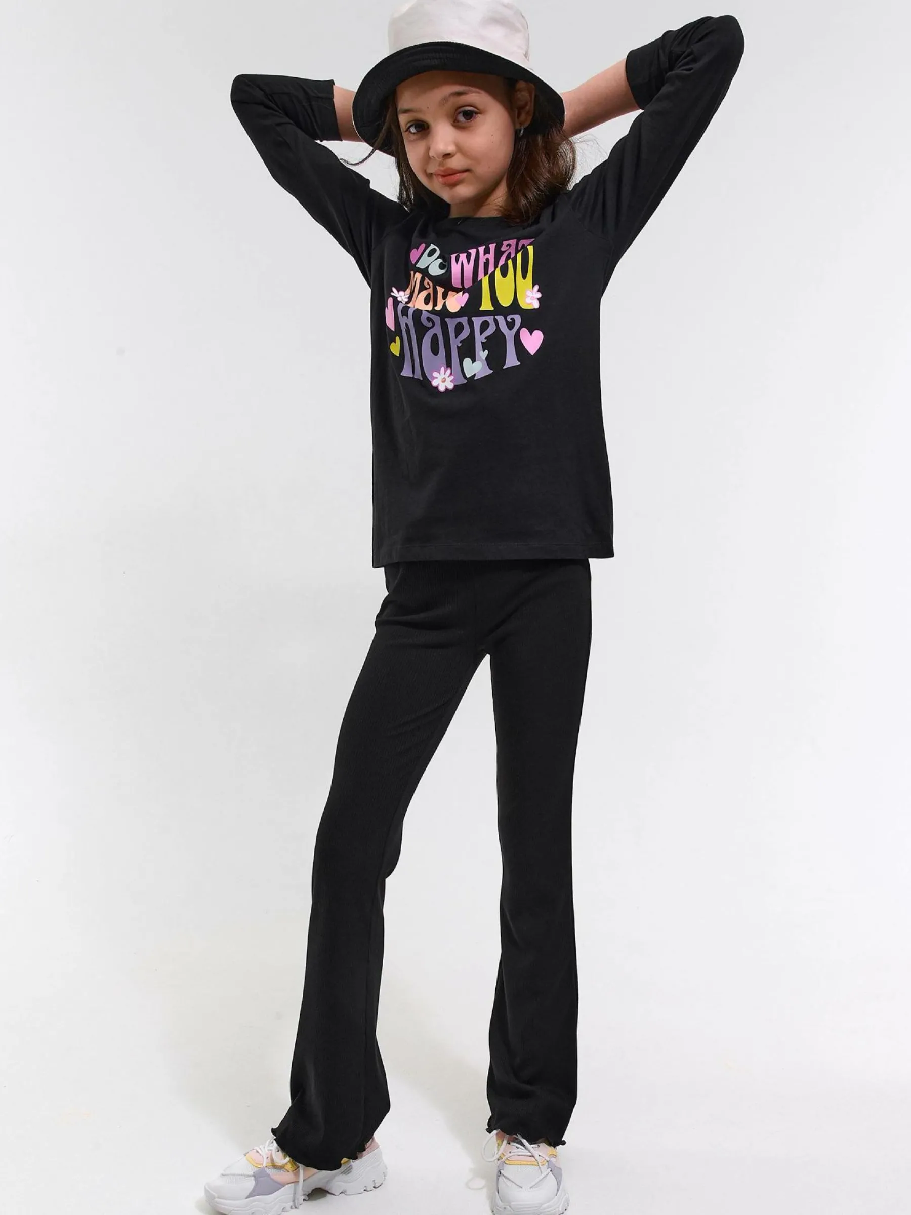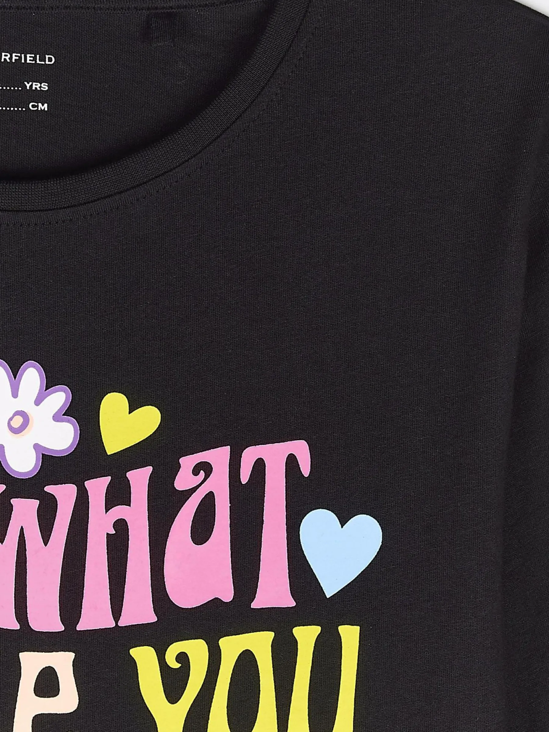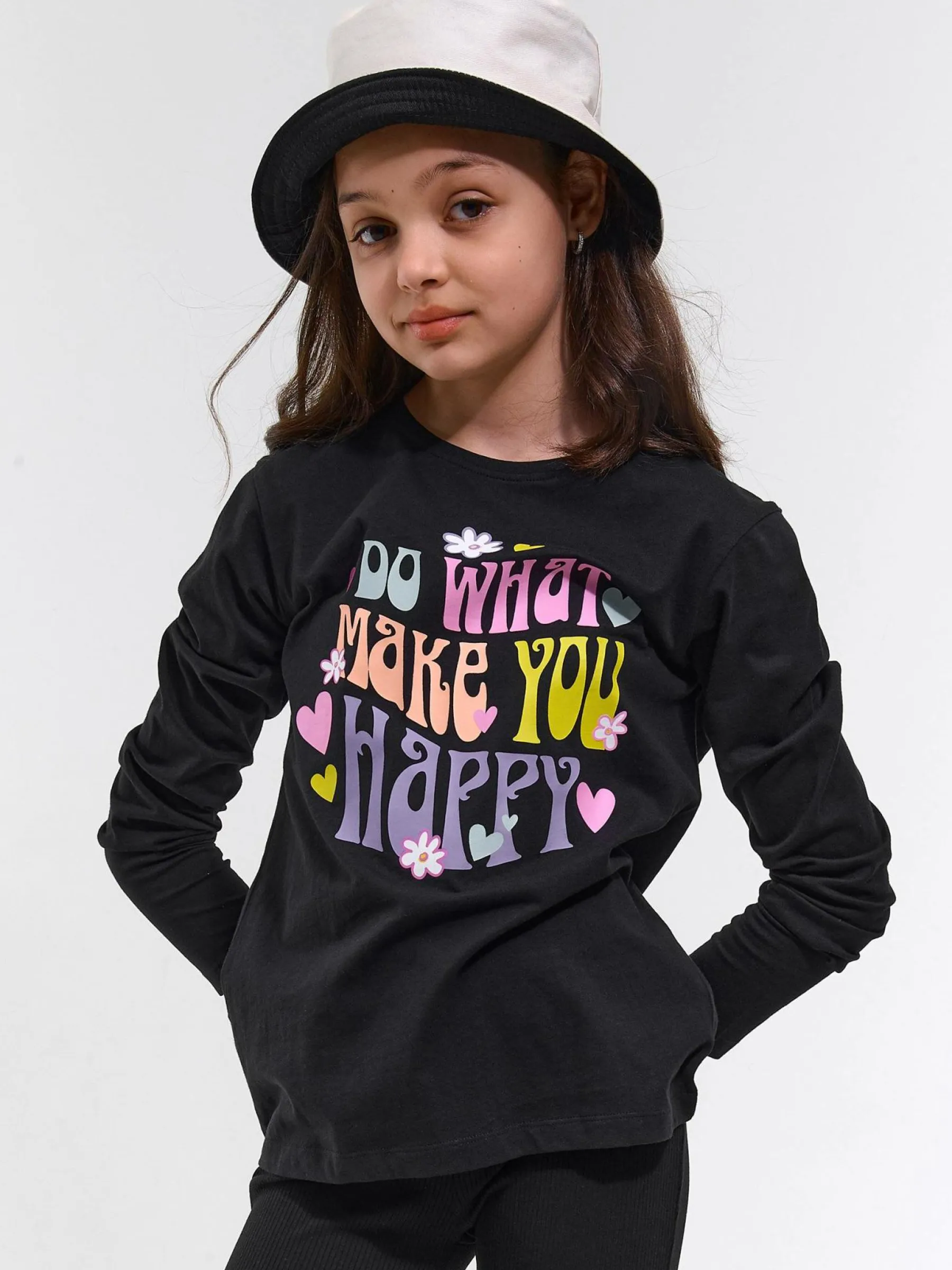 Kolor: czarnyKrój: regularTyp: koszulkaRekaw: długi rękawDługość: krótkiPattern style: z nadrukiemDetal: nad gło…