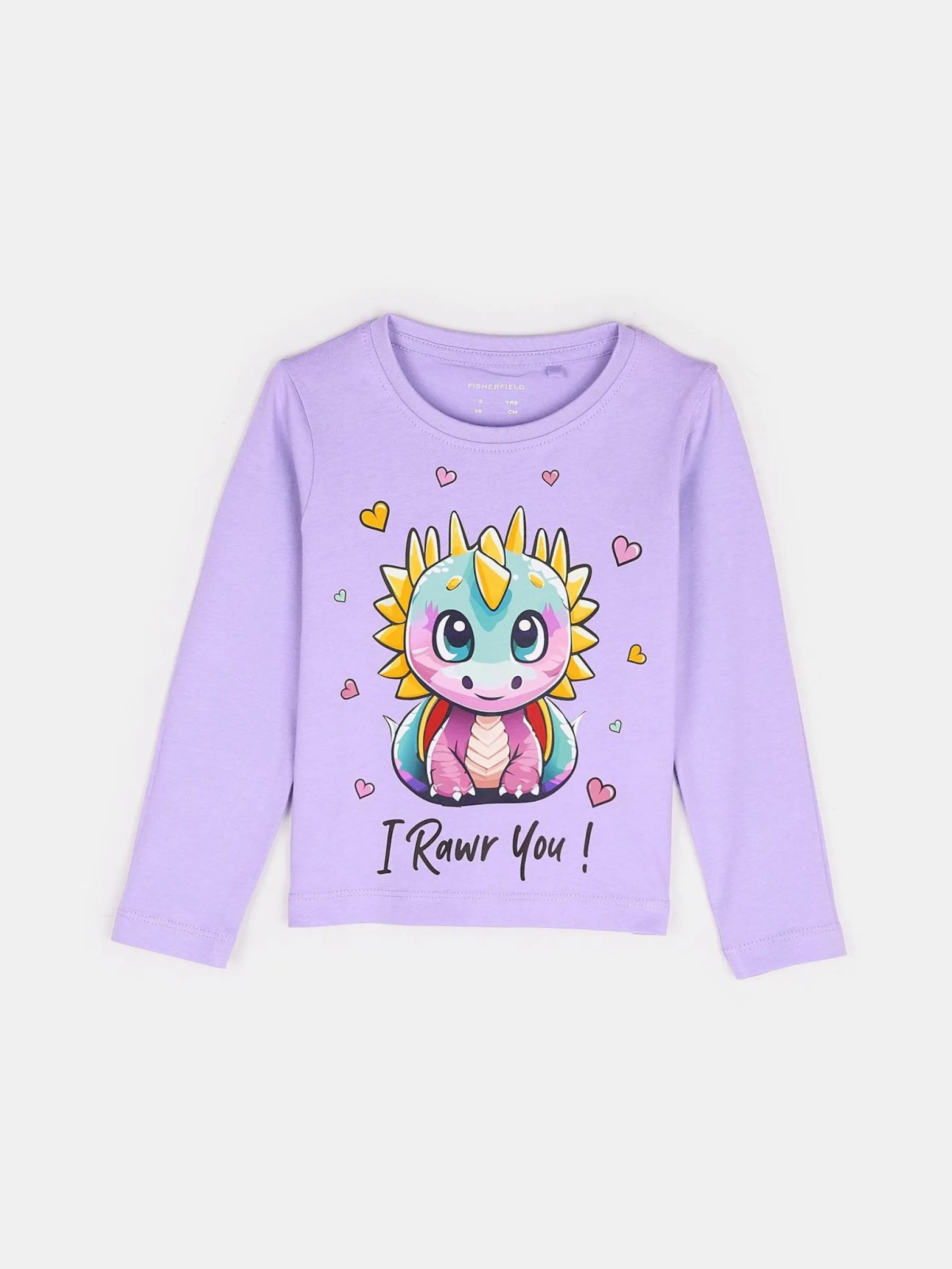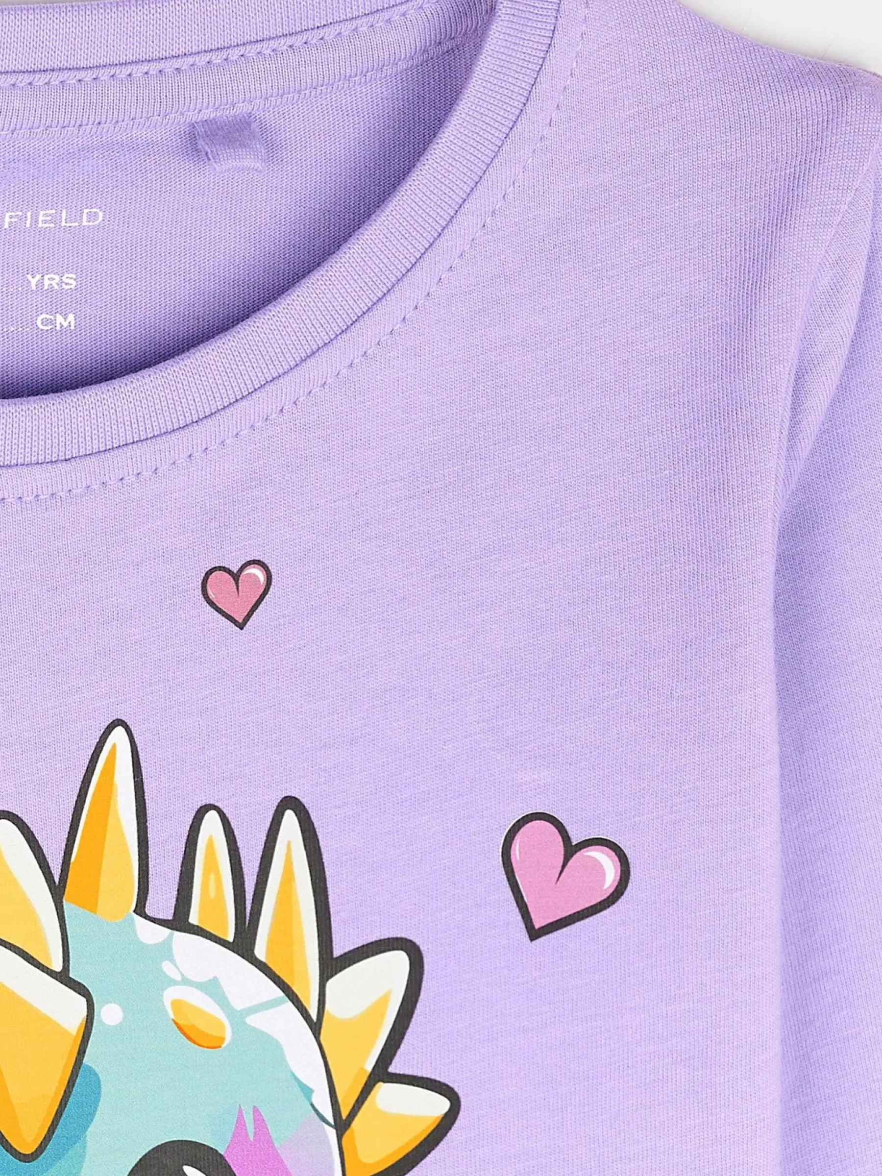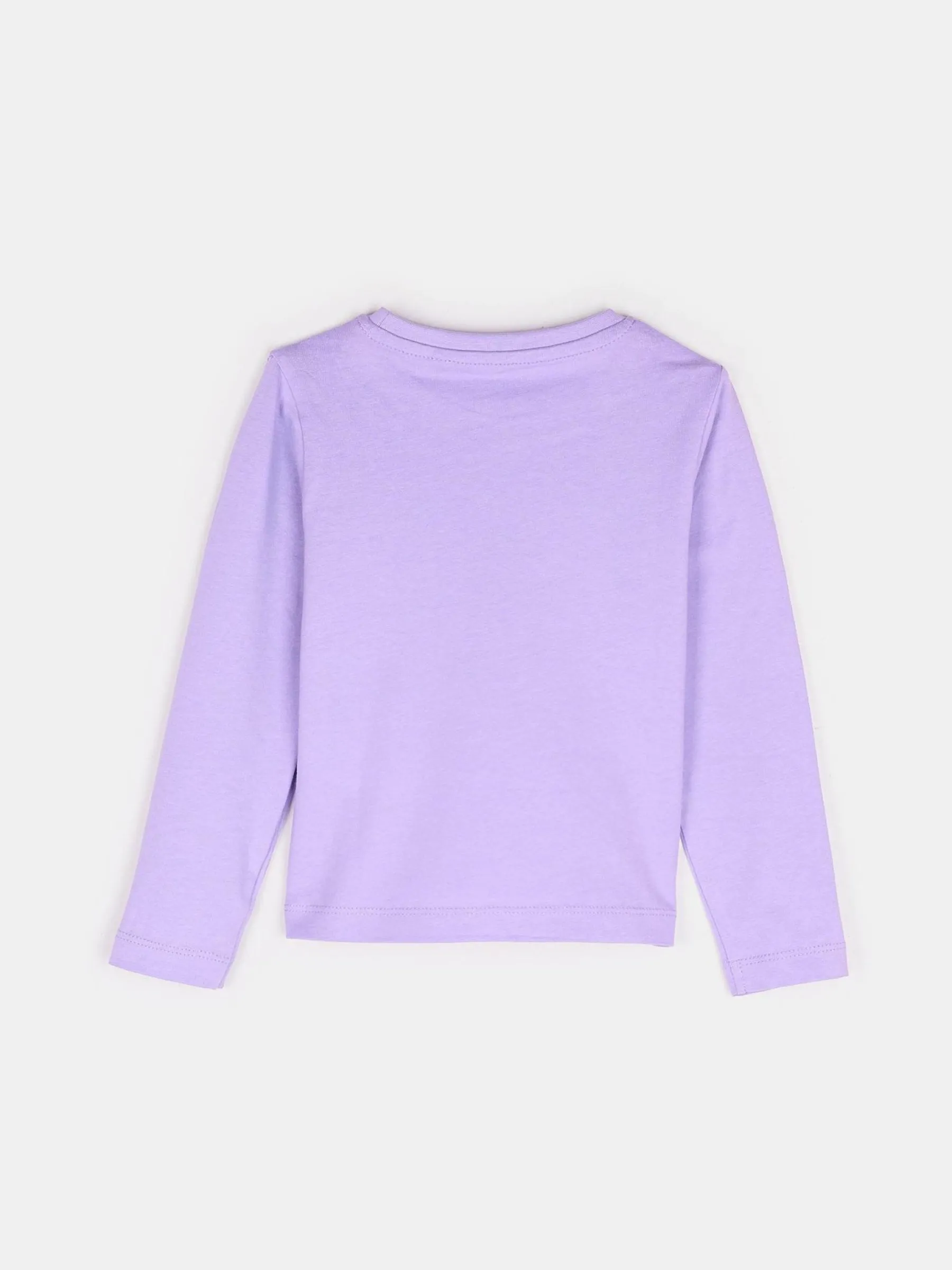 Kolor: purpurowyKrój: regularTyp: koszulkaRekaw: długi rękawDługość: krótkiPattern style: z nadrukiemDetal: nad g…