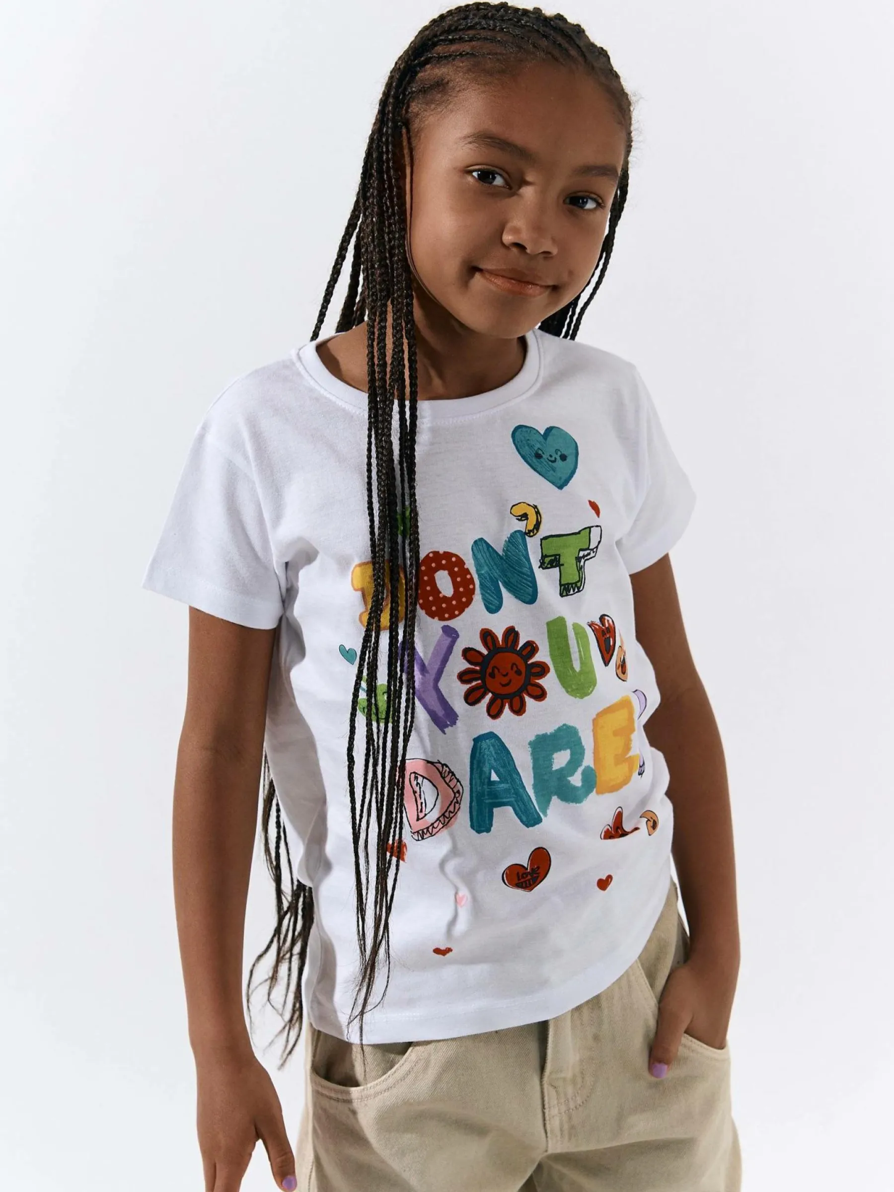 Kolor: białyKrój: regularTyp: koszulkaRekaw: krótki rękawDługość: krótkiPattern style: z nadrukiemDetal: nad gł…