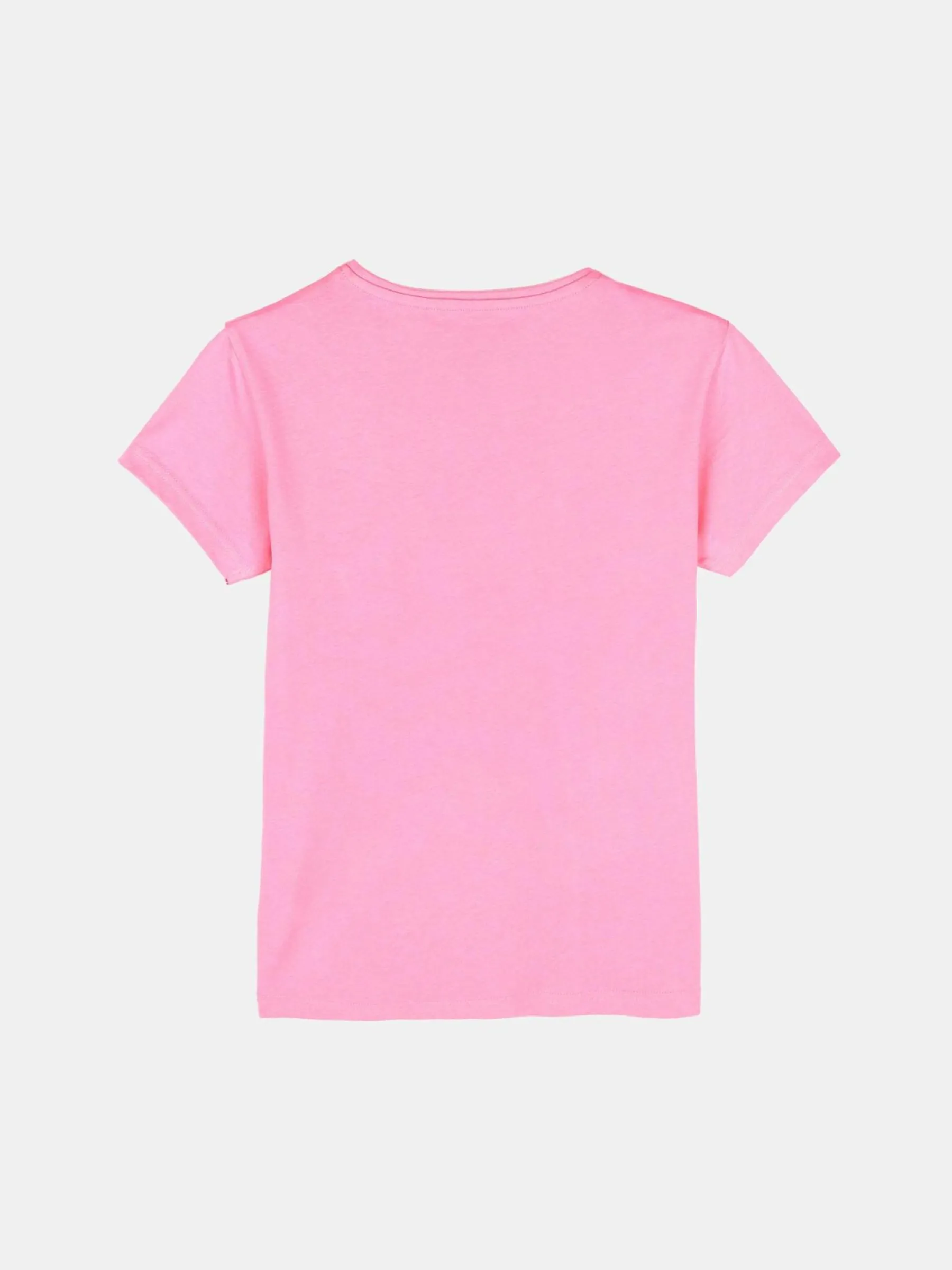 Kolor: różowyKrój: regularTyp: koszulkaRekaw: krótki rękawDługość: krótkiPattern style: z nadrukiemDetal: nad g…