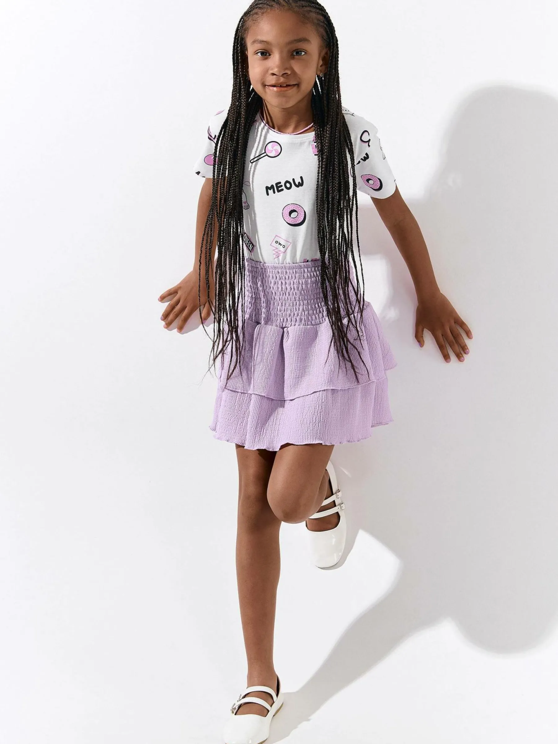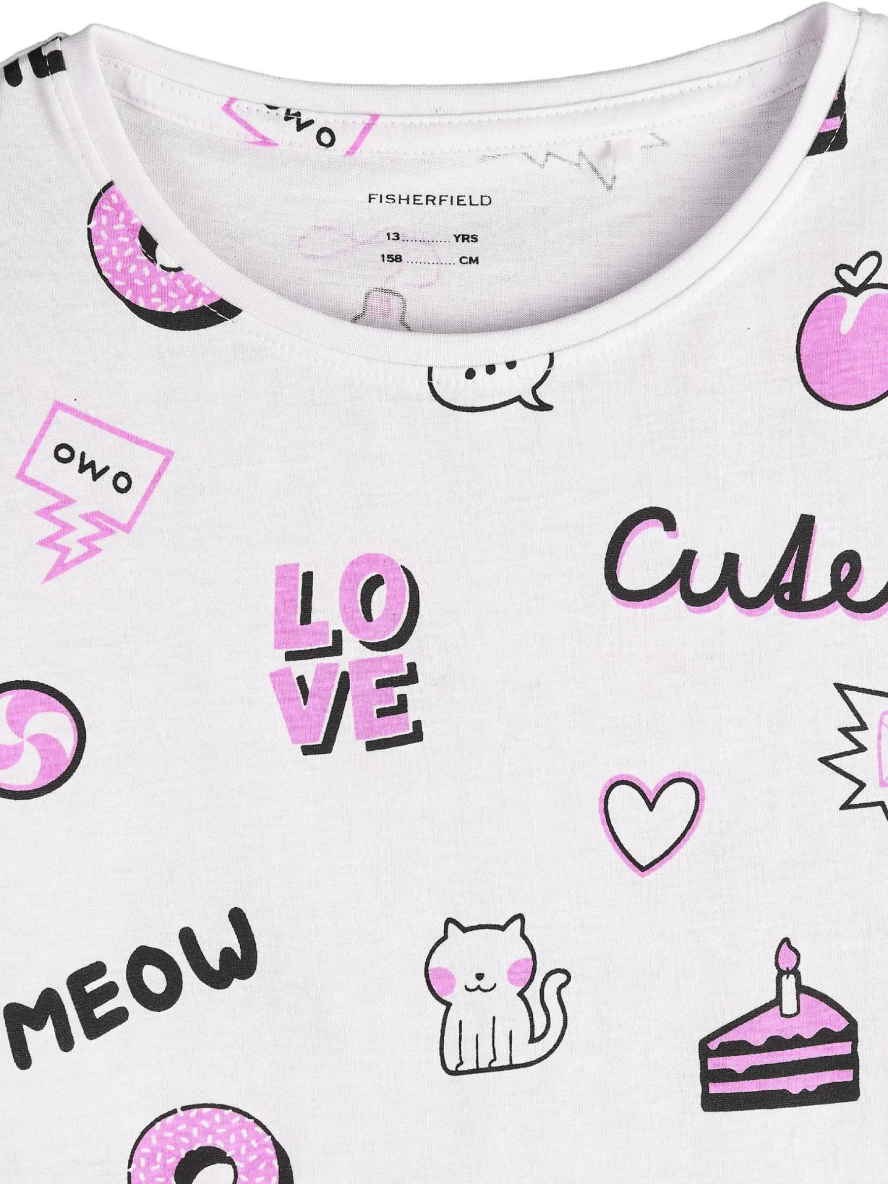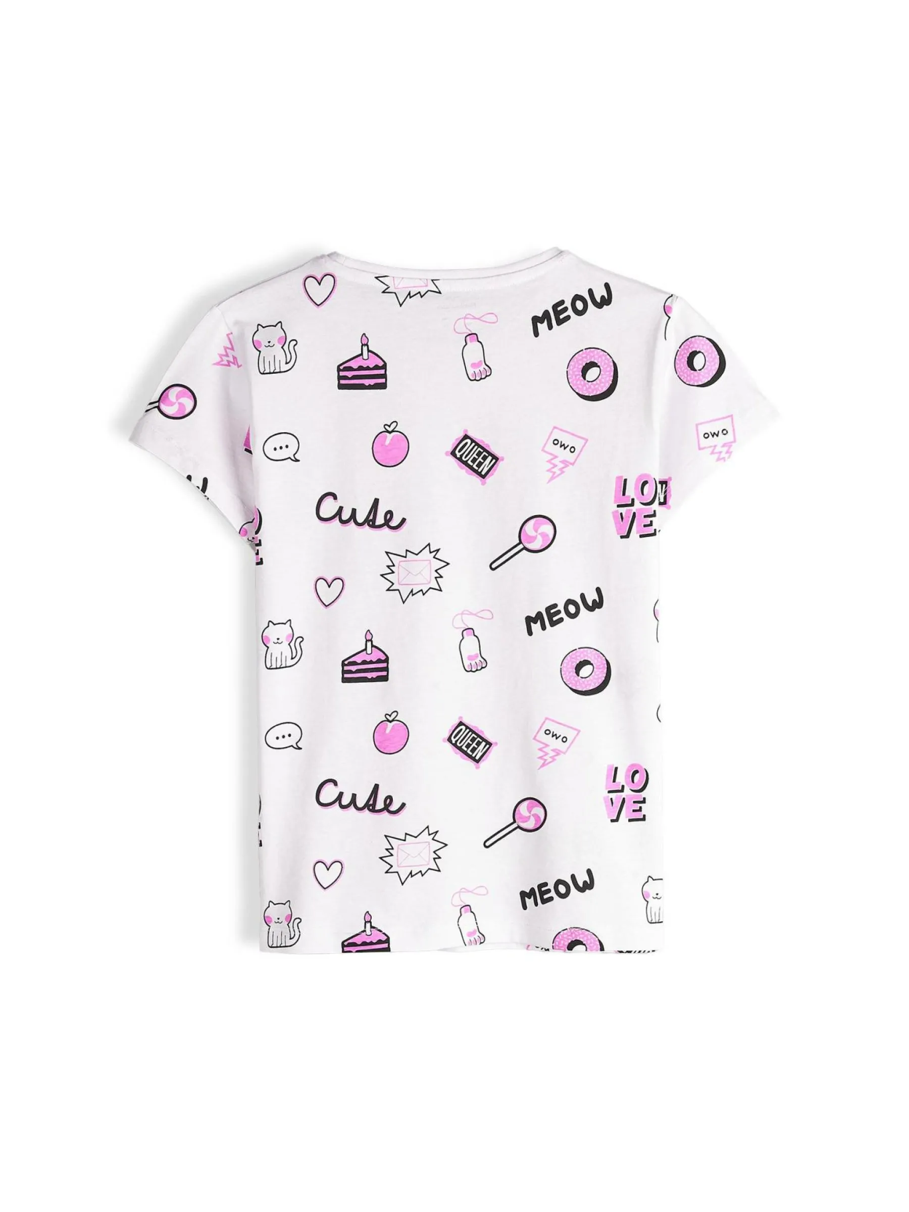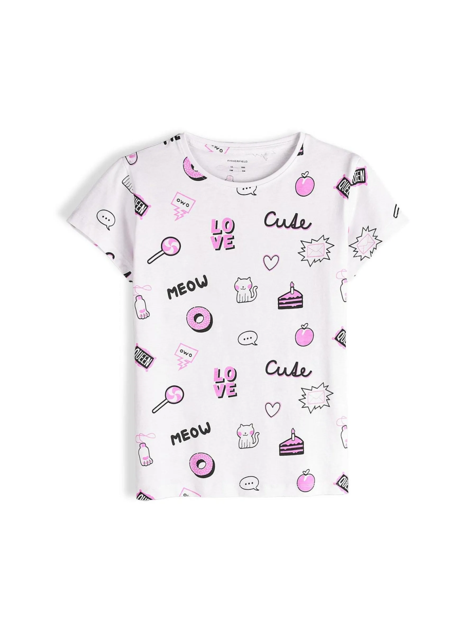 Kolor: białyKrój: regularTyp: koszulkaRekaw: krótki rękawDługość: krótkiPattern style: wzorzysteDetal: nad głow…