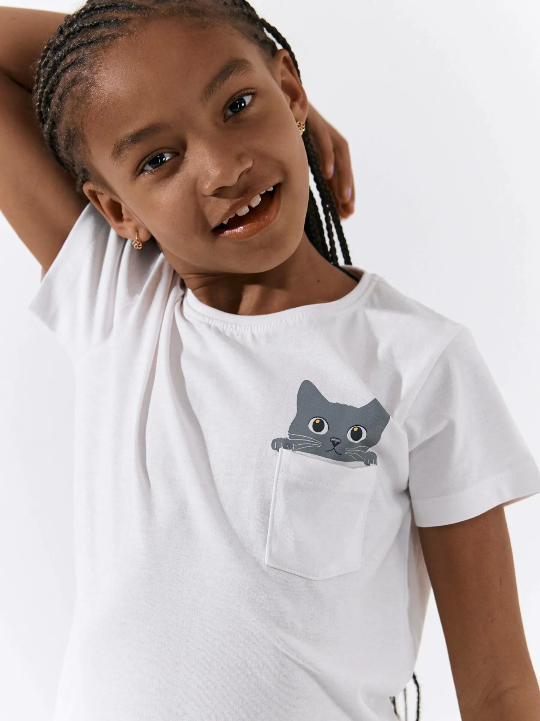 Kolor: białyKrój: regularTyp: koszulkaRekaw: krótki rękawDługość: krótkiPattern style: z nadrukiemDetal: nad gł…