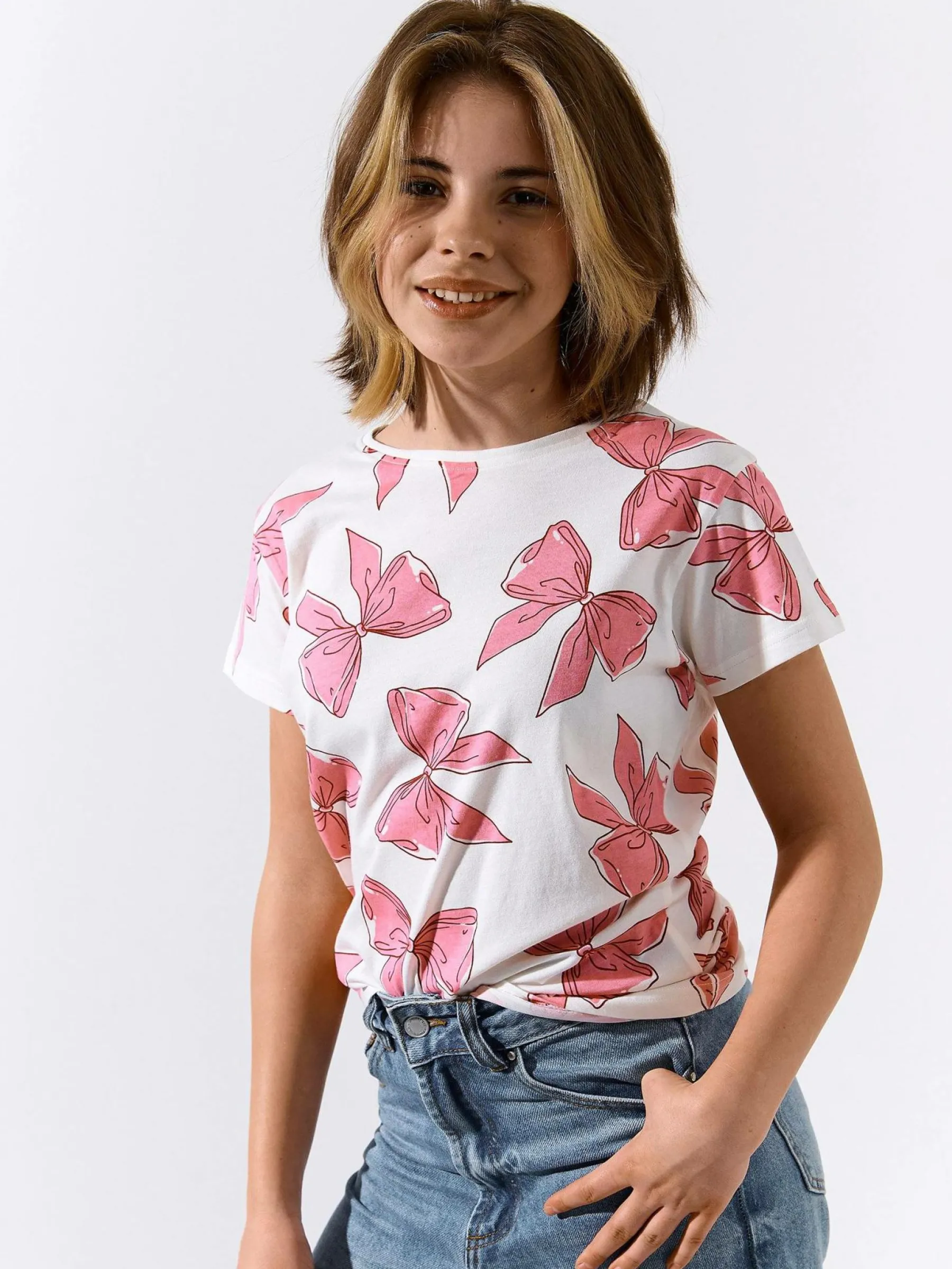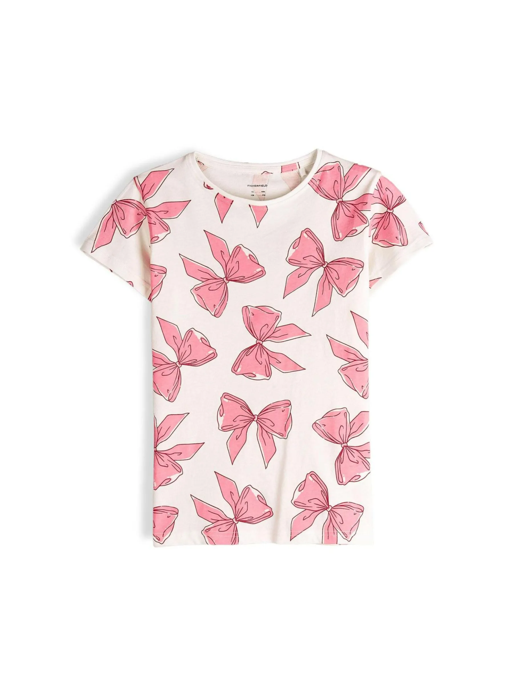 Kolor: białyKrój: regularTyp: koszulkaRekaw: krótki rękawDługość: krótkiPattern style: wzorzysteDetal: nad głow…