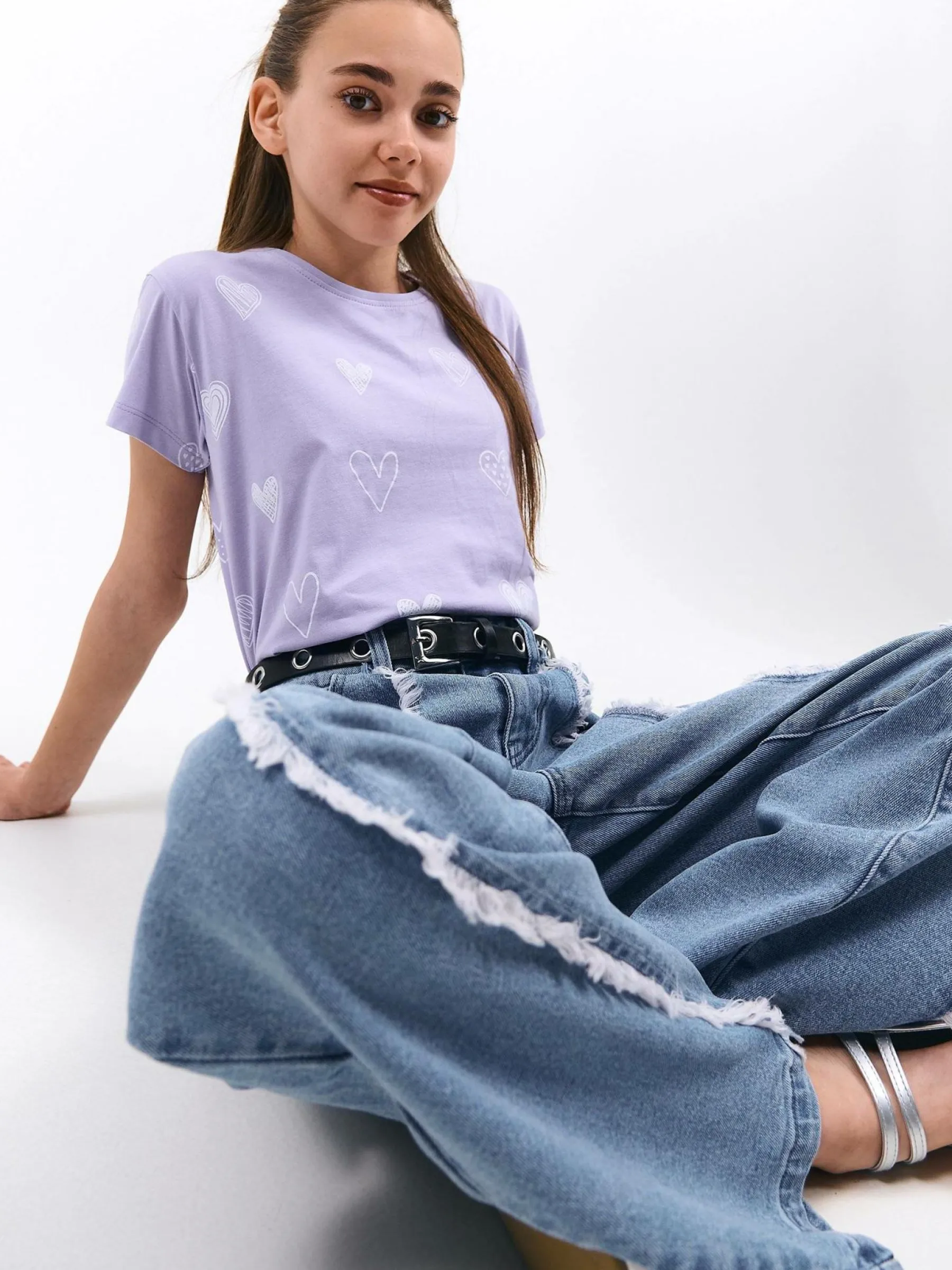 Kolor: purpurowyKrój: podstawowyTyp: koszulkaRekaw: krótki rękawDługość: krótkiPattern style: wzorzysteDetal: nad…