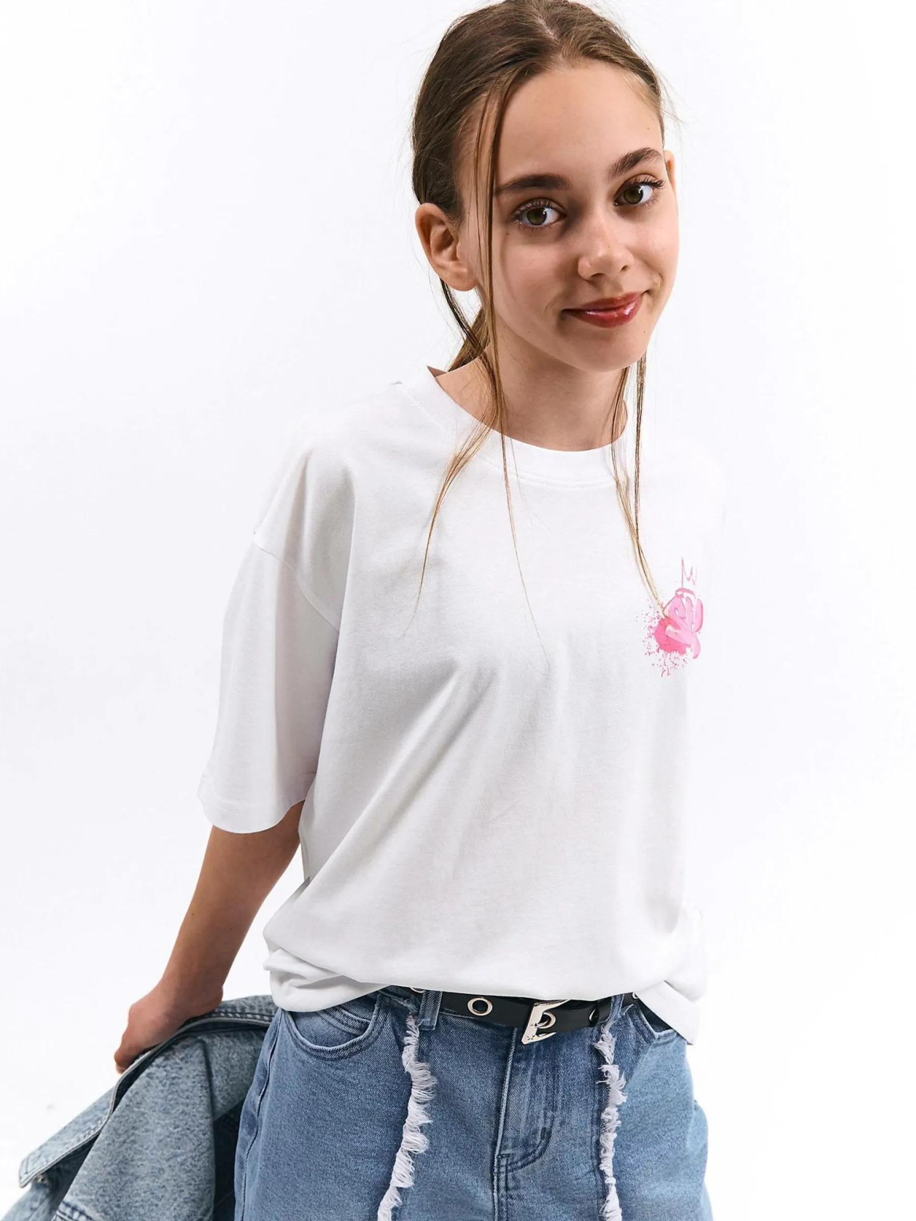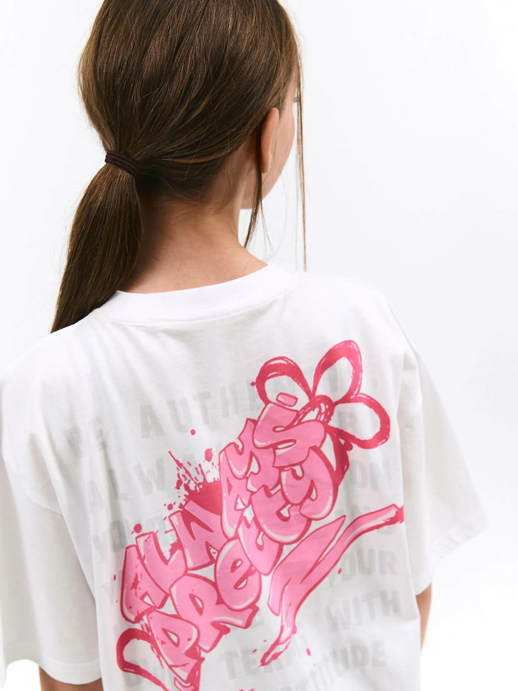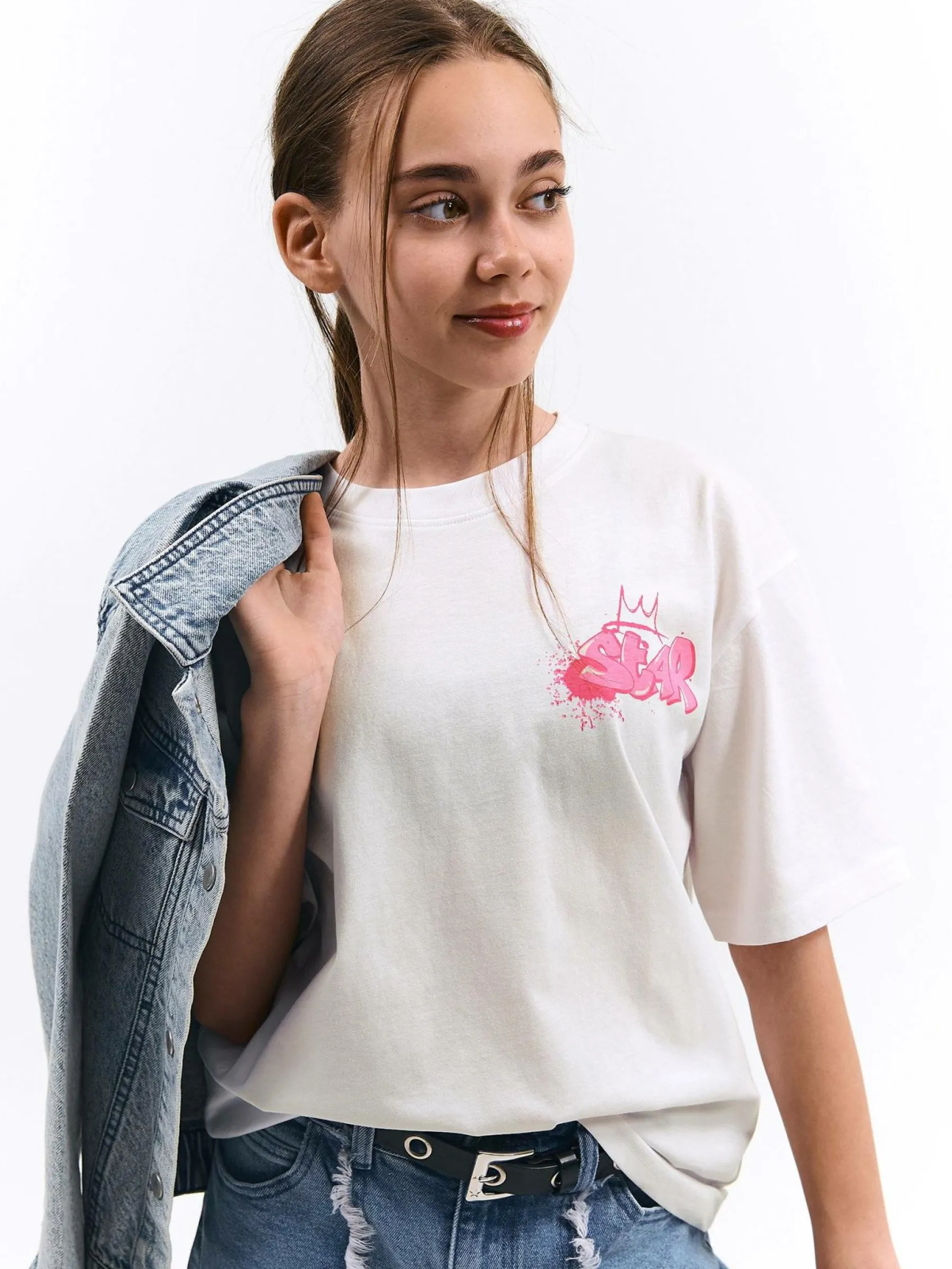 Kolor: białyKrój: regularTyp: koszulkaRekaw: krótki rękawDługość: krótkiPattern style: z nadrukiemDetal: nad gł…