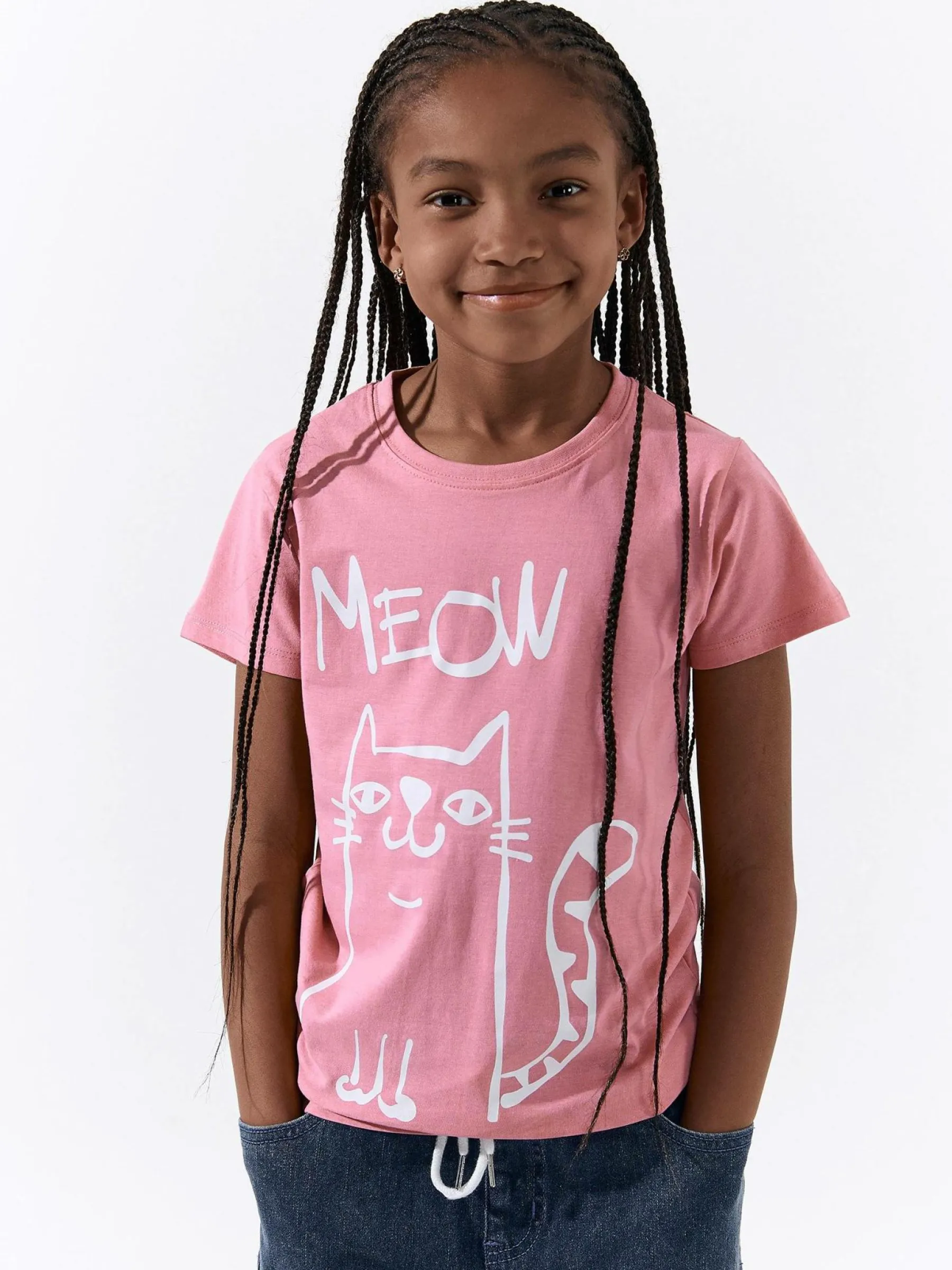 Kolor: różowyKrój: regularTyp: koszulkaRekaw: krótki rękawDługość: krótkiPattern style: z nadrukiemDetal: nad g…