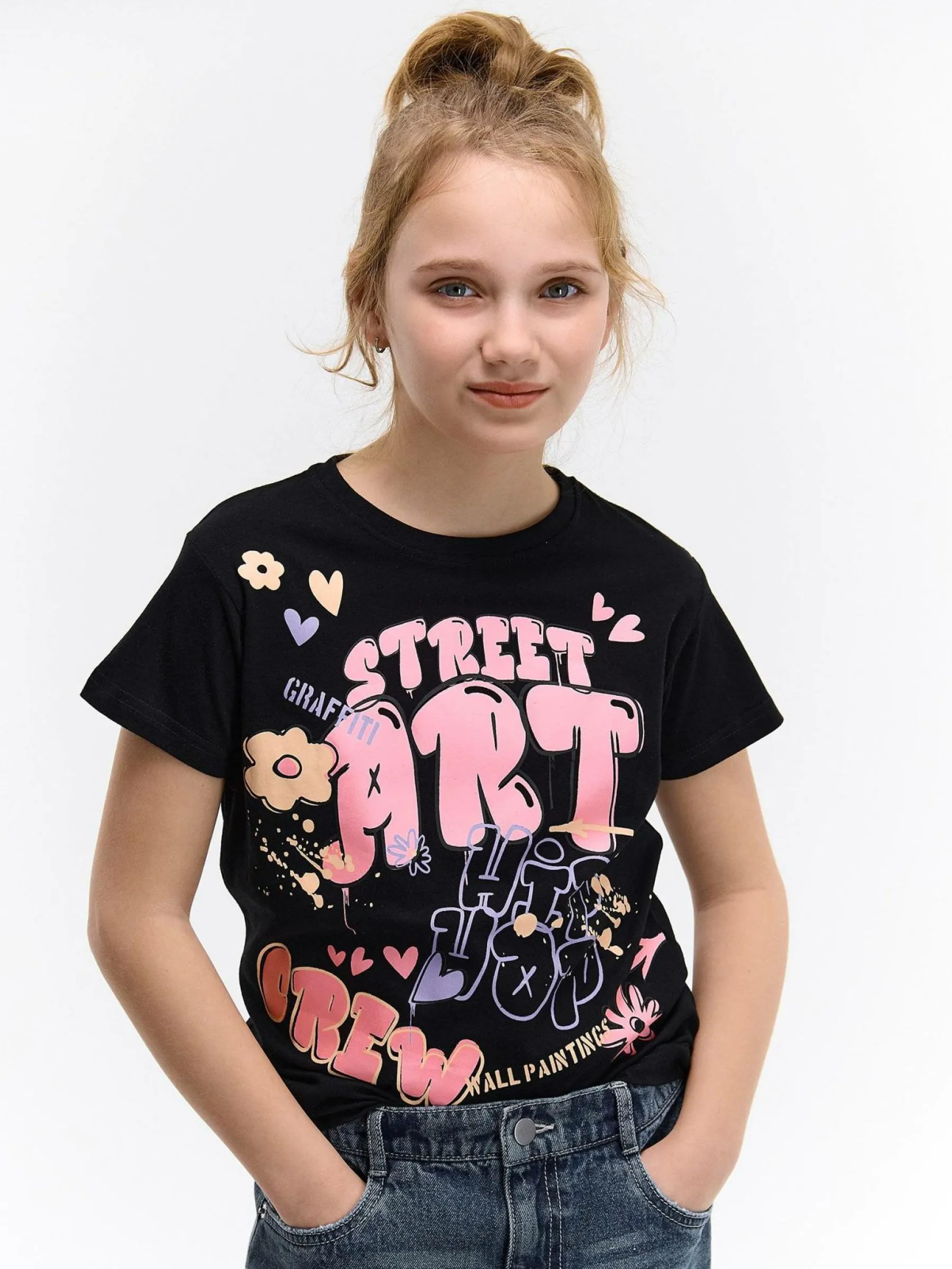 Kolor: czarnyKrój: regularTyp: koszulkaRekaw: krótki rękawDługość: krótkiPattern style: z nadrukiemDetal: nad gł…