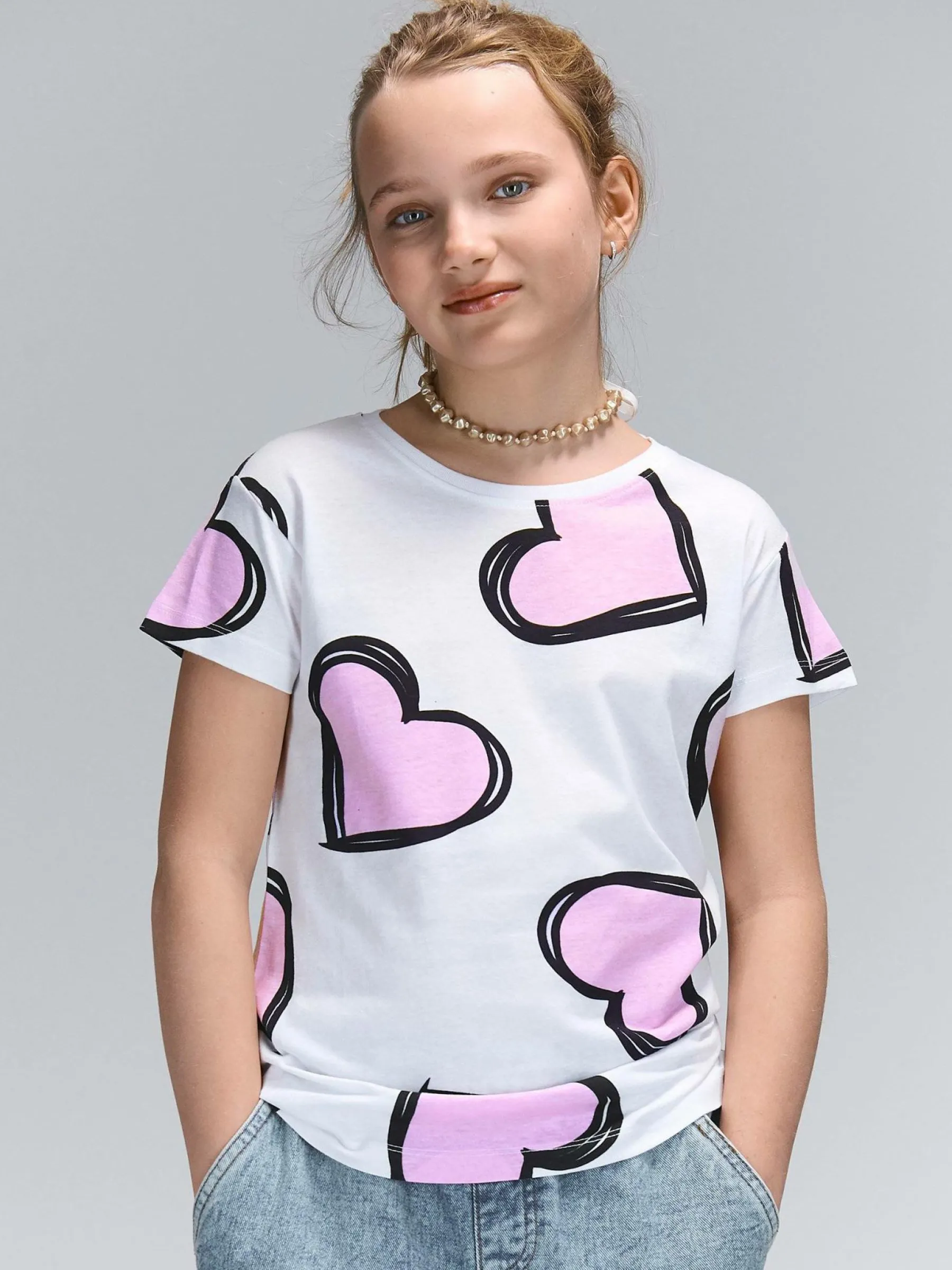 Kolor: różowyKrój: regularTyp: koszulkaRekaw: krótki rękawDługość: krótkiPattern style: z nadrukiemDetal: nad g…