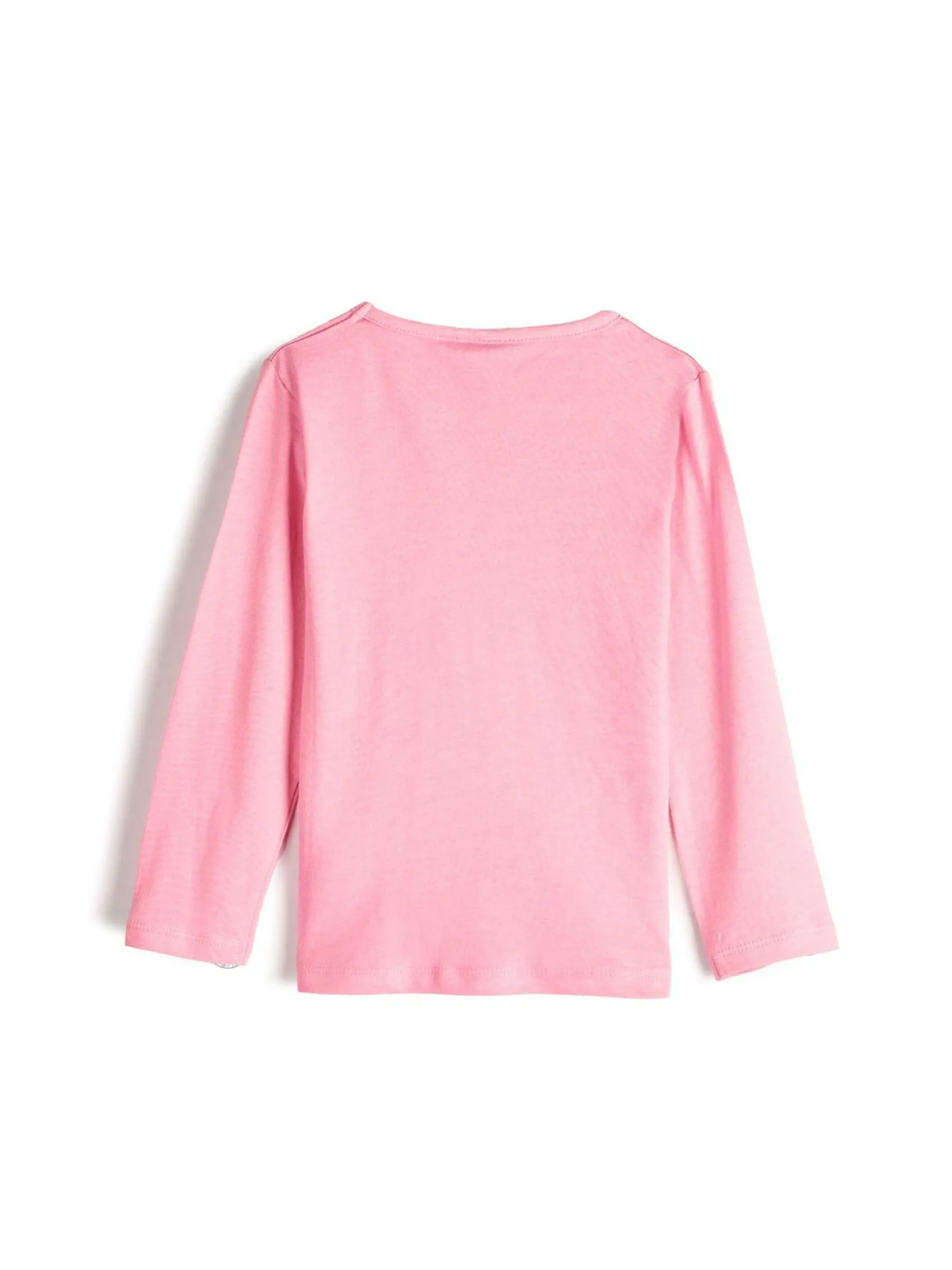 Kolor: różowyKrój: podstawowyTyp: koszulkaRekaw: długi rękawDługość: krótkiPattern style: z nadrukiemDetal: nad…