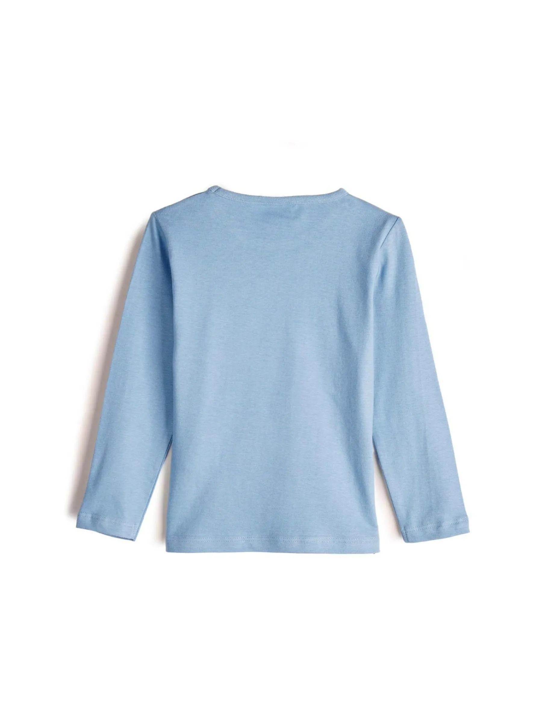 Kolor: niebieskiKrój: podstawowyTyp: koszulkaRekaw: długi rękawDługość: krótkiPattern style: z nadrukiemDetal: na…
