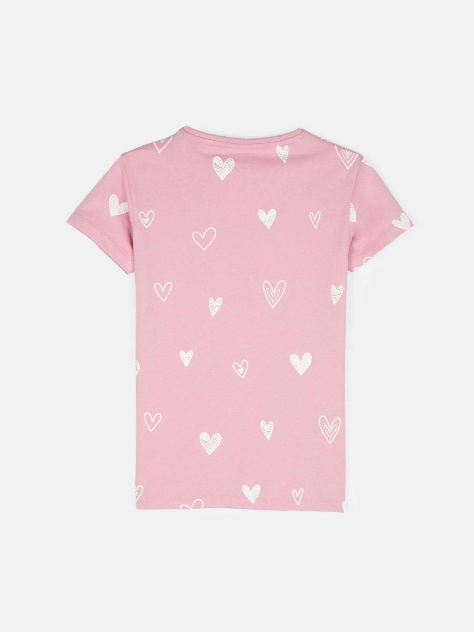 Kolor: różowyKrój: regularTyp: koszulkaRekaw: krótki rękawDługość: krótkiPattern style: z nadrukiemDetal: nad g…