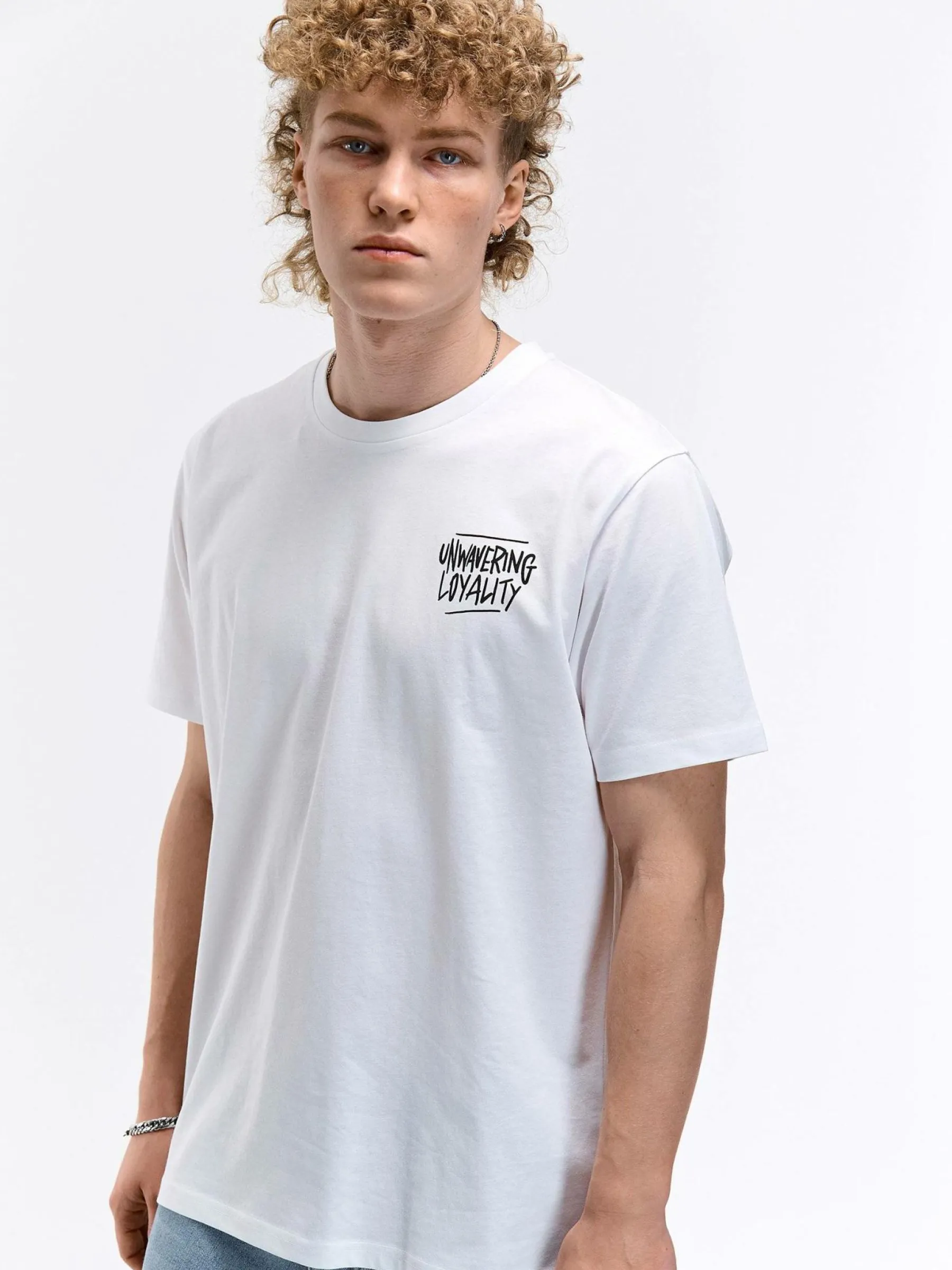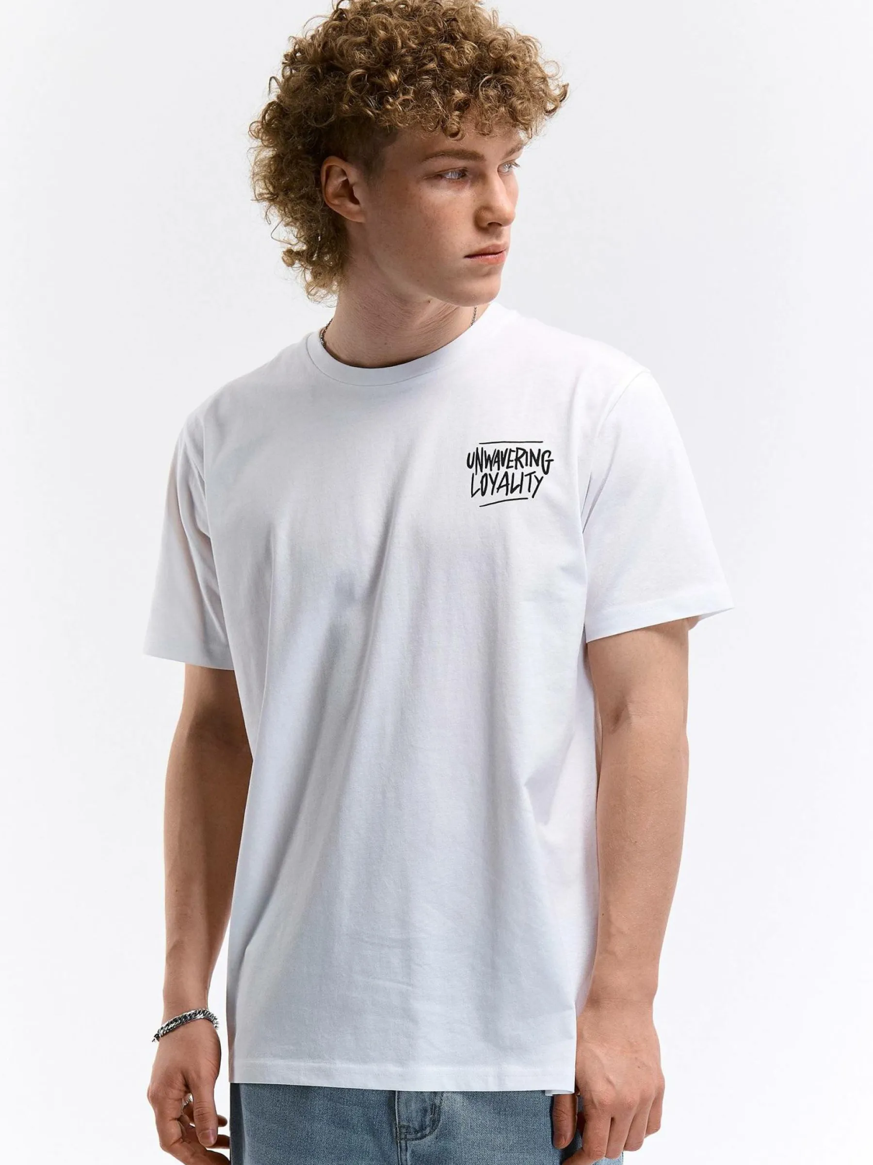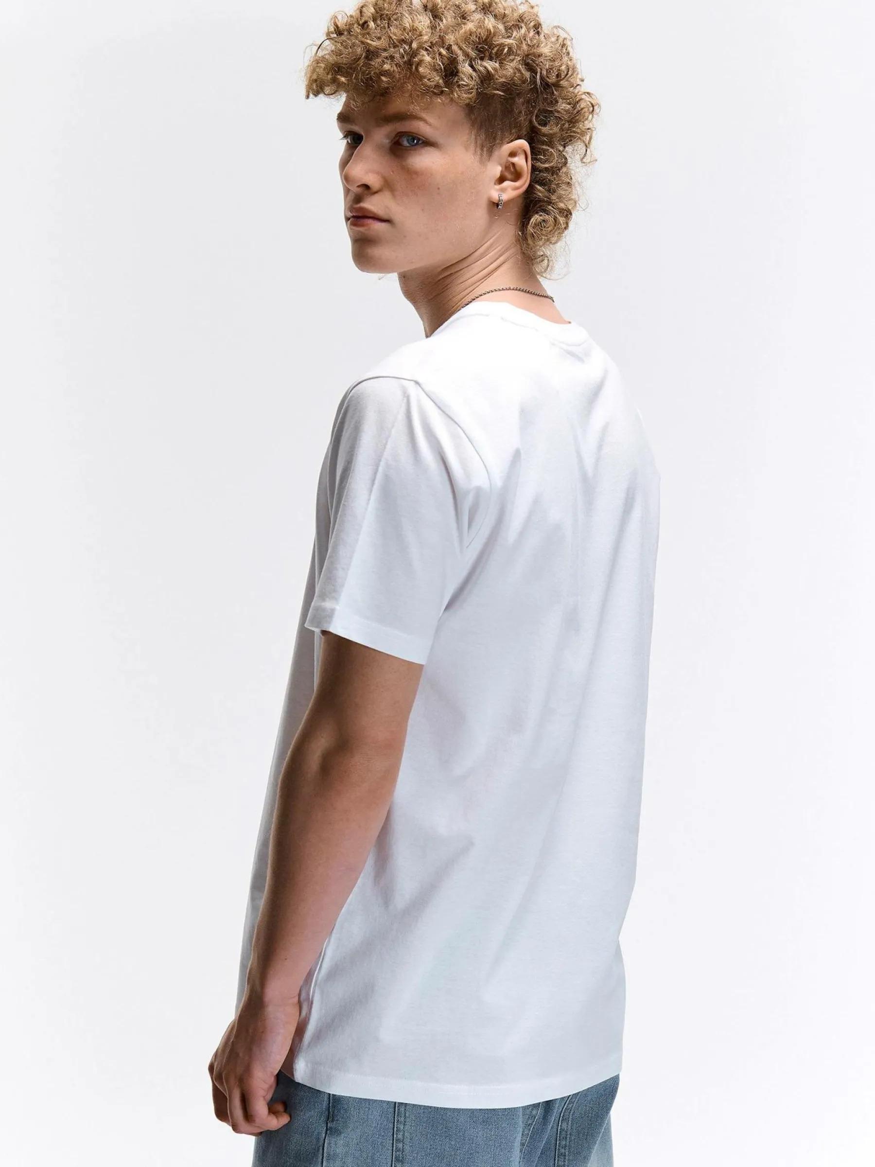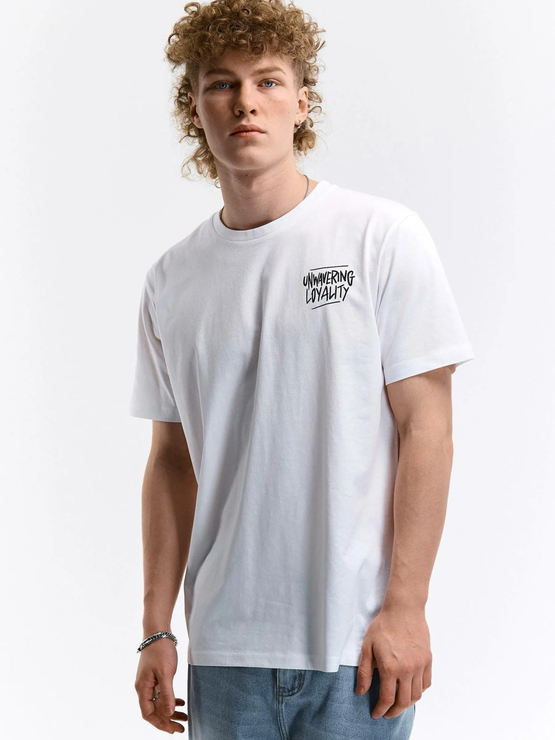 Kolor: białyKrój: regularTyp: koszulkaRekaw: krótki rękawPattern style: pojedynczy kolorDetal: nad głową, ze znaki…