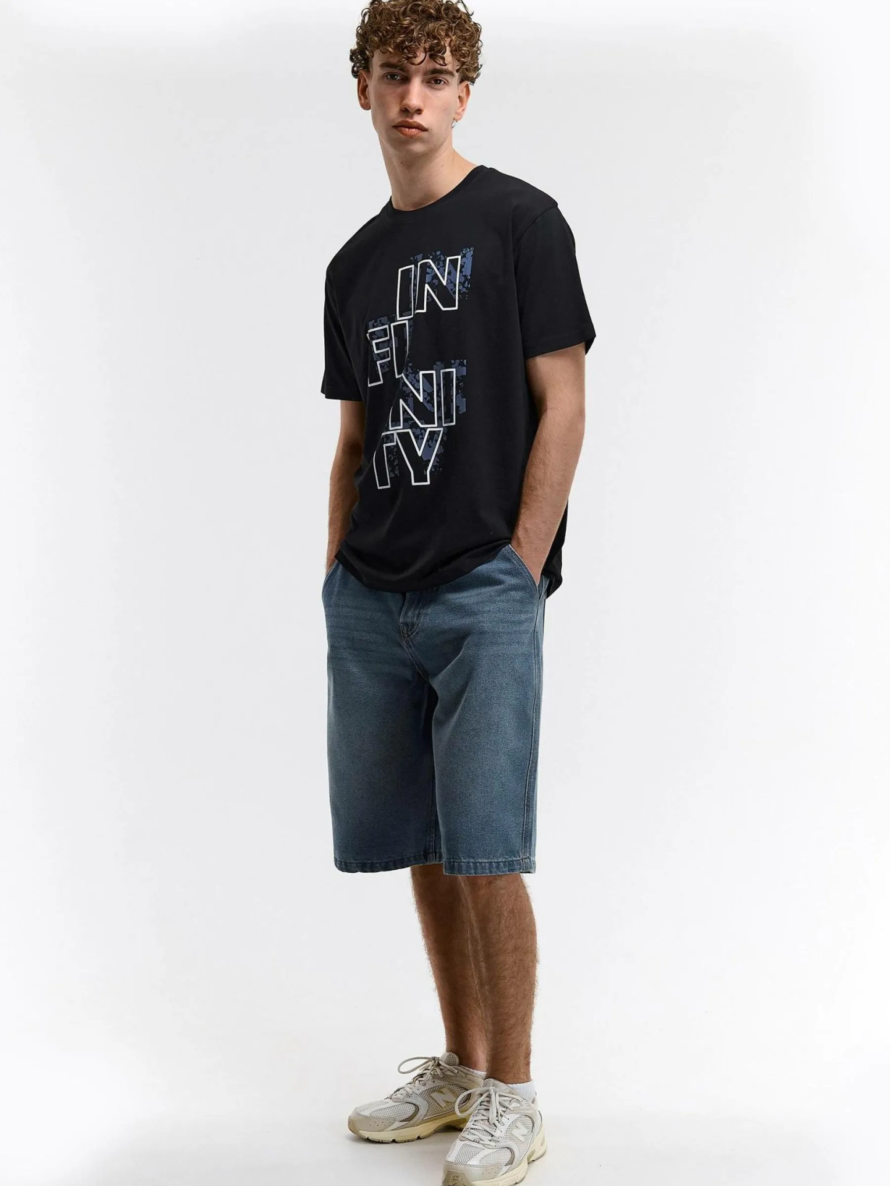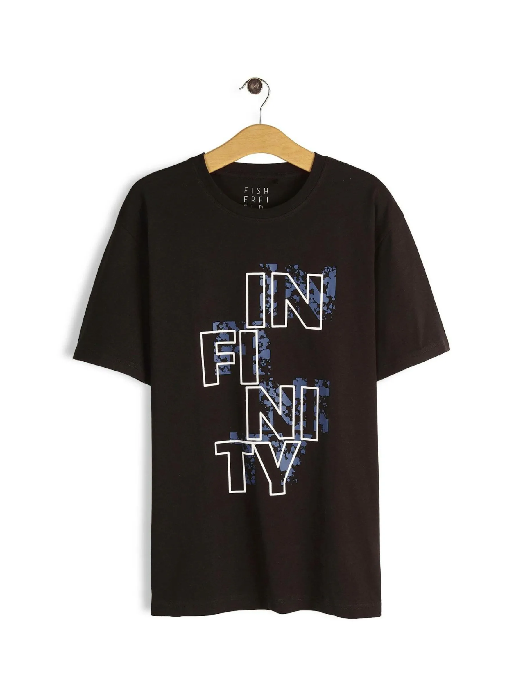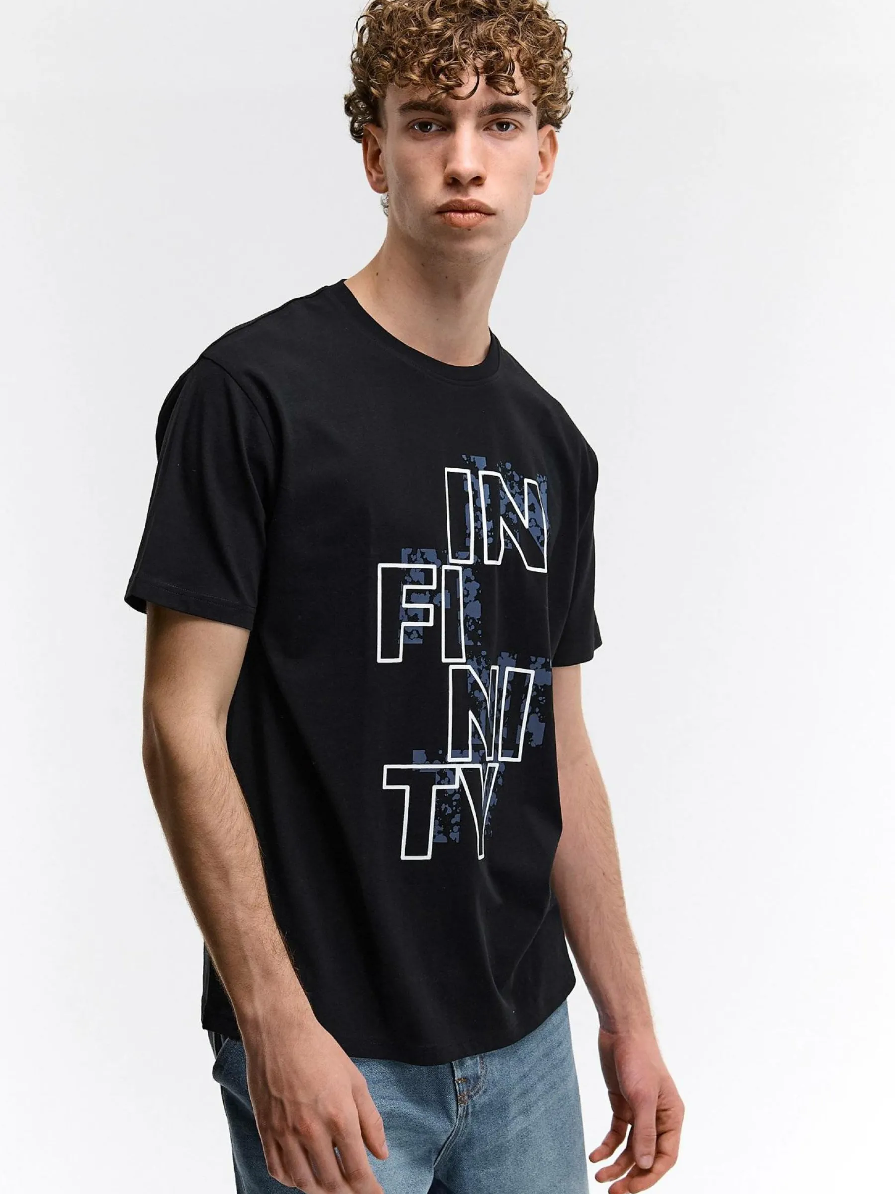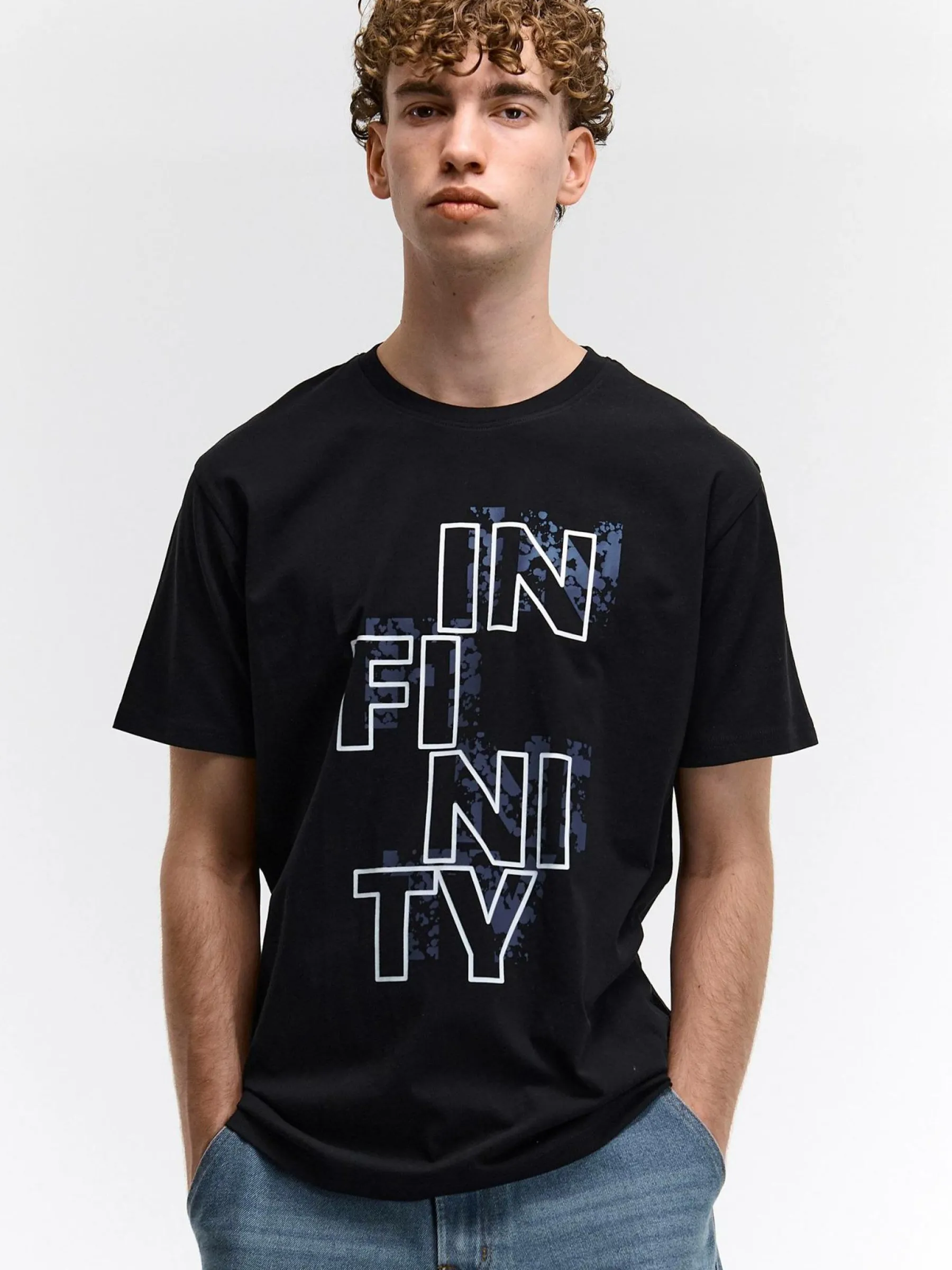 Kolor: czarnyKrój: regularTyp: koszulkaRekaw: krótki rękawPattern style: z napisemDetal: nad głowąMateriał: baweł…