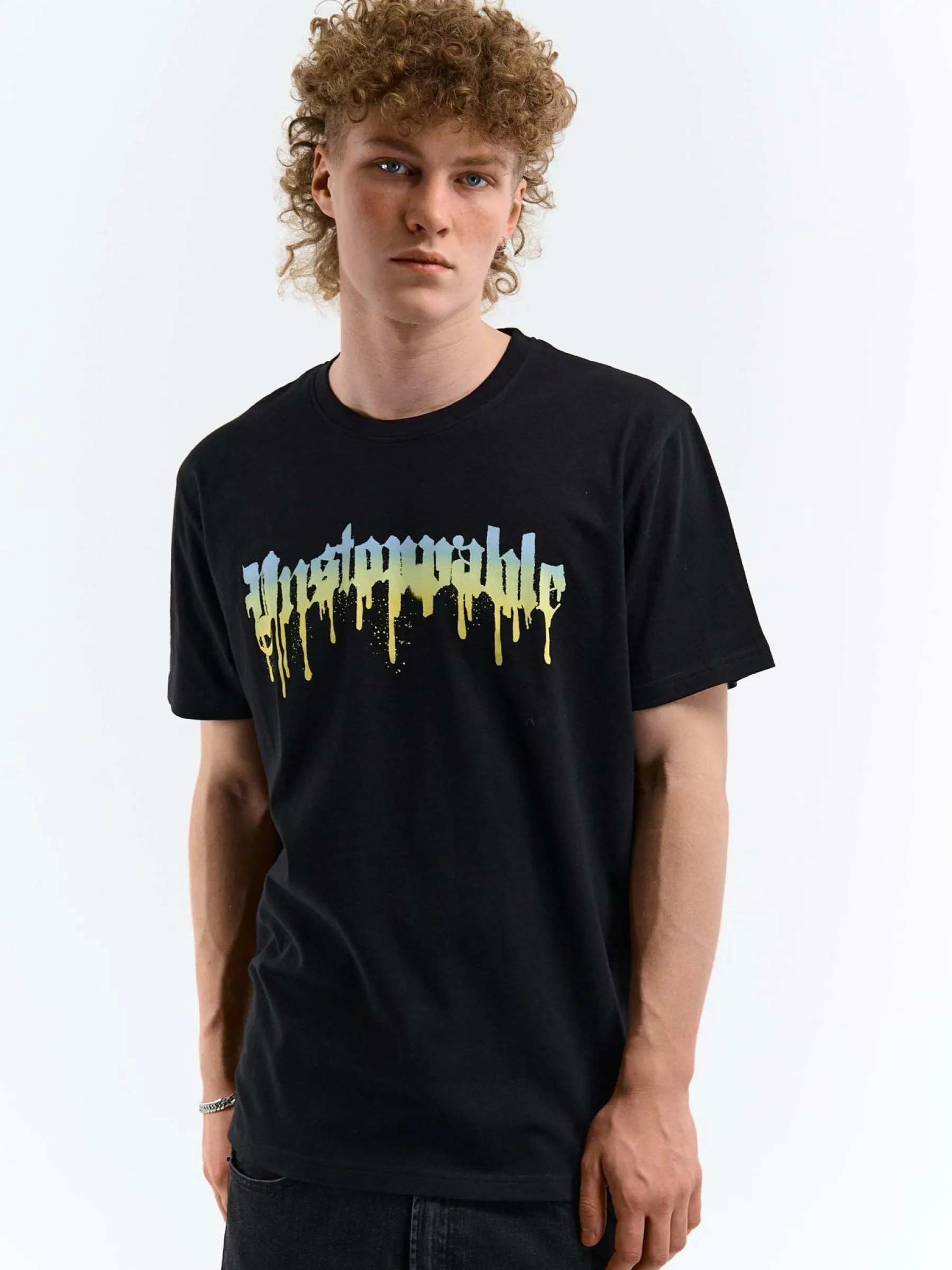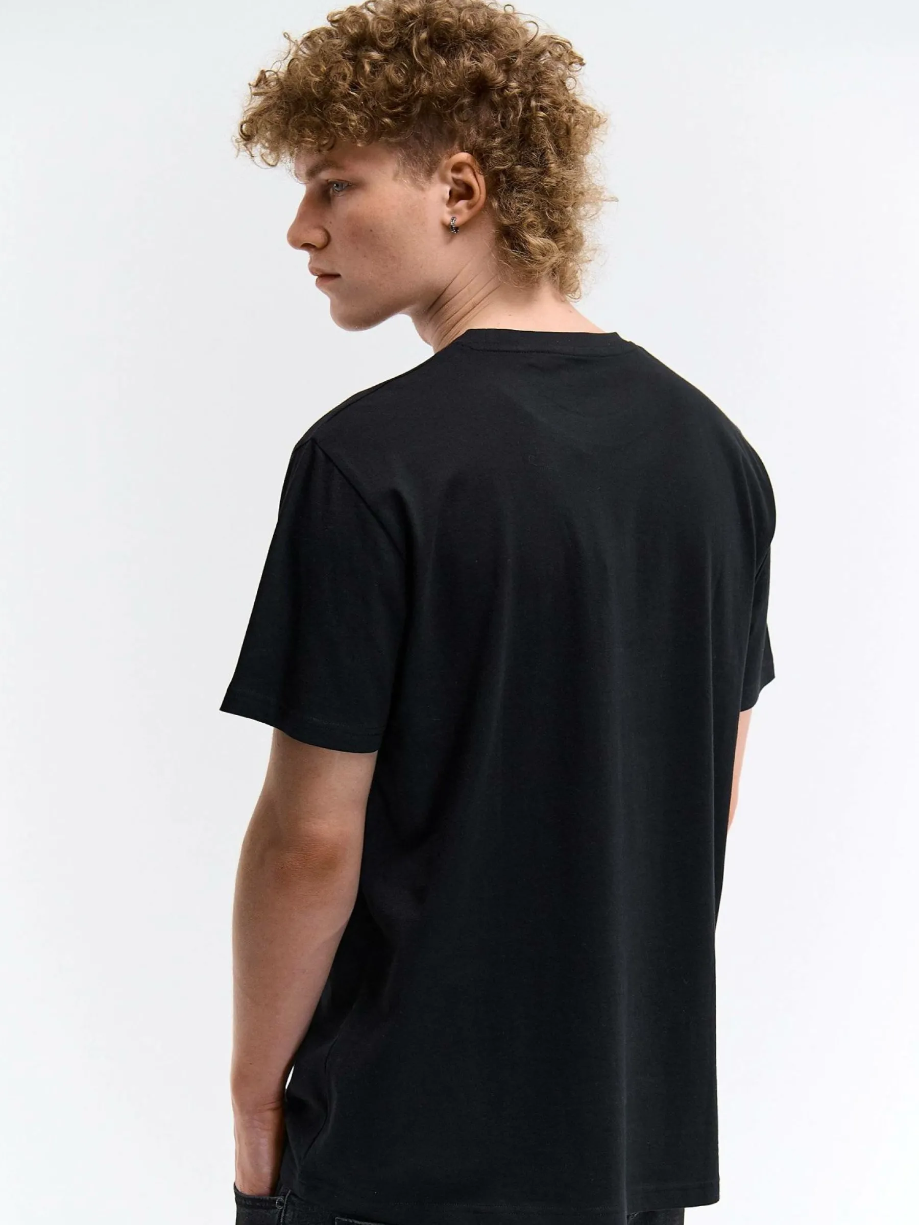 Kolor: czarnyKrój: regularTyp: koszulkaRekaw: krótki rękawPattern style: z nadrukiemDetal: nad głowąMateriał: bawe…