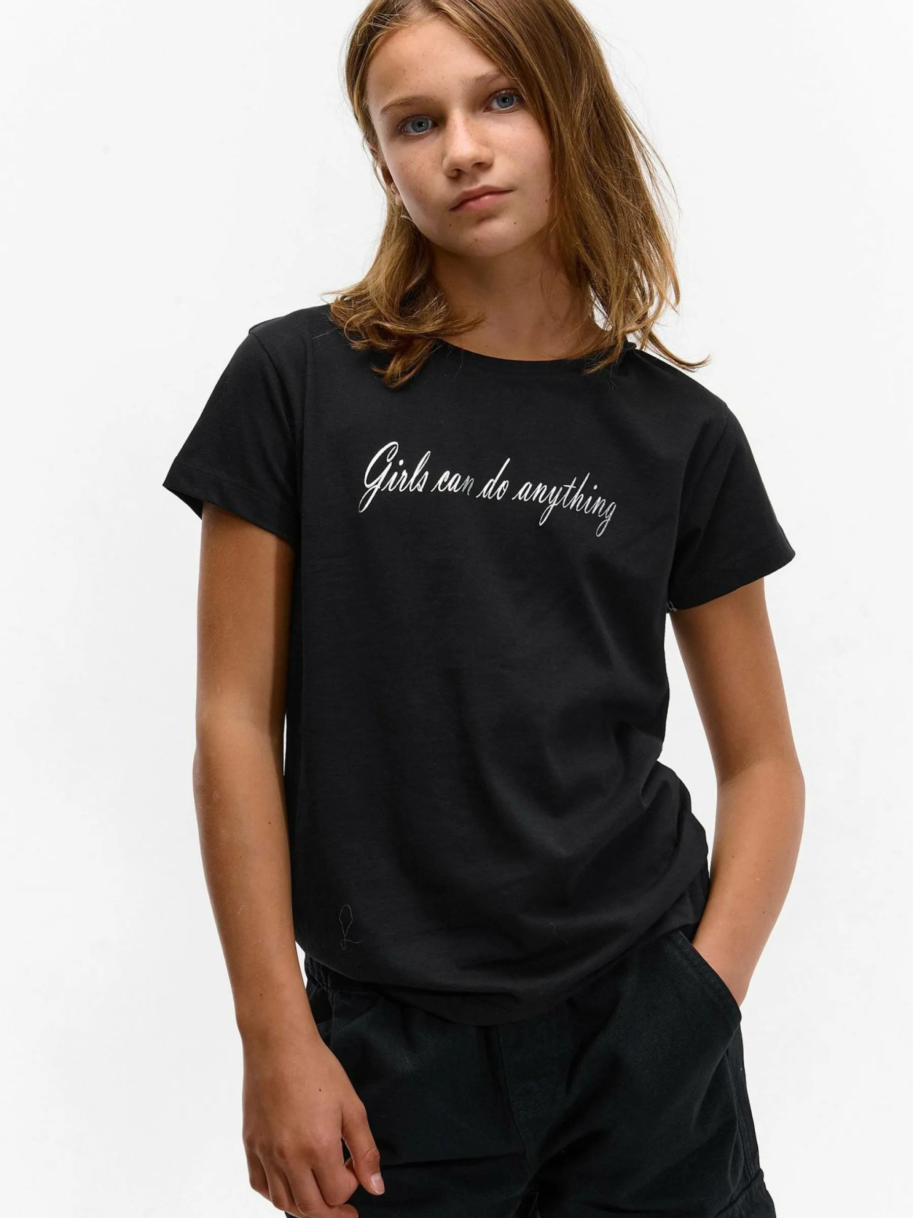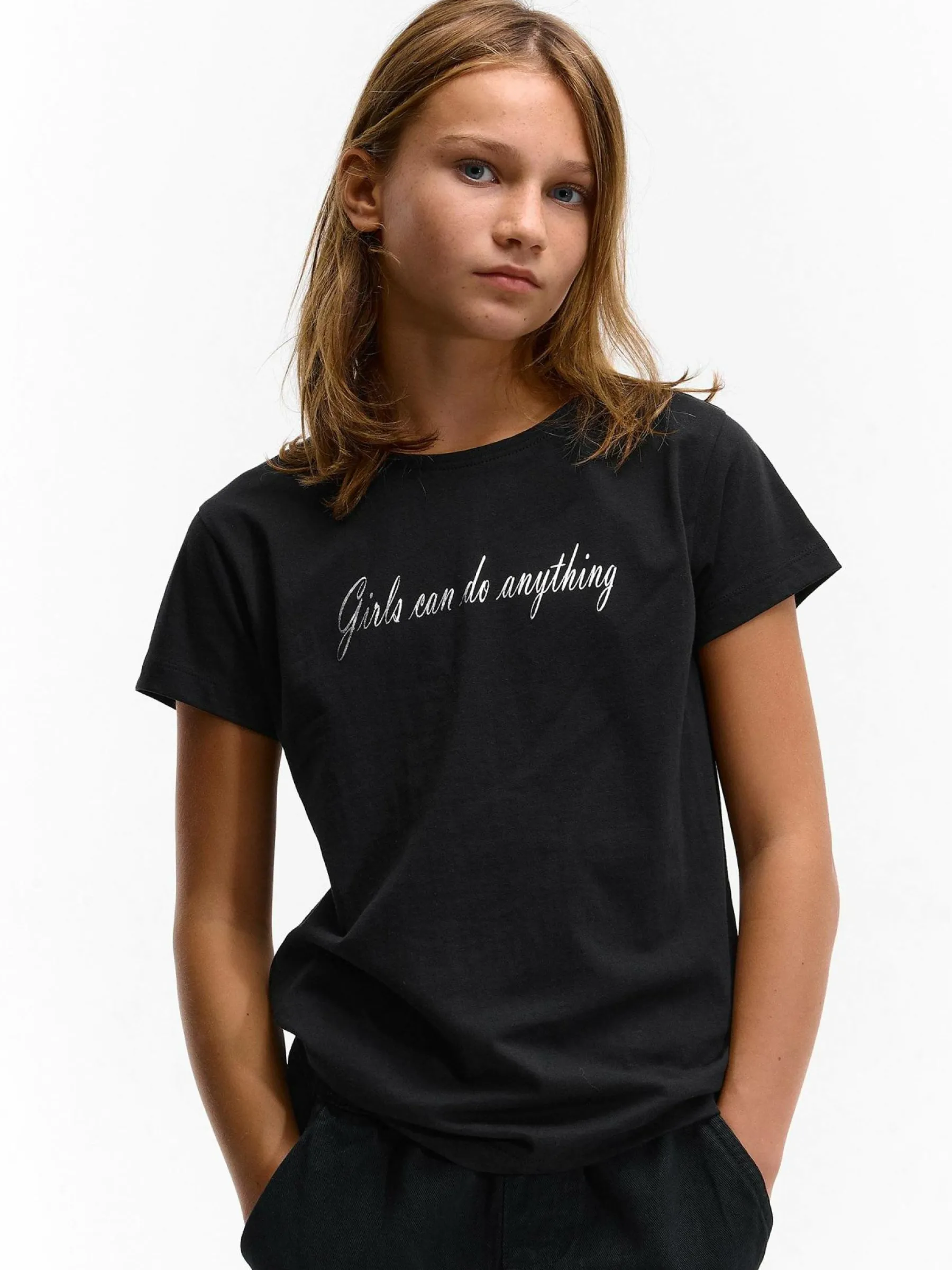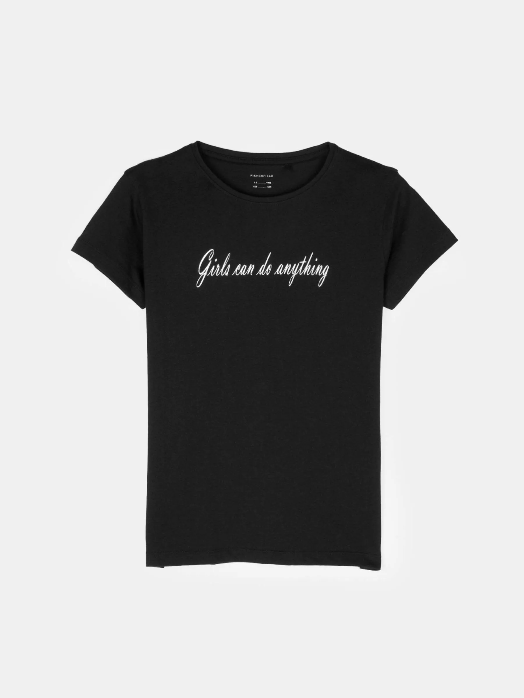Kolor: czarnyKrój: regularTyp: koszulkaRekaw: krótki rękawDługość: krótkiPattern style: z napisemDetal: nad głow…