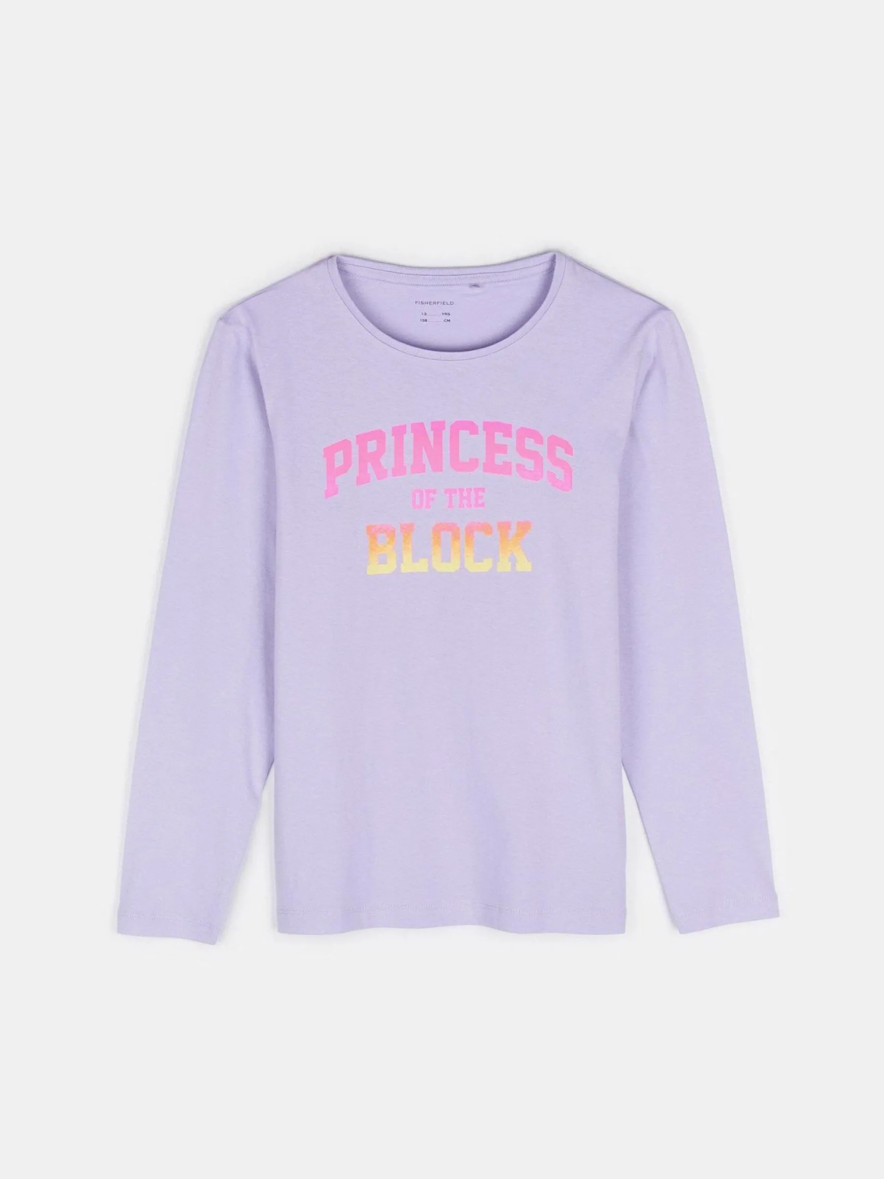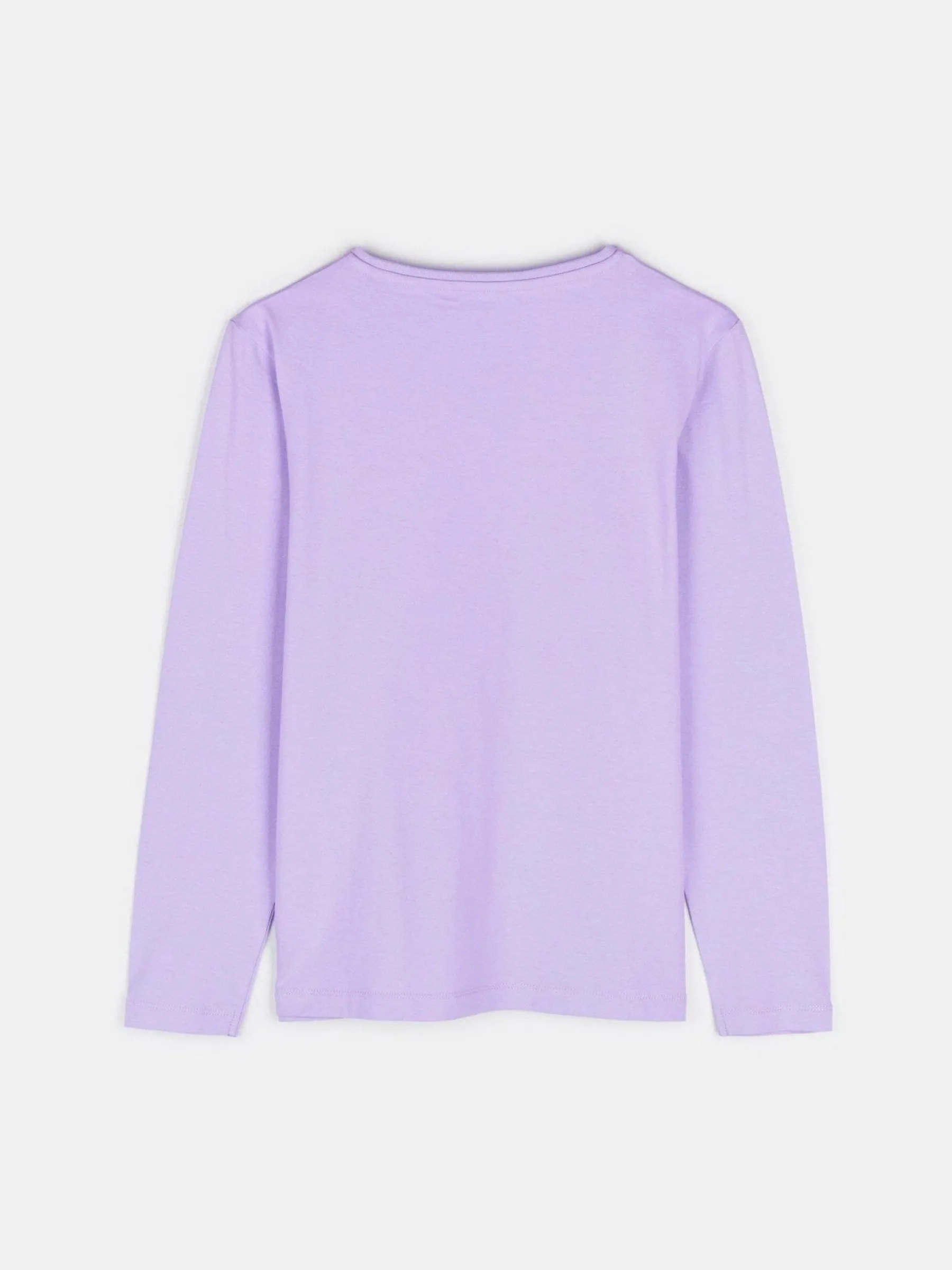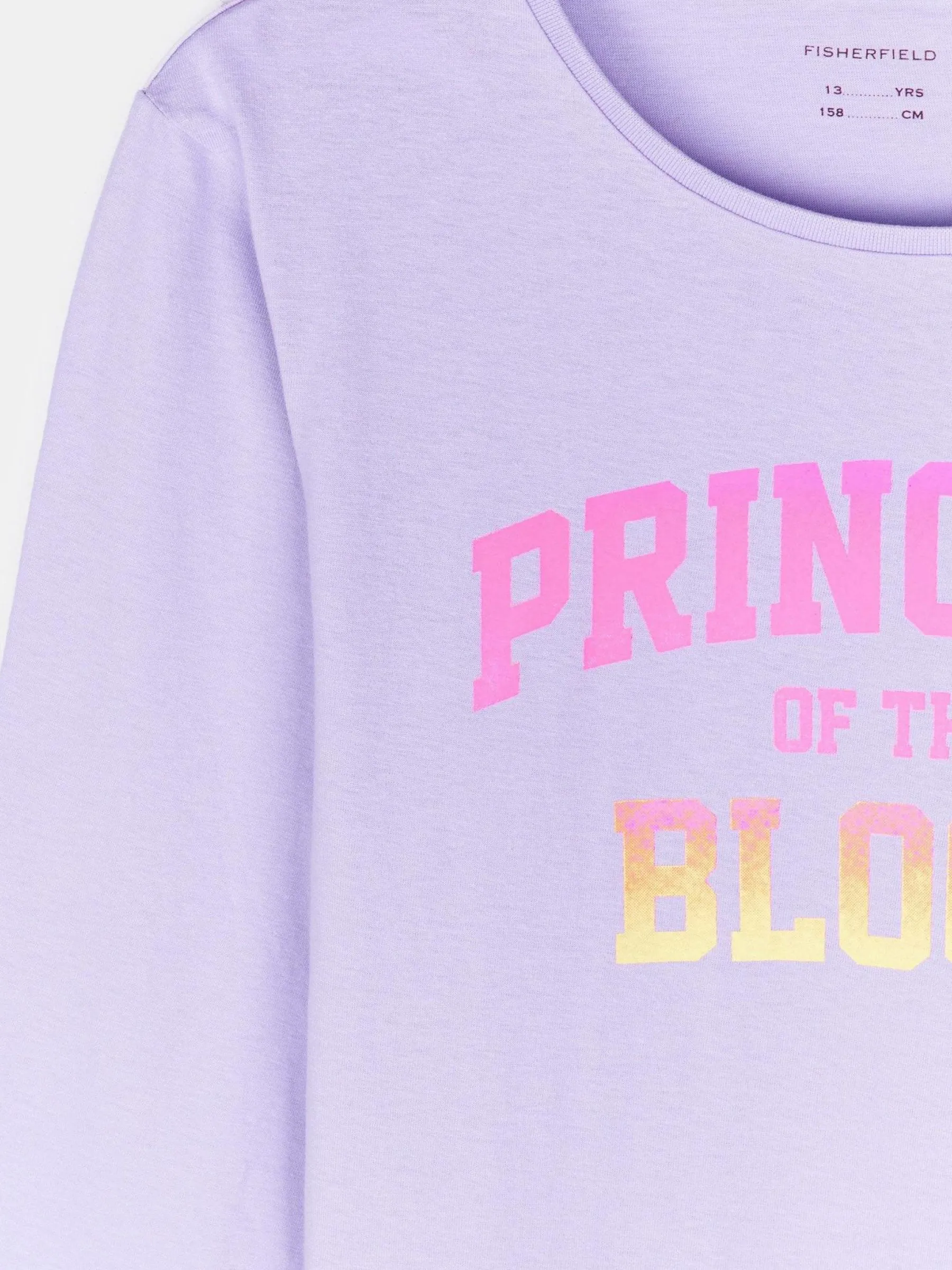 Kolor: purpurowyKrój: regularTyp: koszulkaRekaw: długi rękawDługość: krótkiPattern style: z nadrukiemDetal: nad g…