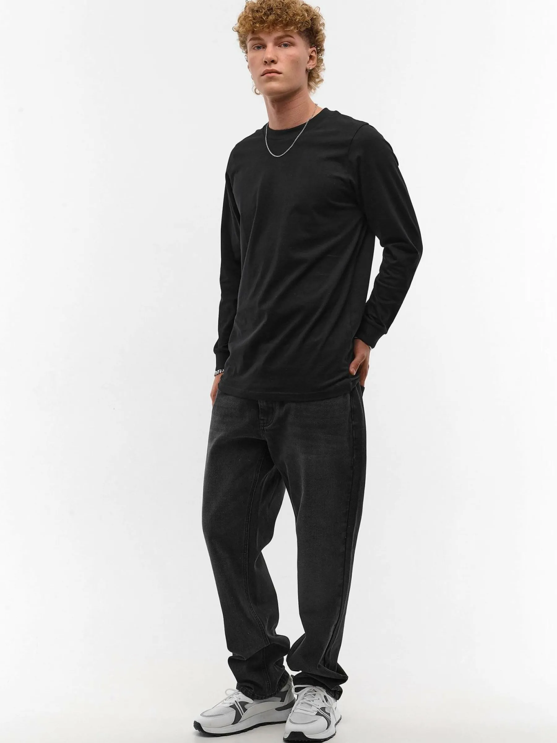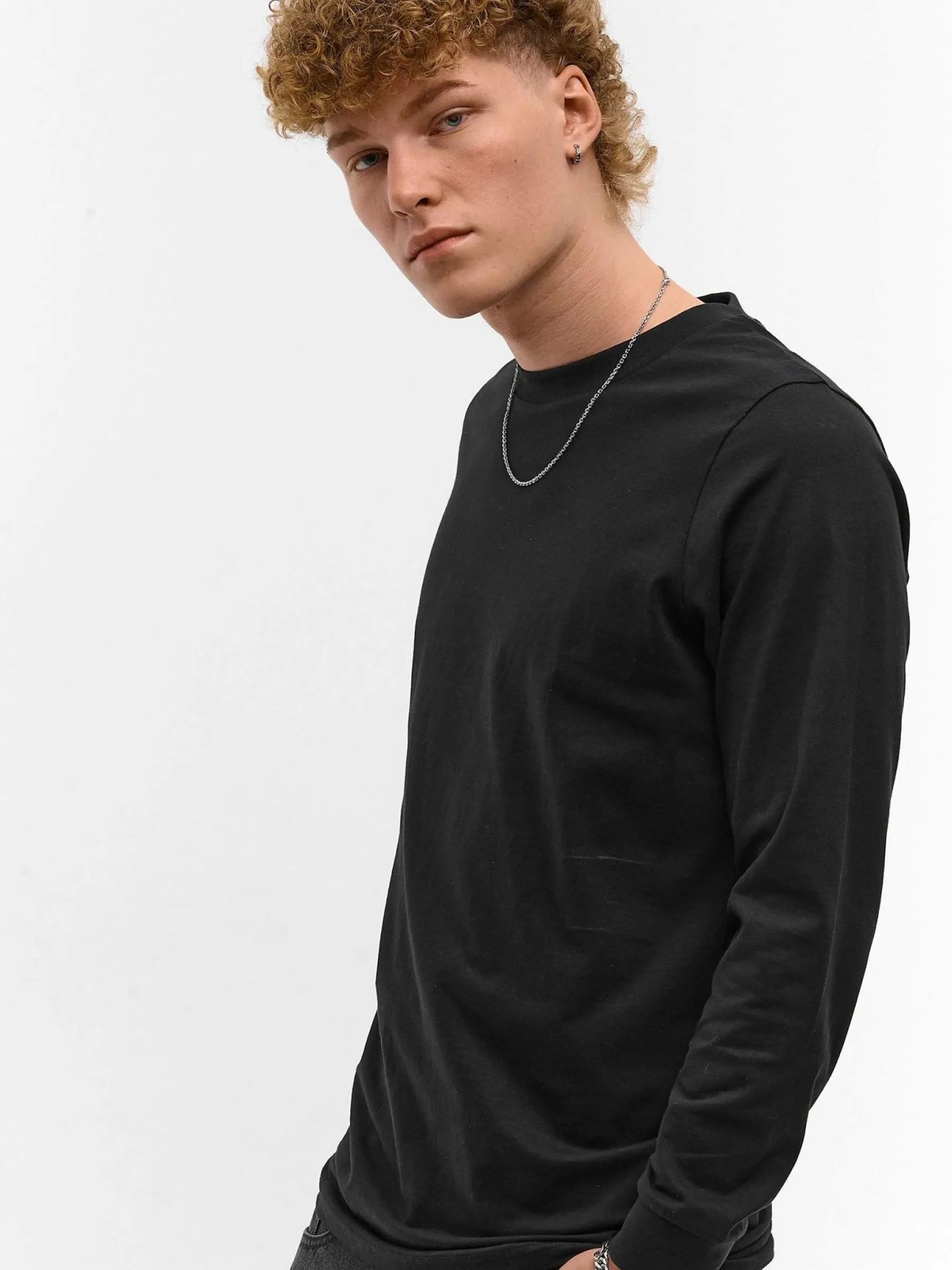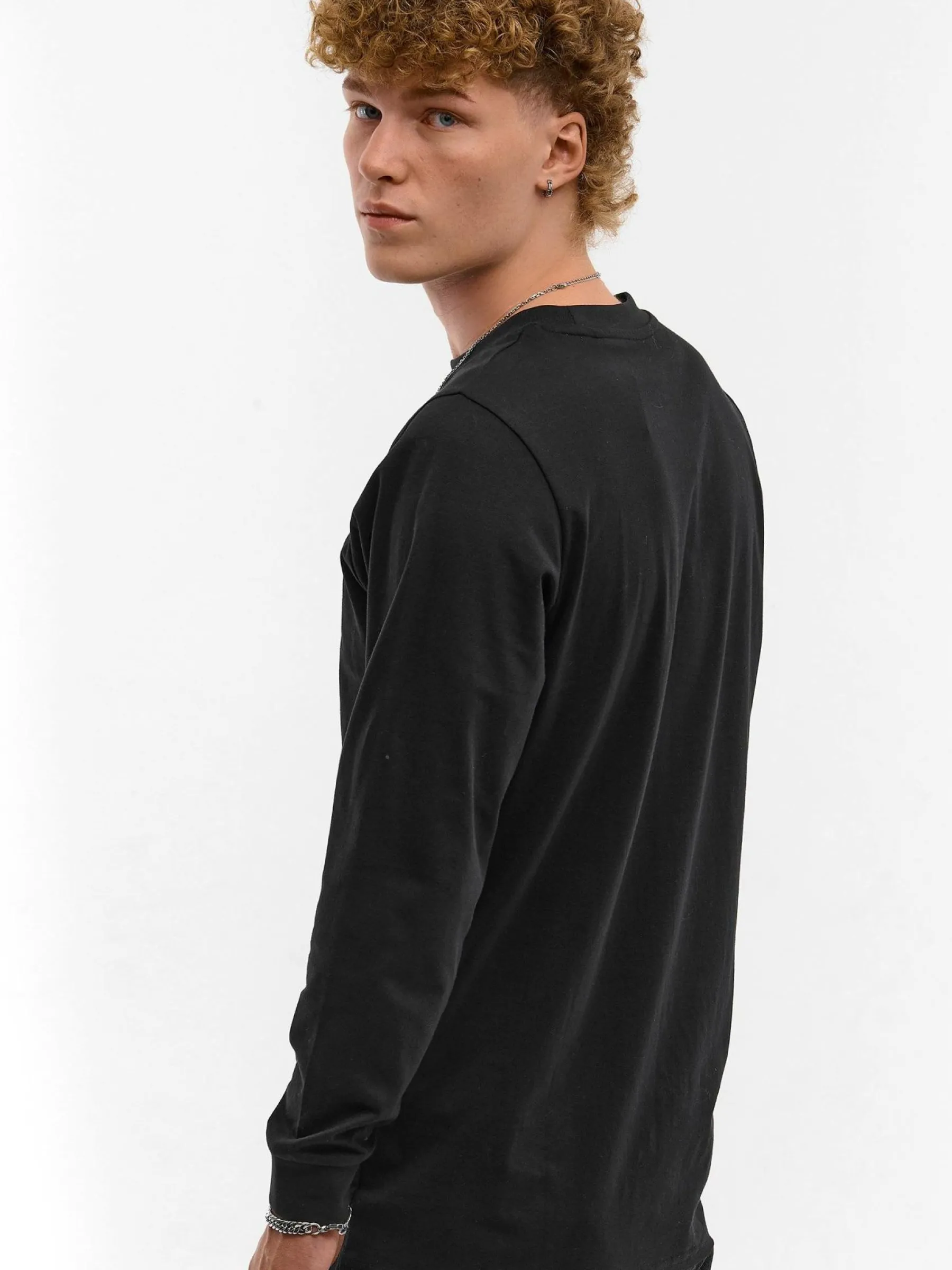 Kolor: czarnyKrój: regularTyp: koszulkaRekaw: długi rękawPattern style: pojedynczy kolorDetal: nad głowąMateriał: …