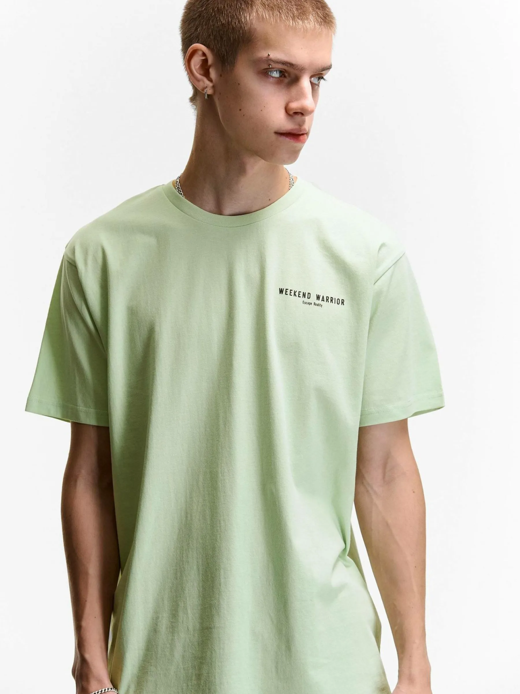 Kolor: zielonyKrój: regularTyp: koszulkaRekaw: krótki rękawPattern style: pojedynczy kolor, z napisemDetal: nad głow…