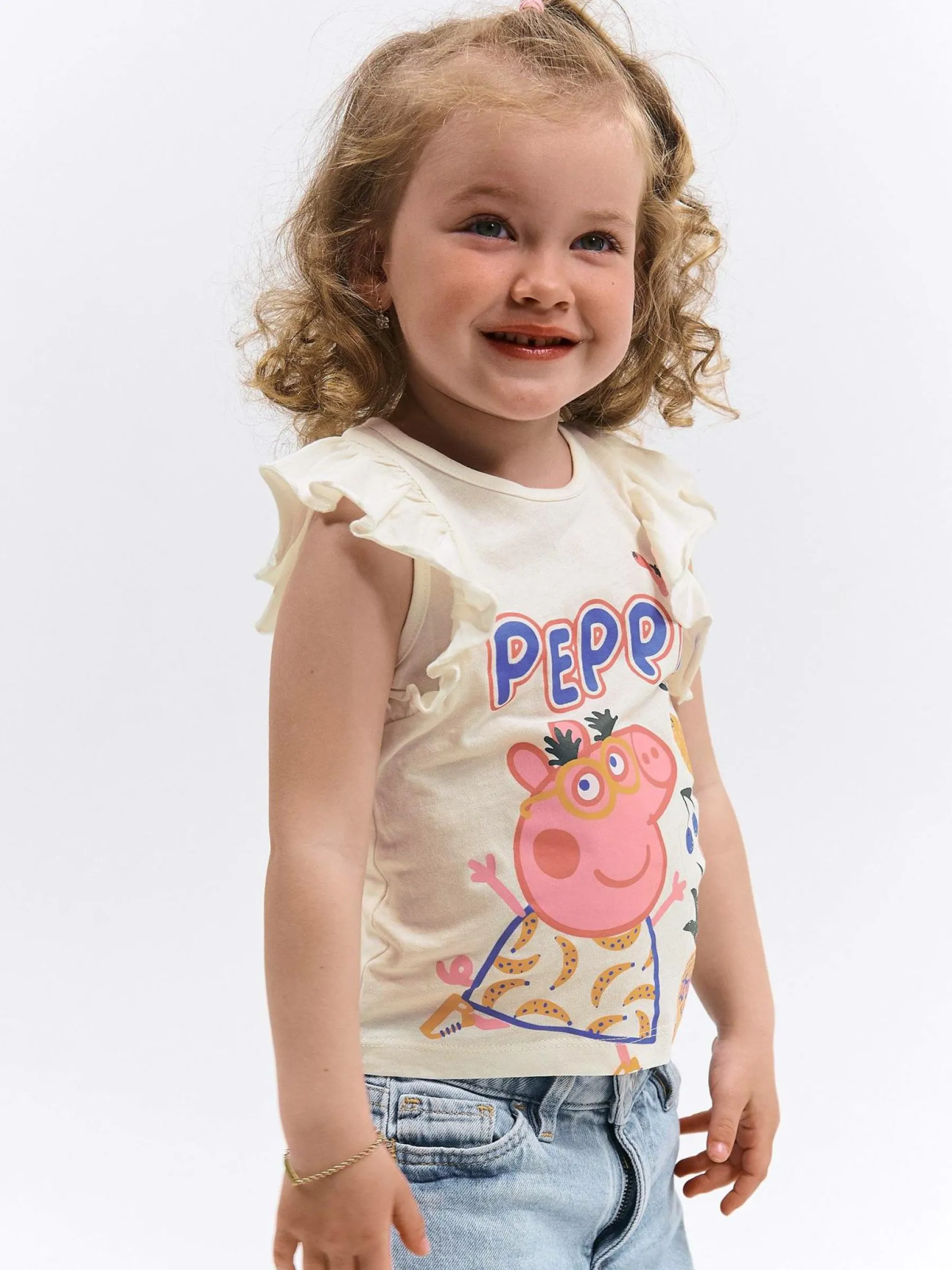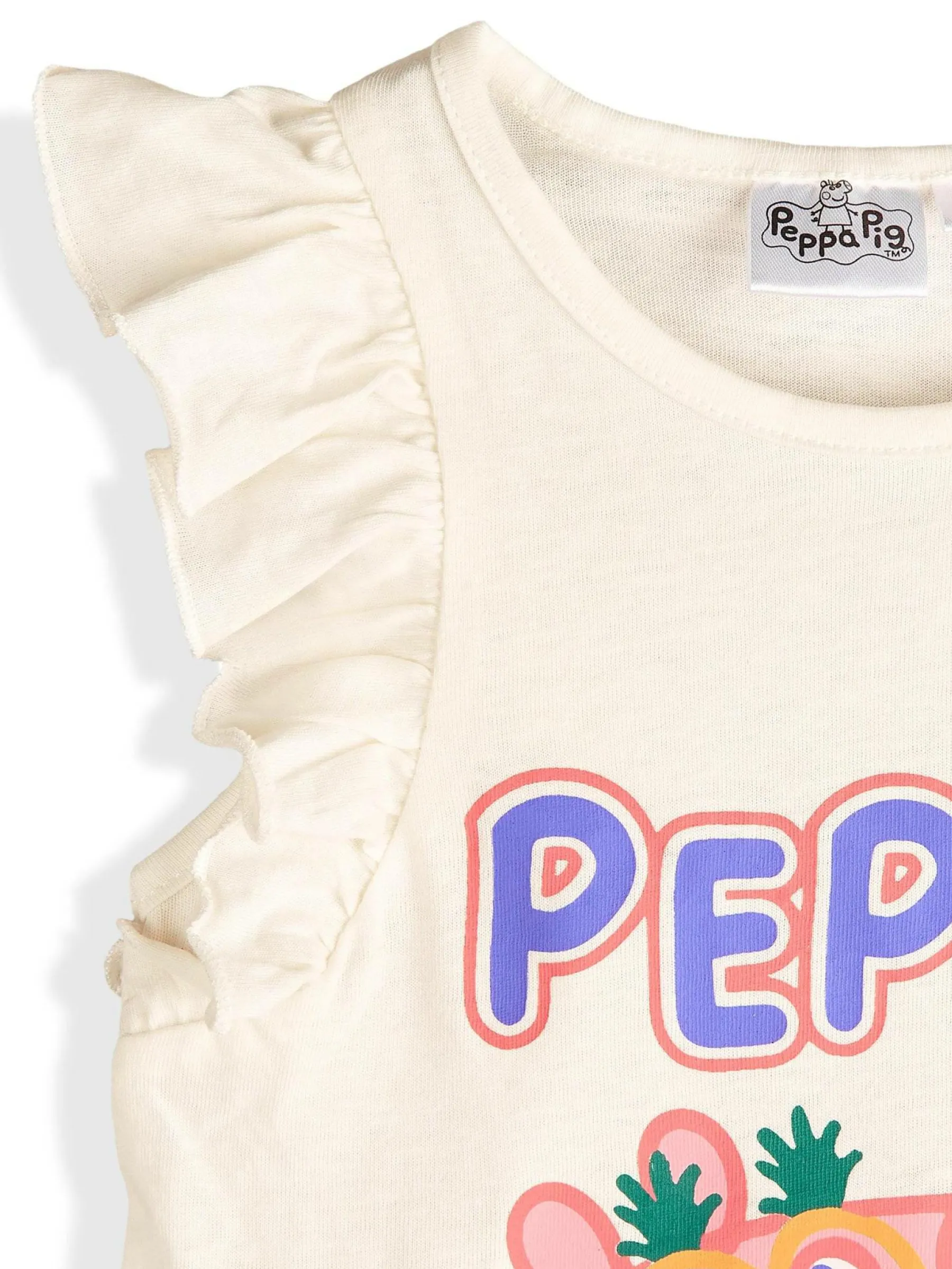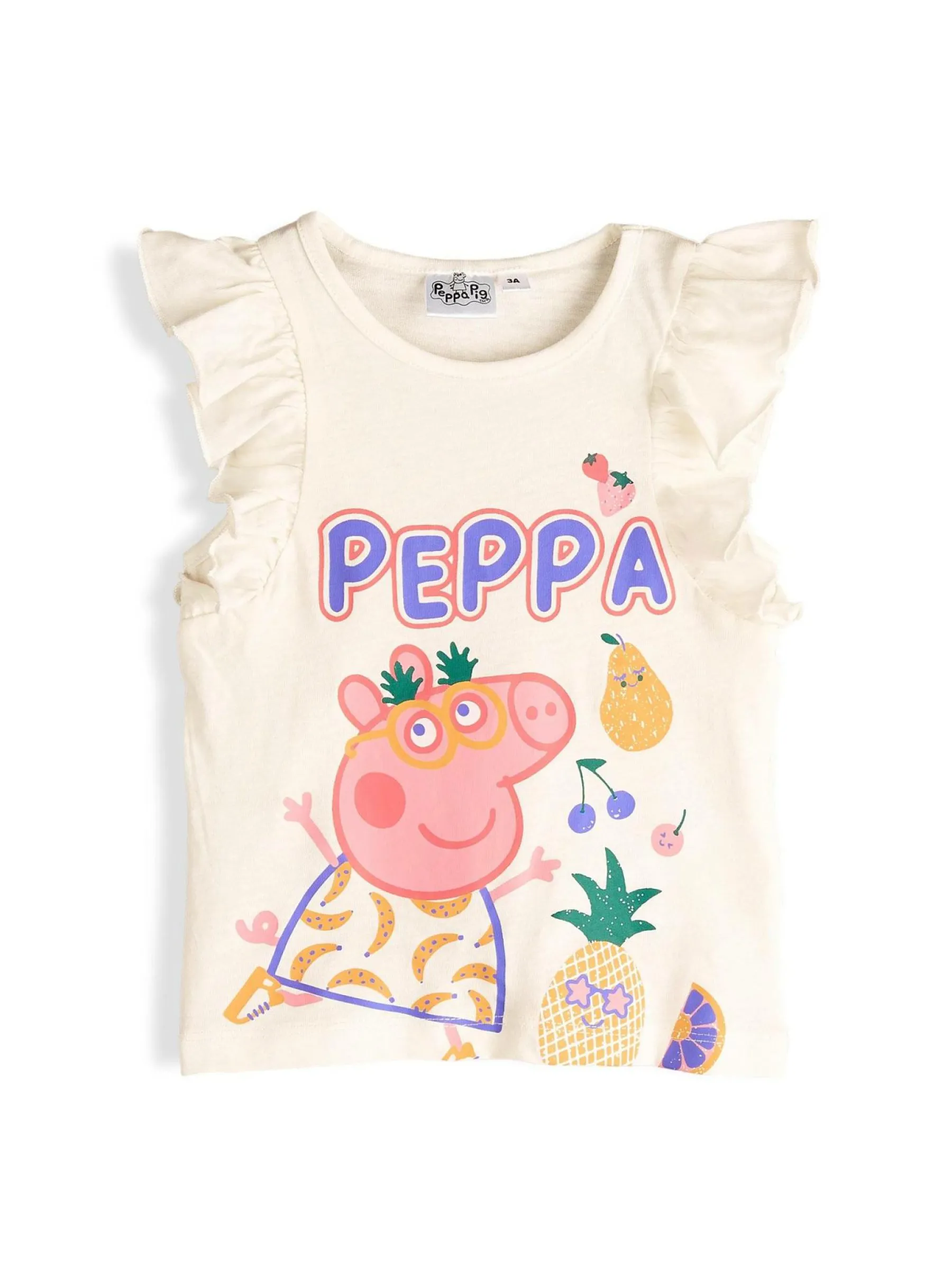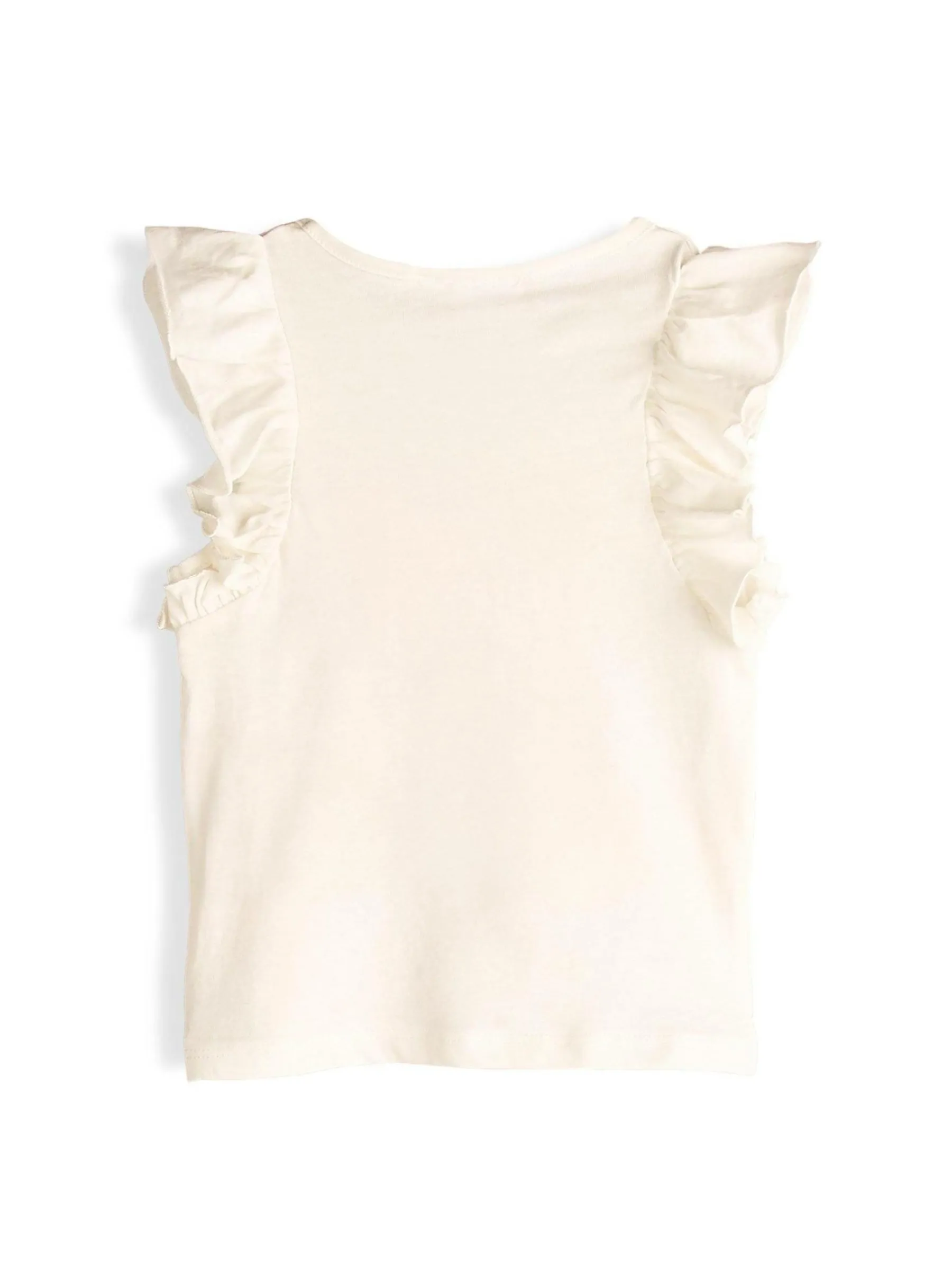 Kolor: białyKrój: z falbanąTyp: koszulkaRekaw: krótki rękawDługość: krótkiPattern style: z nadrukiemDetal: nad …