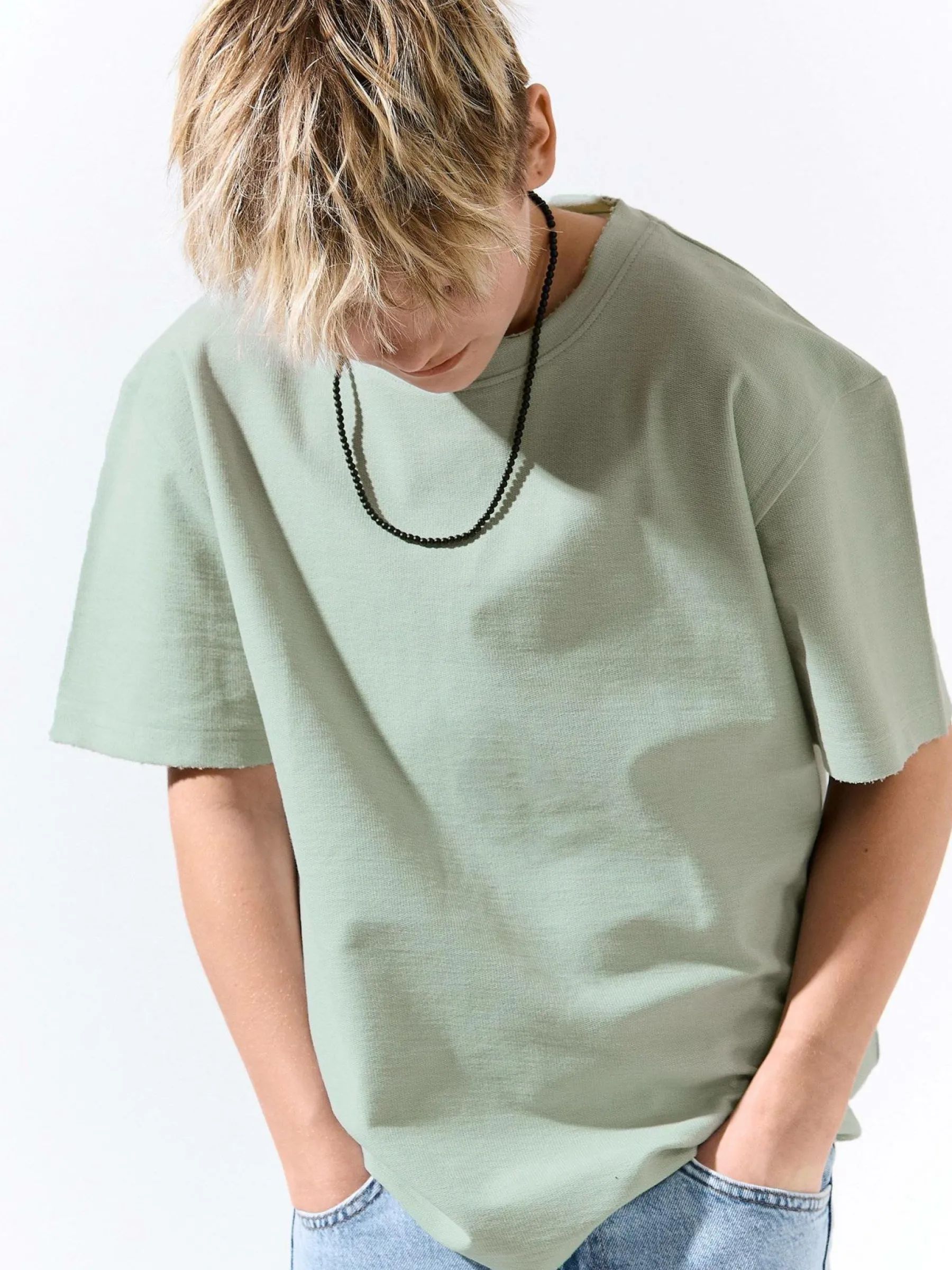 Kolor: zielonyKrój: regularTyp: koszulkaRekaw: krótki rękawDługość: krótkiPattern style: pojedynczy kolorDetal: n…