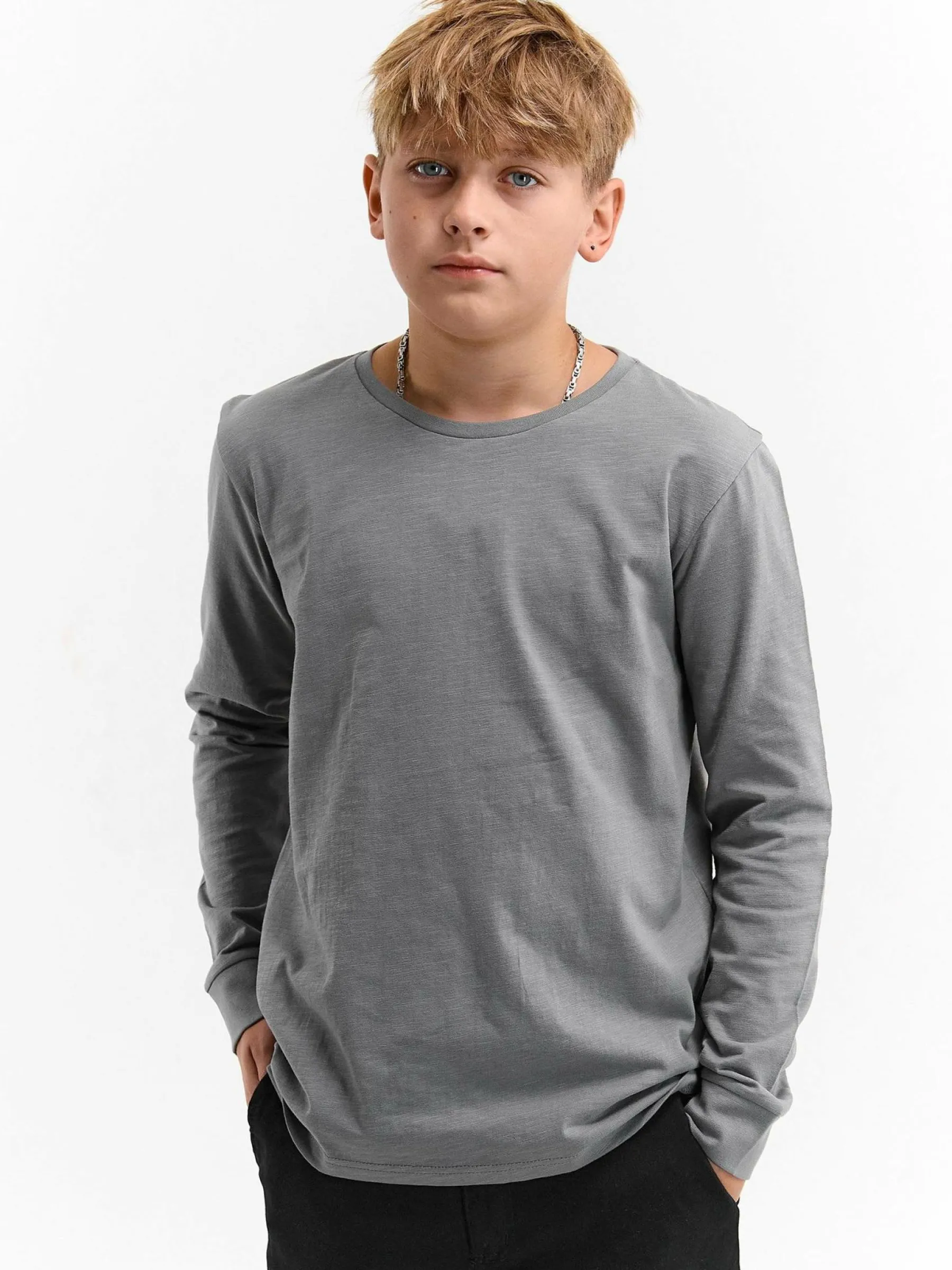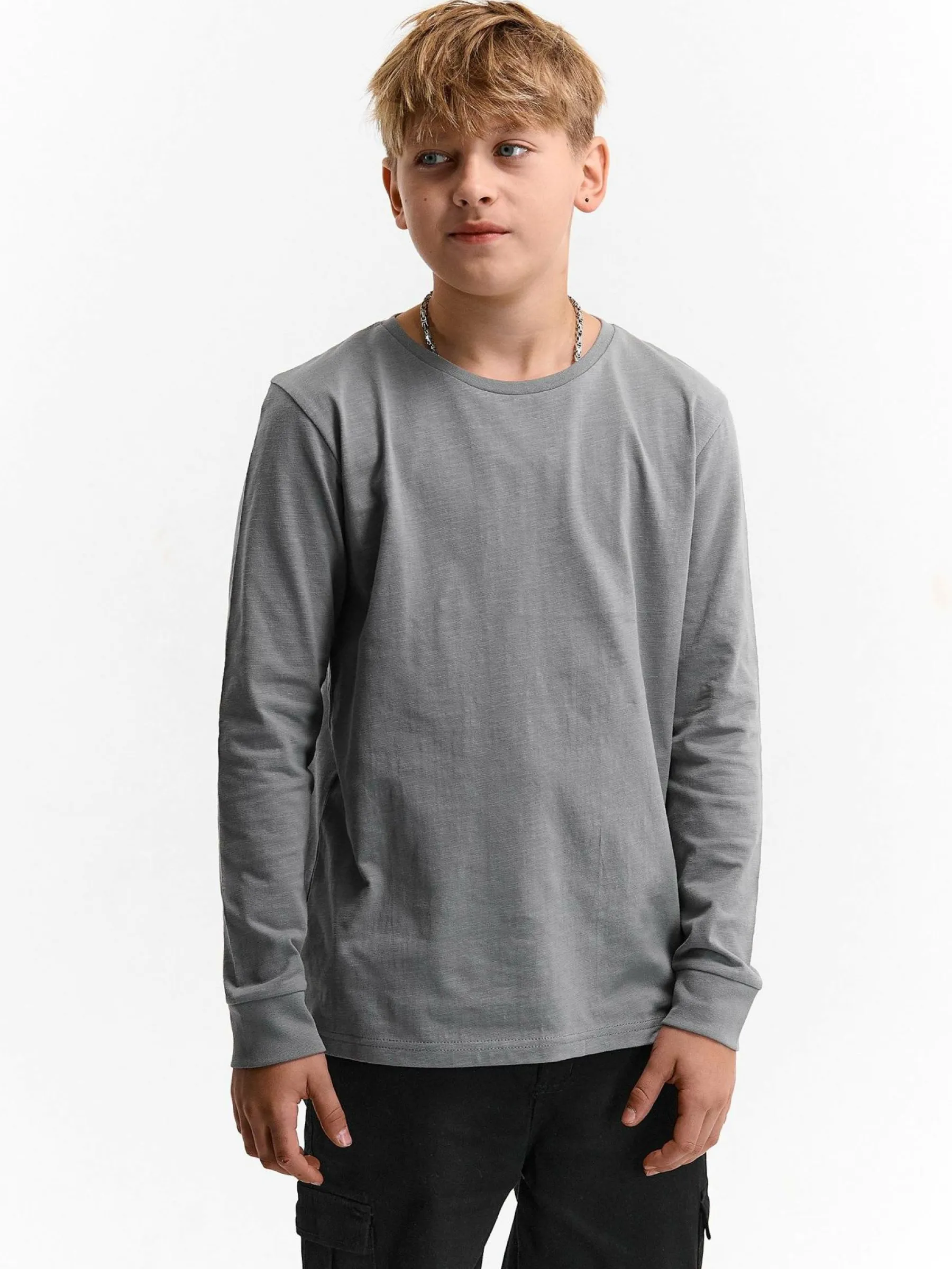 Kolor: szaryKrój: podstawowyTyp: koszulkaRekaw: długi rękawDługość: krótkiPattern style: pojedynczy kolorDetal: n…