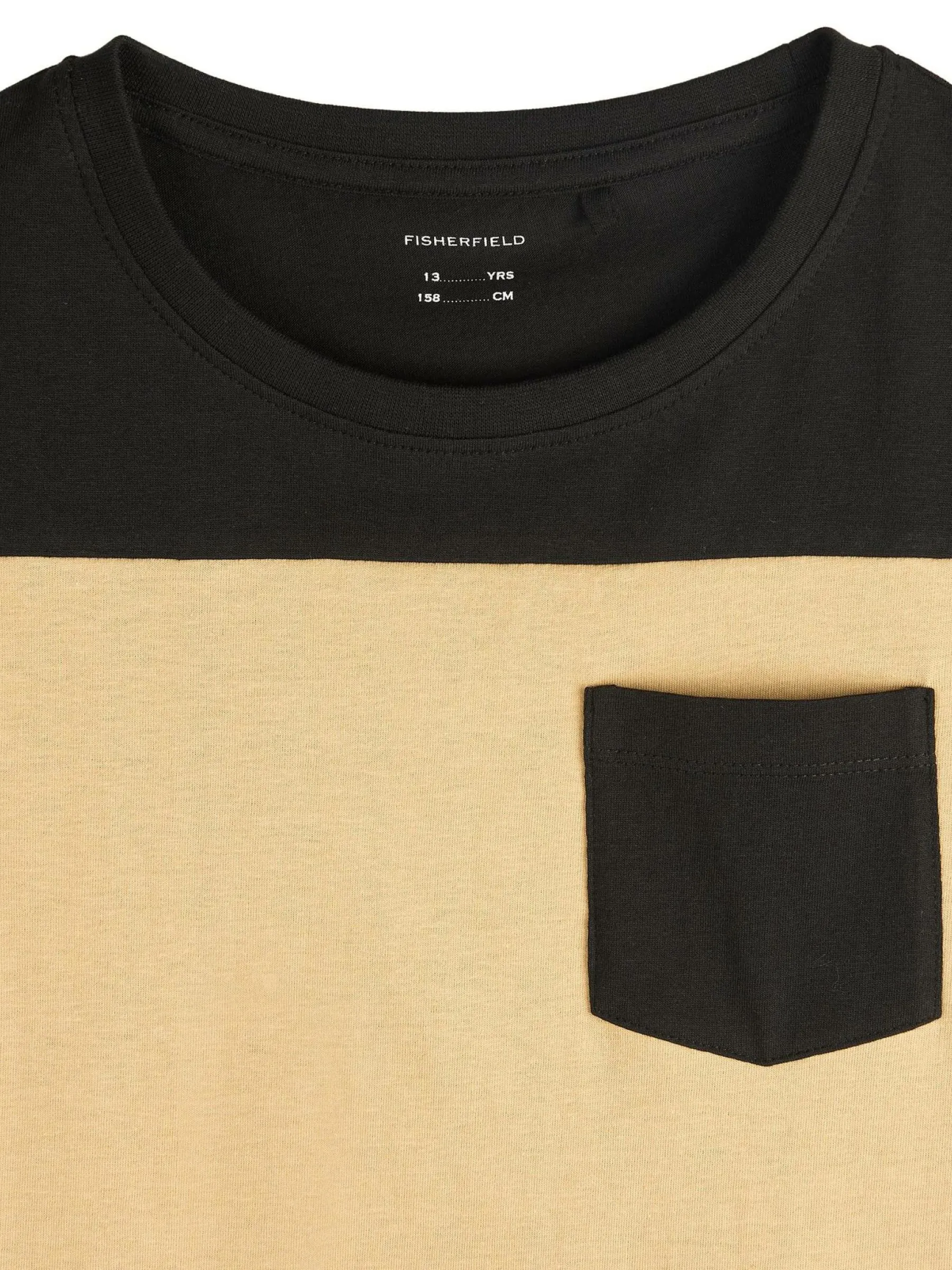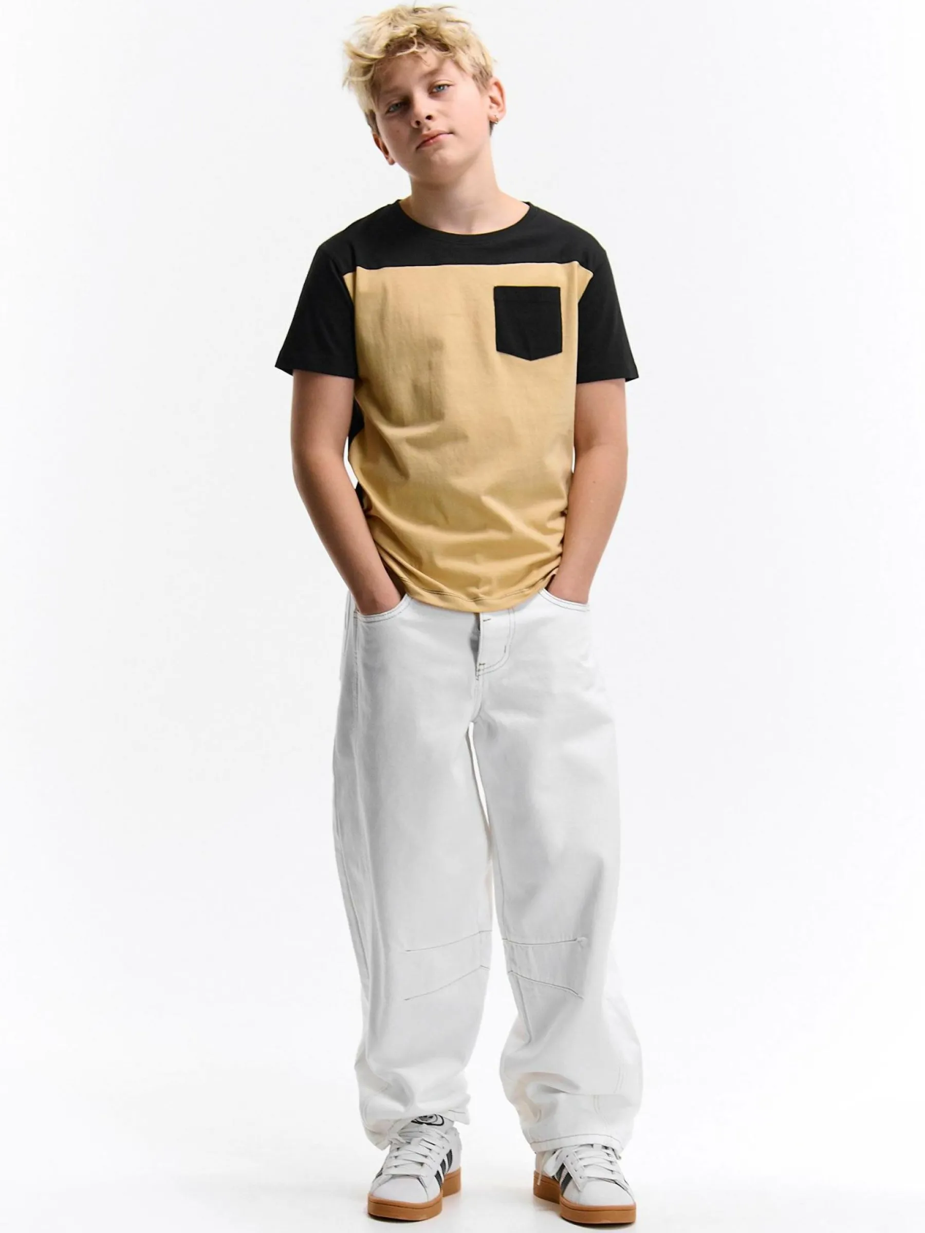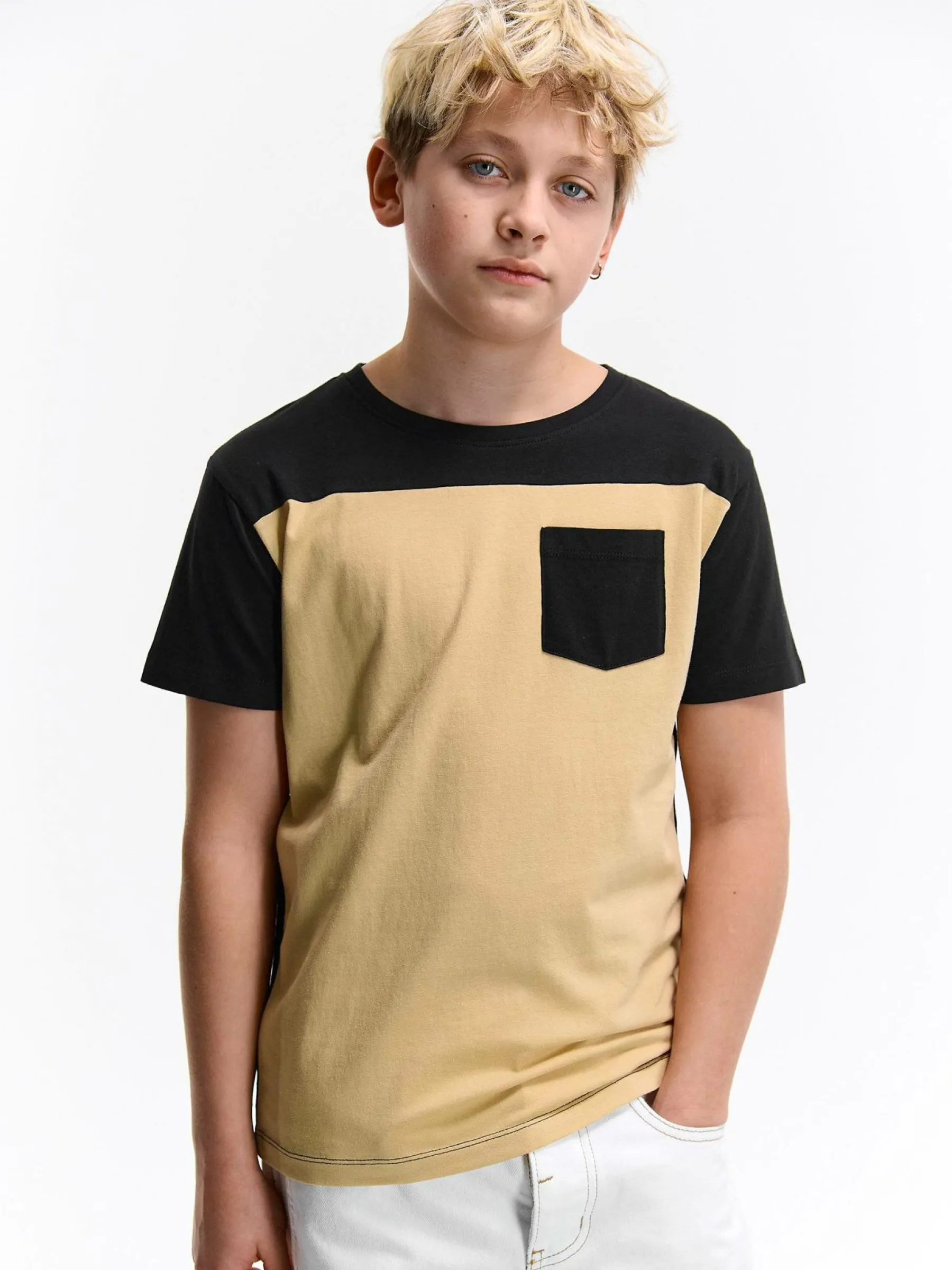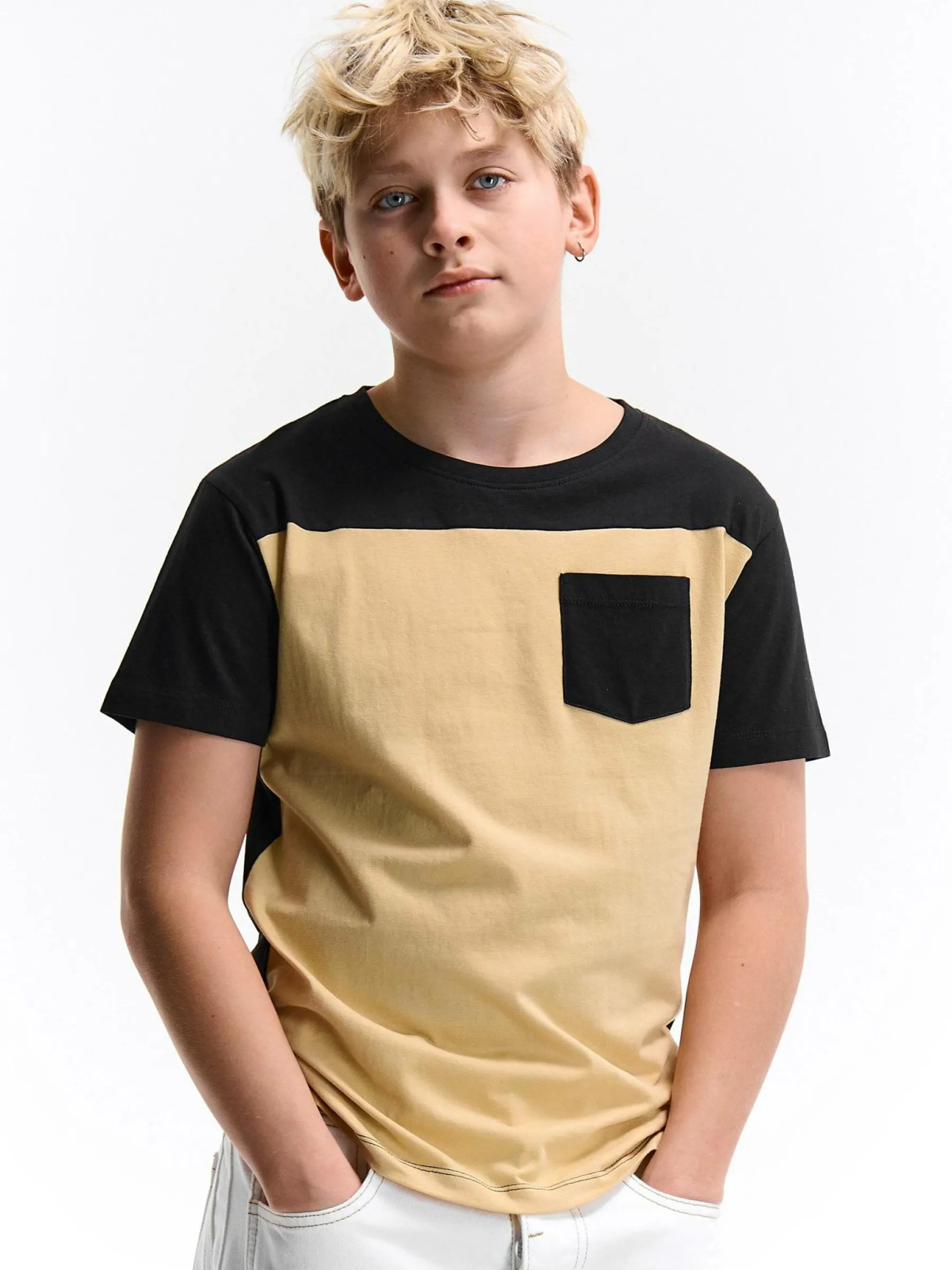Kolor: czarnyKrój: regularTyp: koszulkaRekaw: krótki rękawDługość: krótkiPattern style: colour blockDetal: z kies…