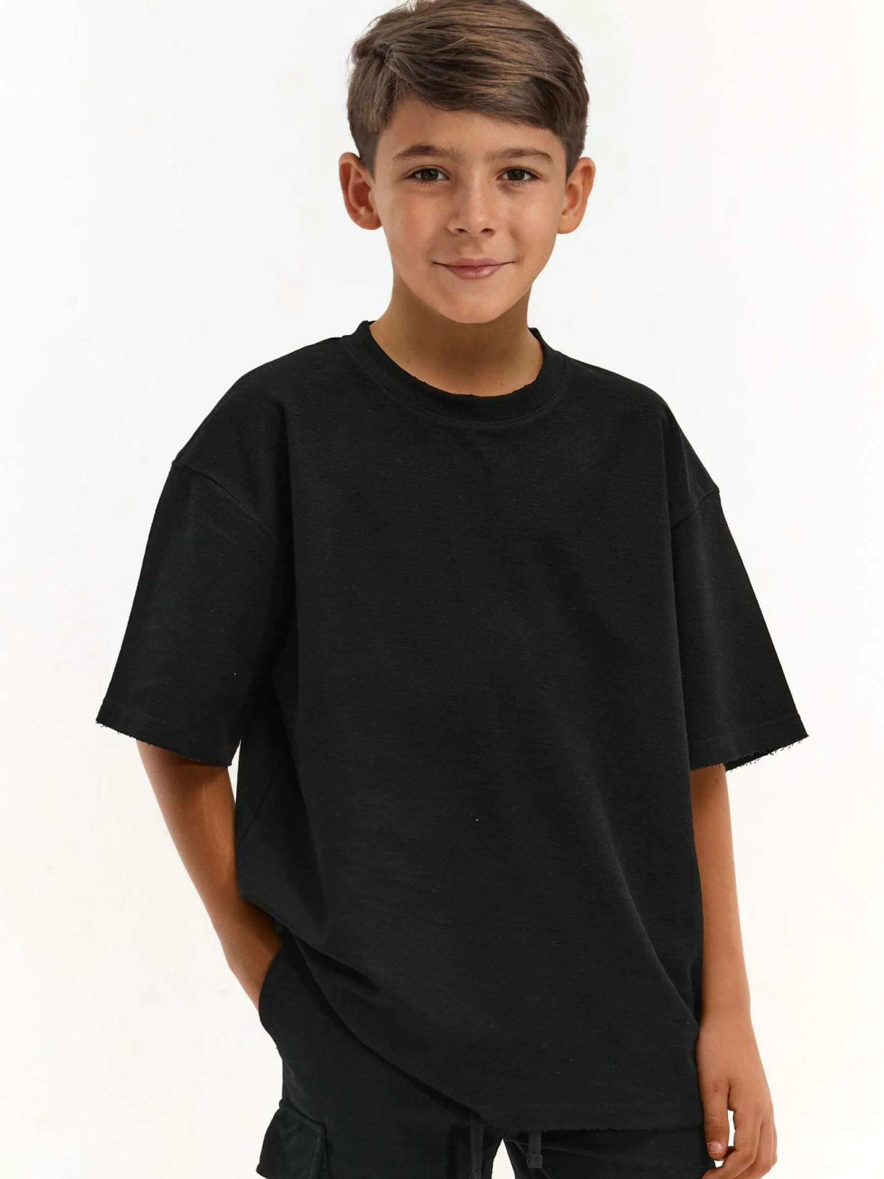 Kolor: czarnyKrój: regularTyp: koszulkaRekaw: krótki rękawDługość: krótkiPattern style: pojedynczy kolorDetal: na…