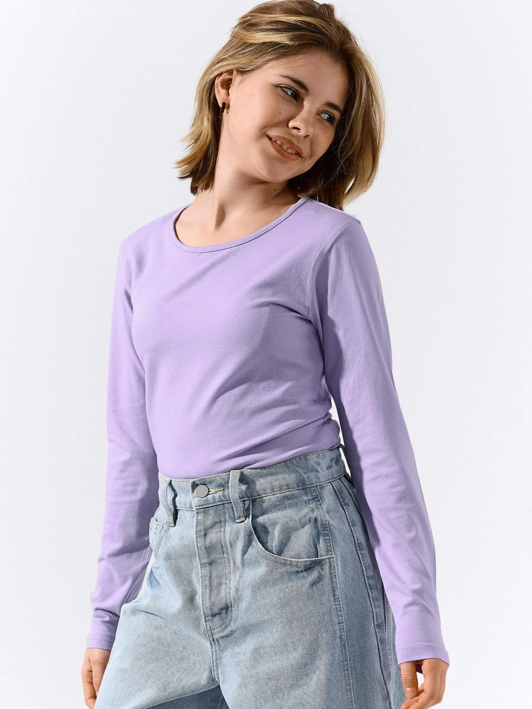 Kolor: purpurowyKrój: podstawowyTyp: koszulkaRekaw: długi rękawDługość: krótkiPattern style: pojedynczy kolorDeta…