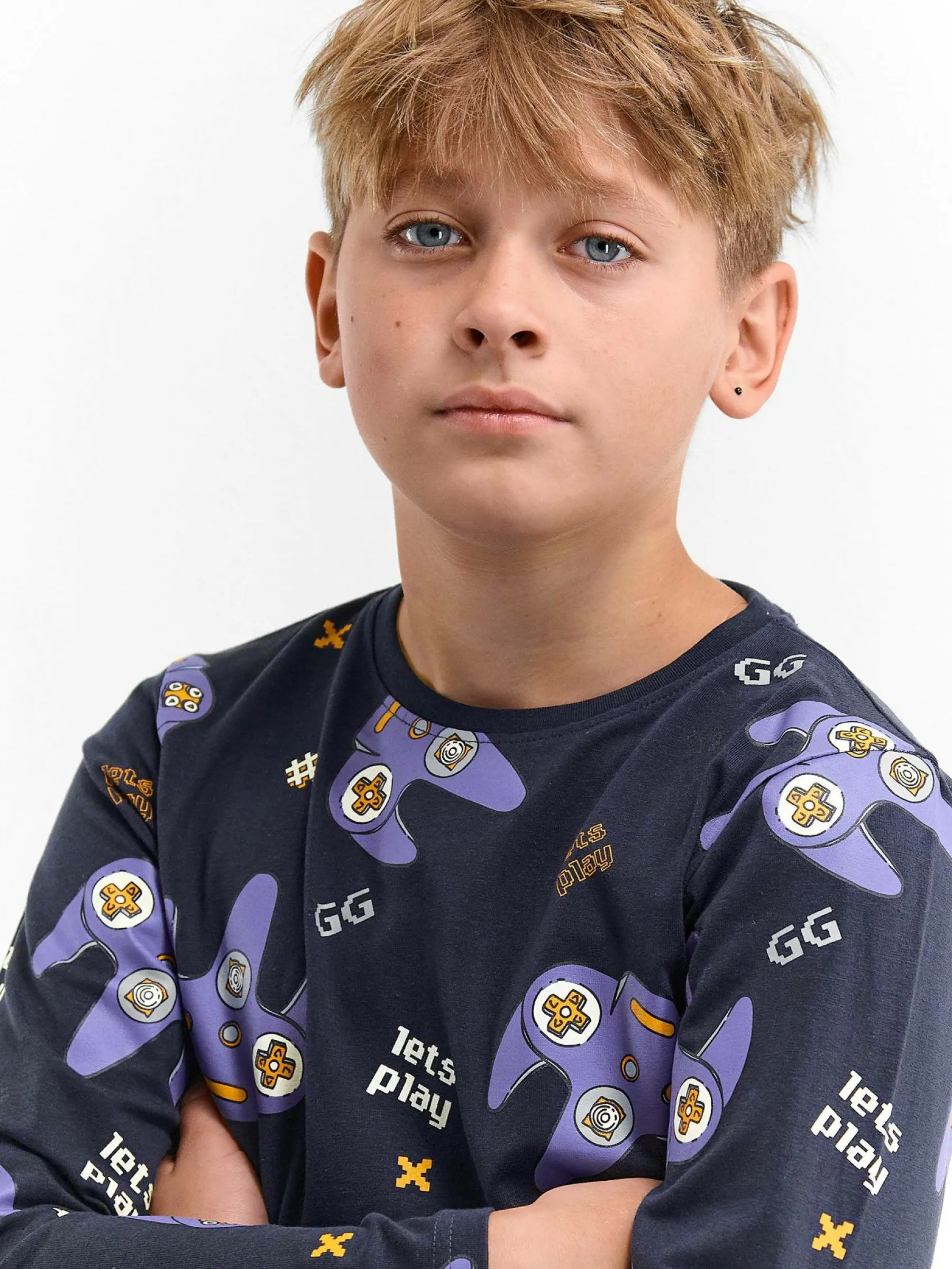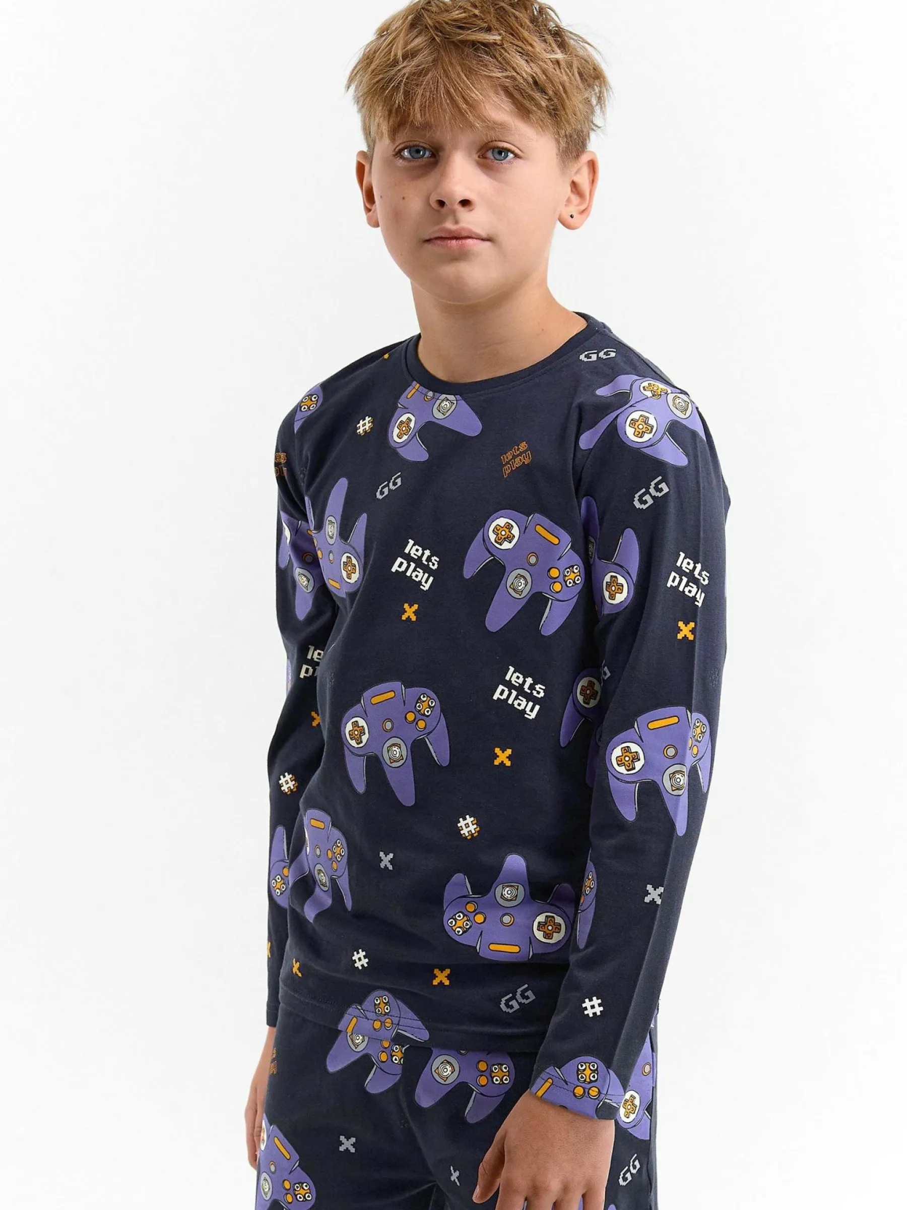 Kolor: granatowyTyp: piżamaRekaw: długi rękawDługość: dlugiePattern style: z nadrukiemDetal: nad głowąMateriał:…