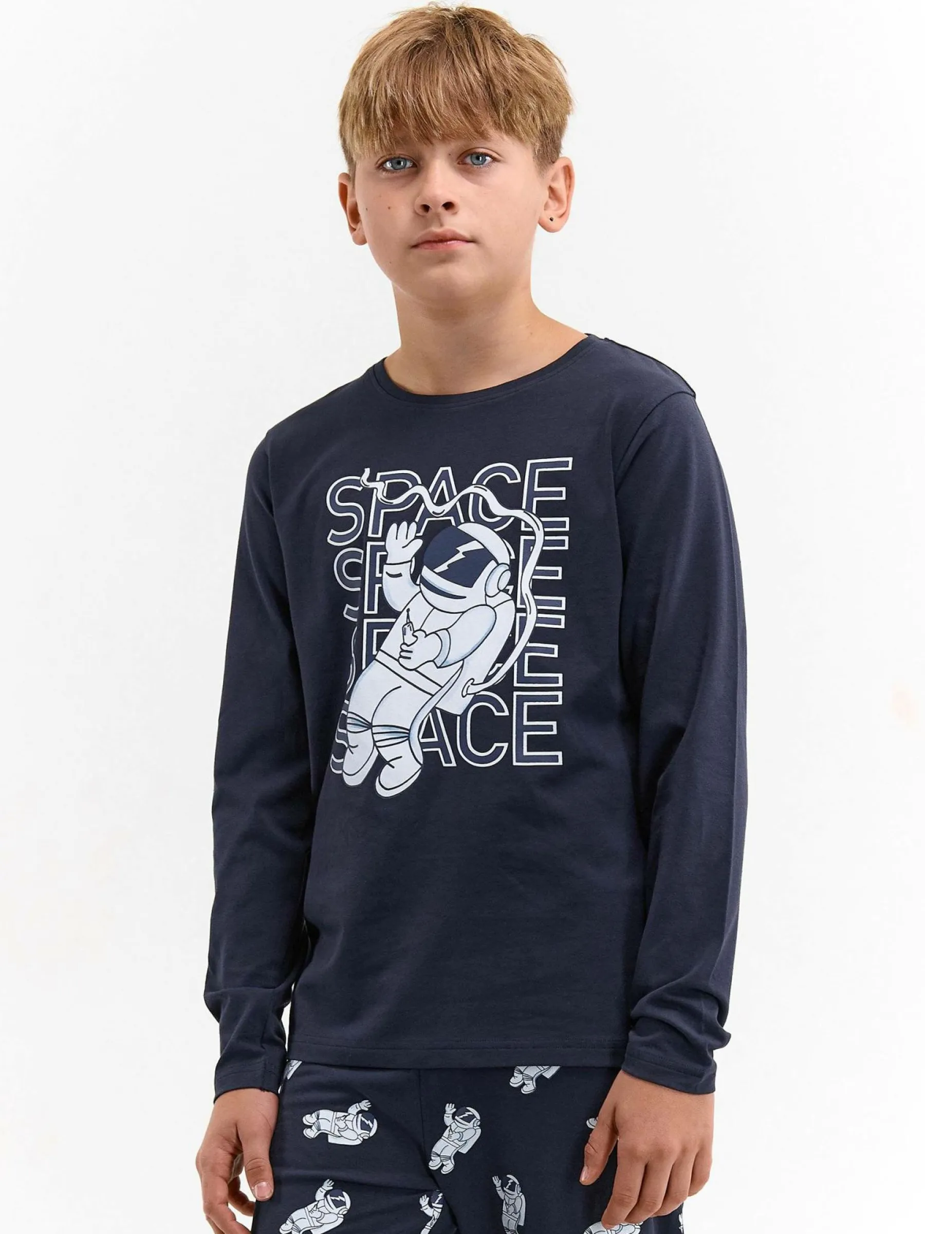 Kolor: granatowy, niebieskiKrój: podstawowyTyp: piżamaRekaw: długi rękawDługość: dlugiePattern style: z nadrukiem…