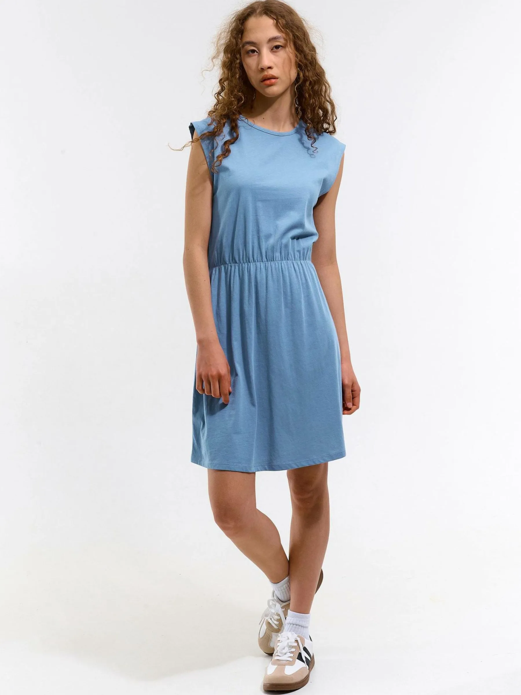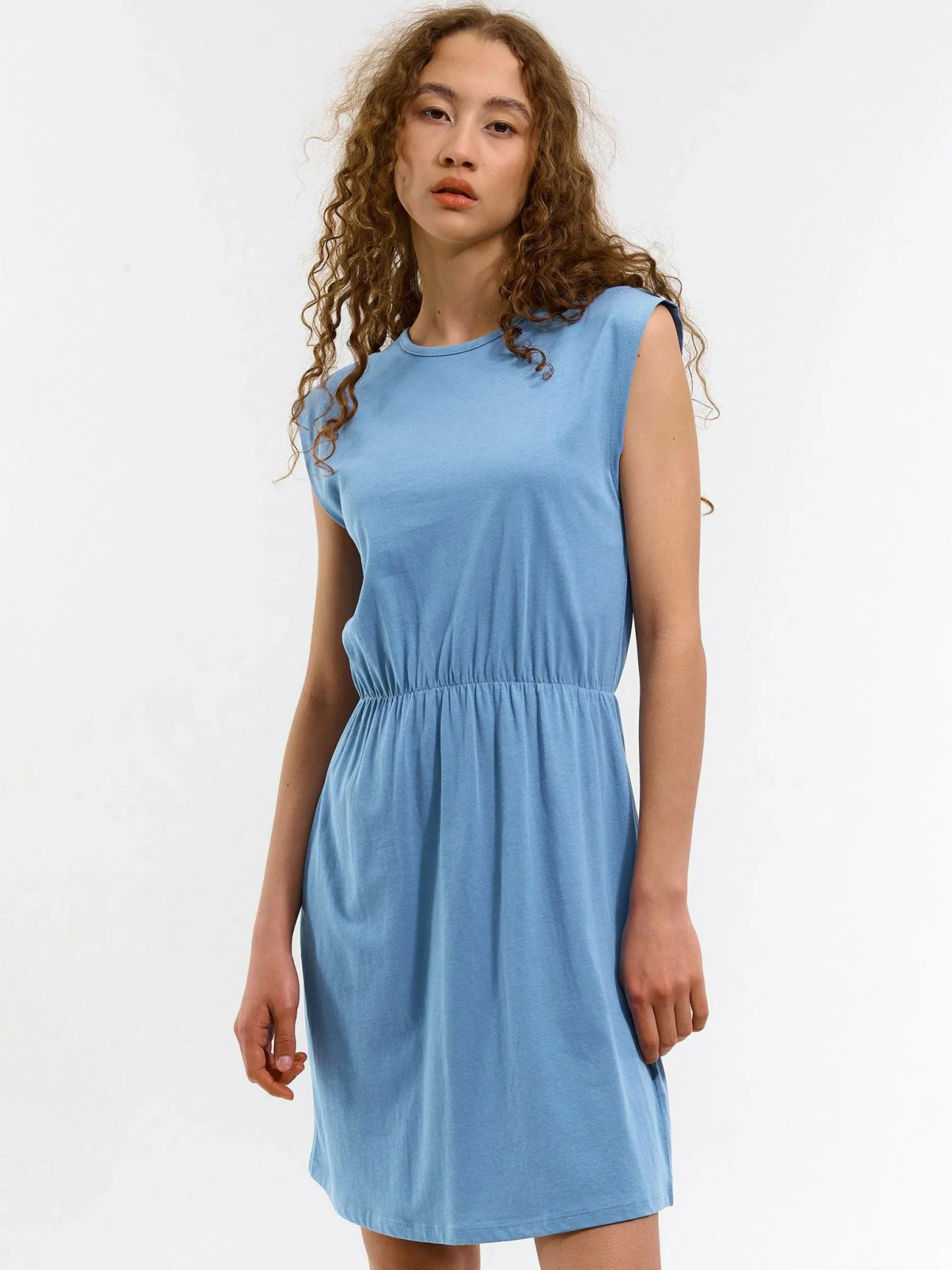 Kolor: niebieskiKrój: asyTyp: sukienkaRekaw: bez rękawówDługość: miniPattern style: pojedynczy kolorDetal: nad gł…