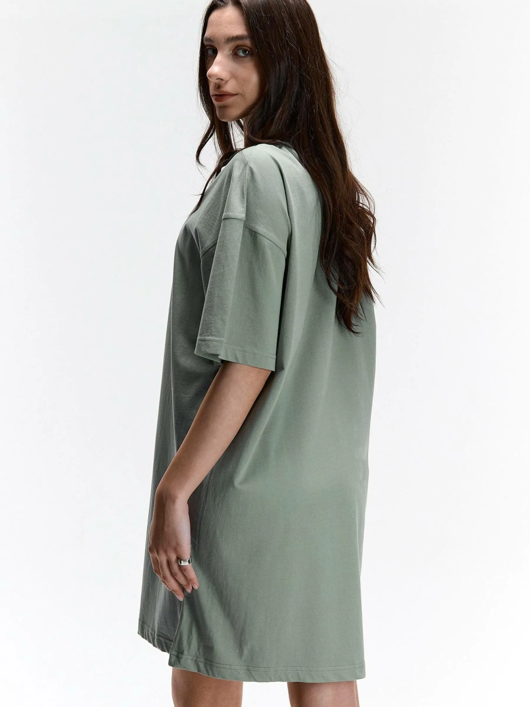 Kolor: zielonyKrój: koszulkoweTyp: sukienkaRekaw: krótki rękawDługość: miniPattern style: pojedynczy kolorDetal: n…