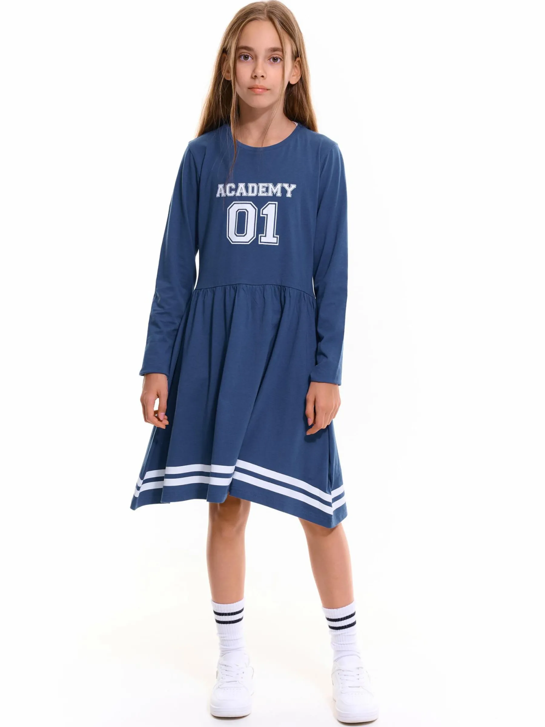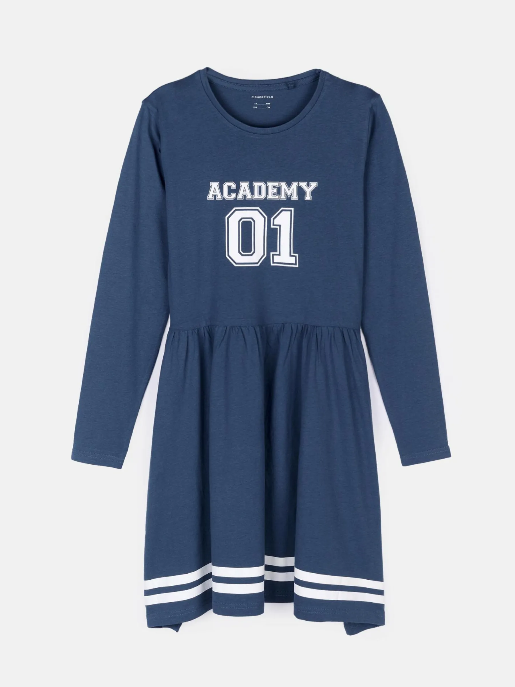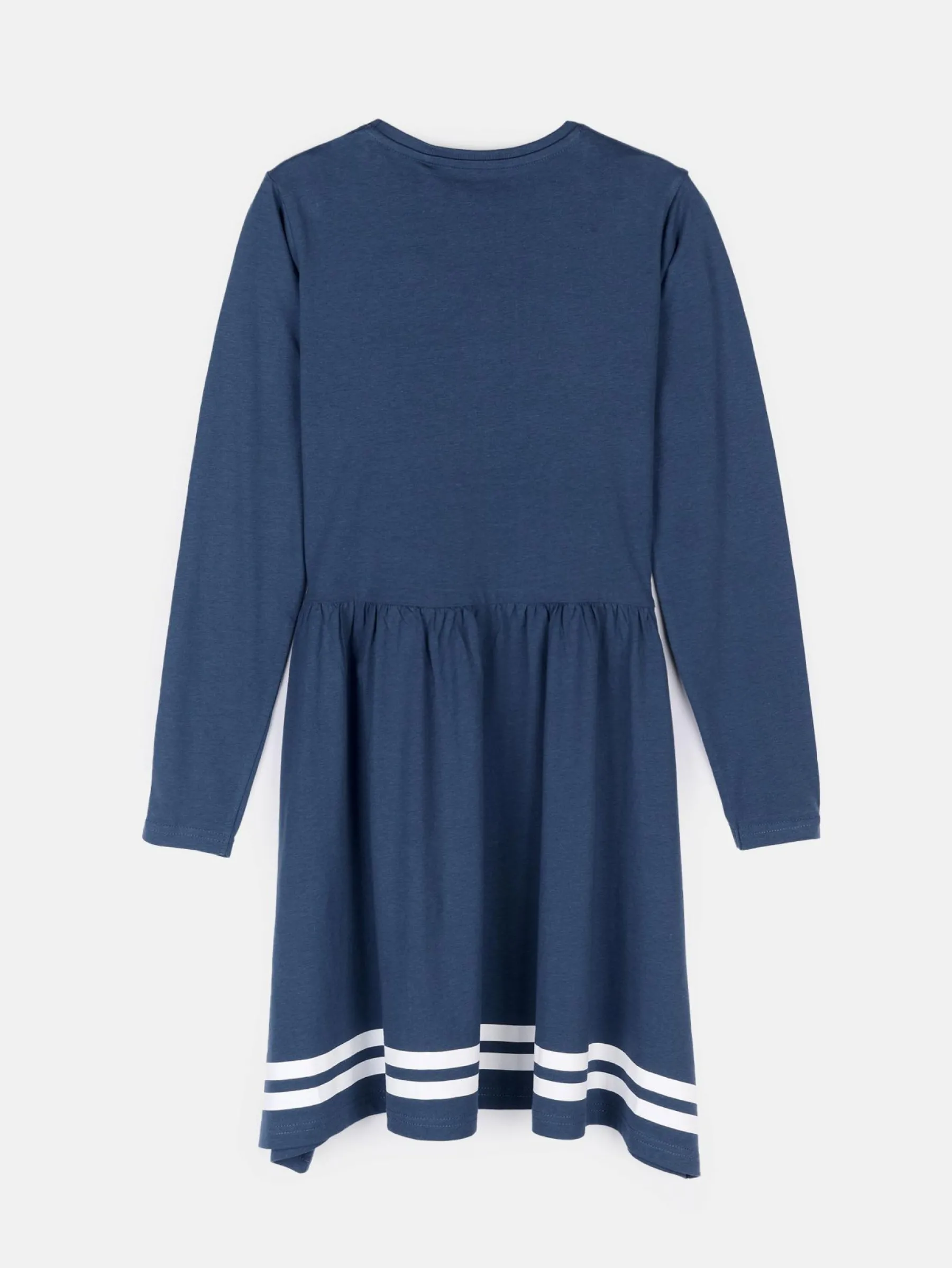 Kolor: granatowy, niebieskiKrój: asyTyp: sukienkaRekaw: długi rękawDługość: miniPattern style: z napisemMateriał:…