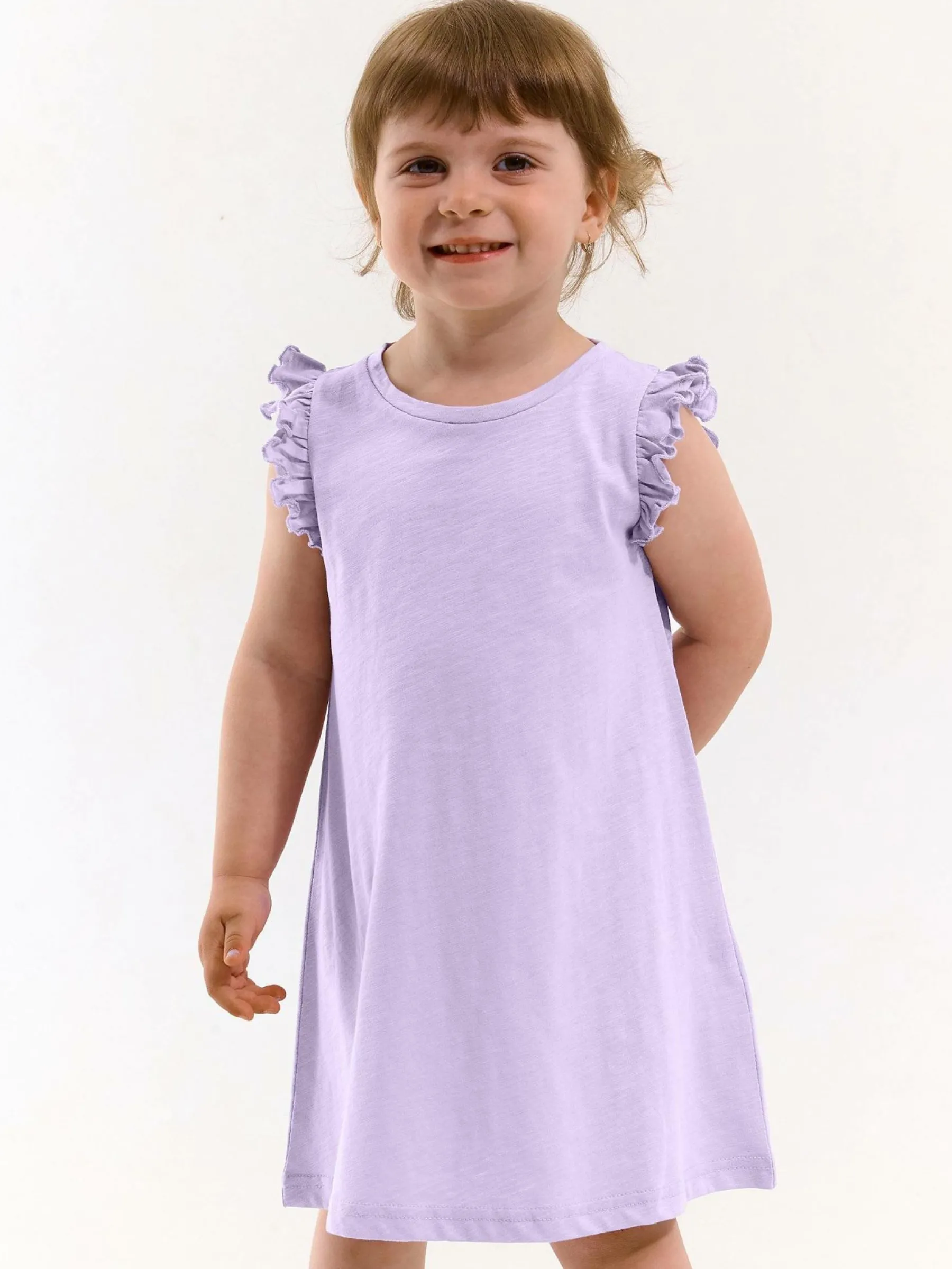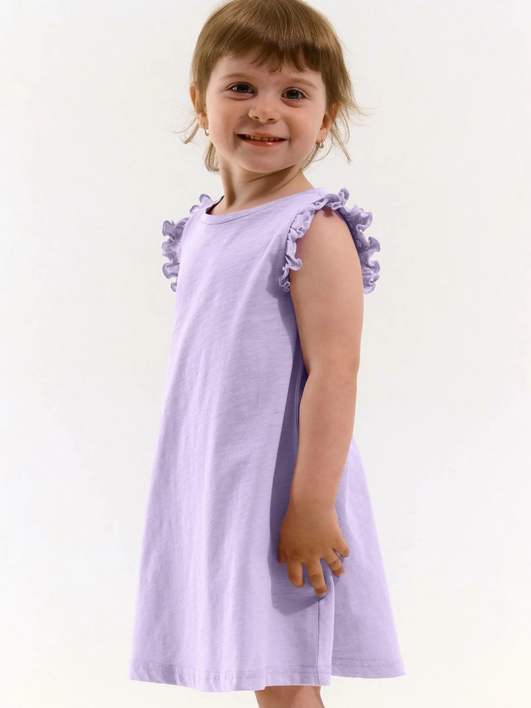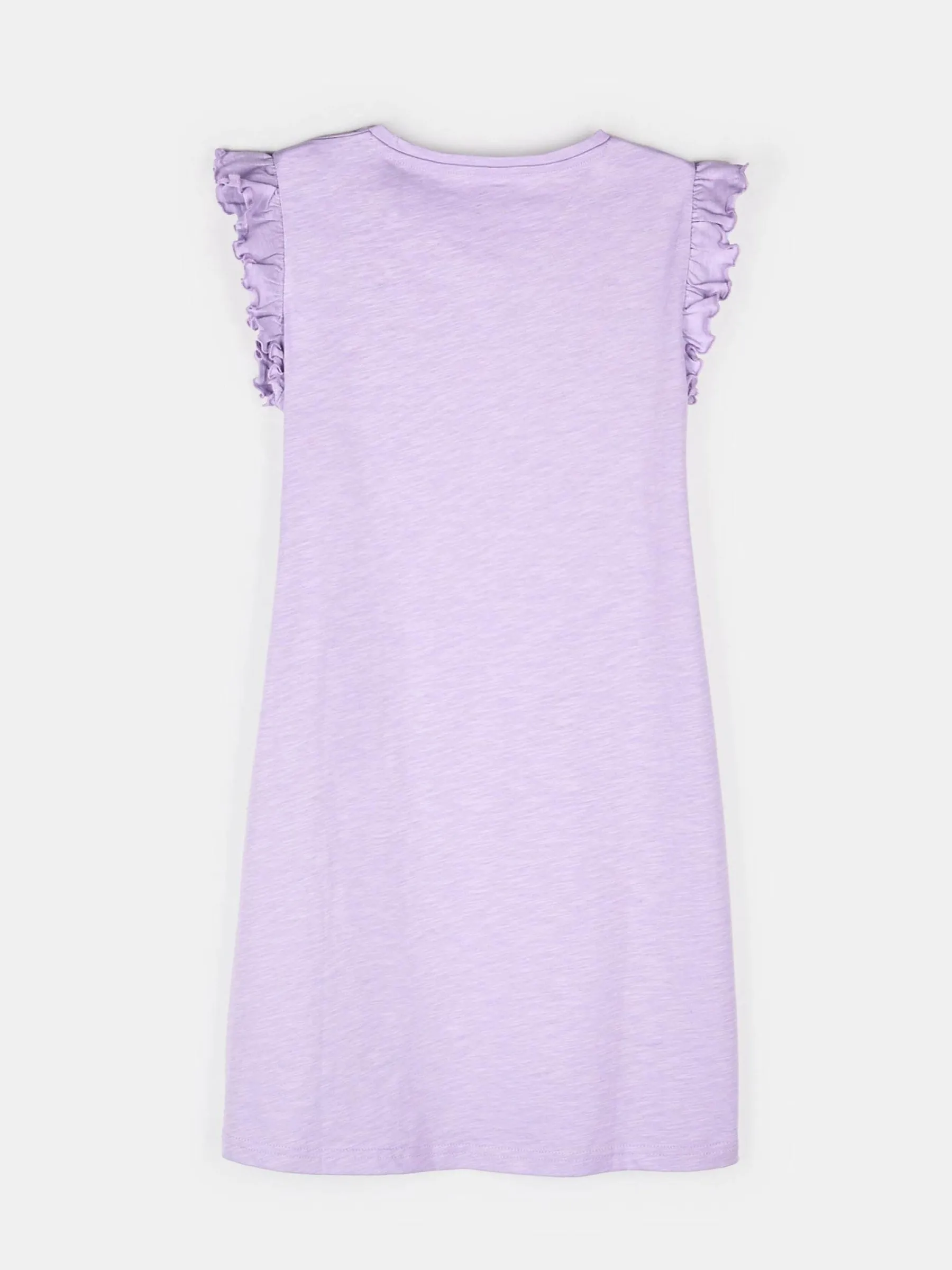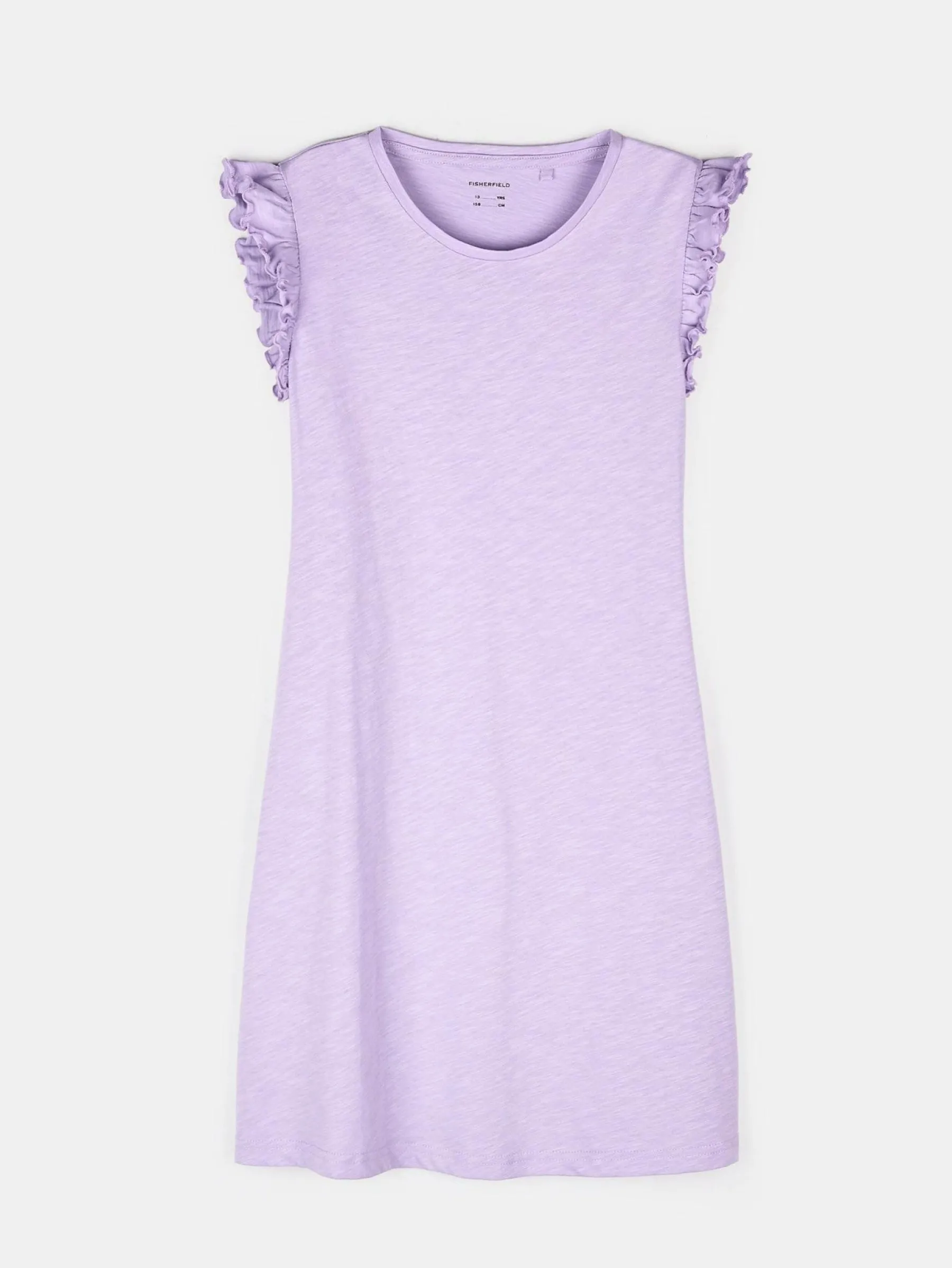Kolor: purpurowyKrój: z falbanąTyp: sukienkaRekaw: bez rękawówDługość: miniPattern style: pojedynczy kolorDetal: …