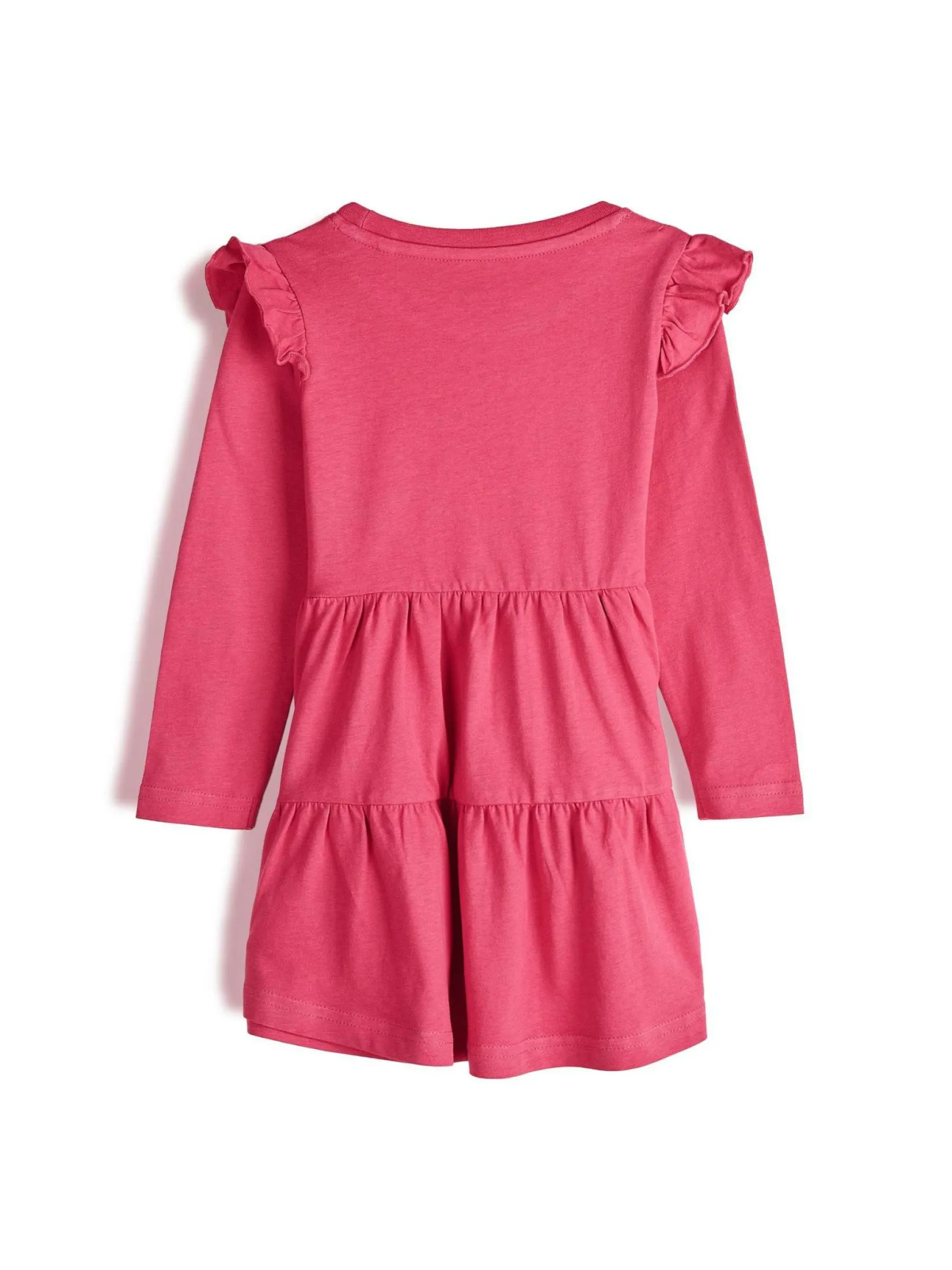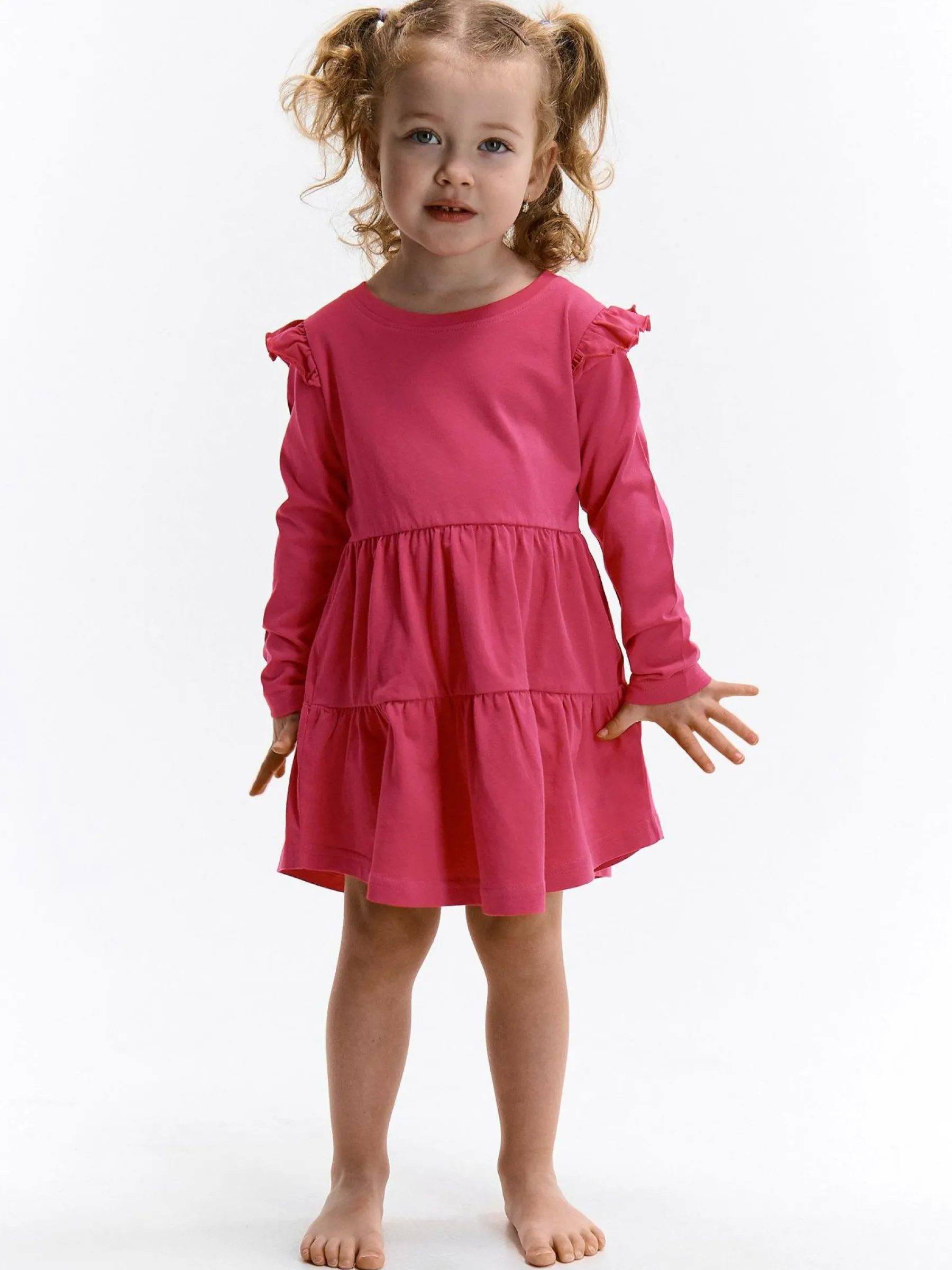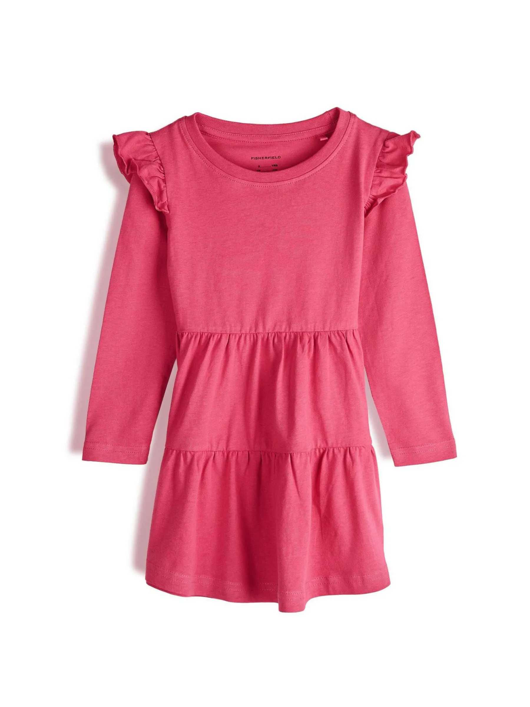 Kolor: różowyKrój: z falbanąTyp: sukienkaRekaw: długi rękawDługość: miniPattern style: pojedynczy kolorDetal: n…