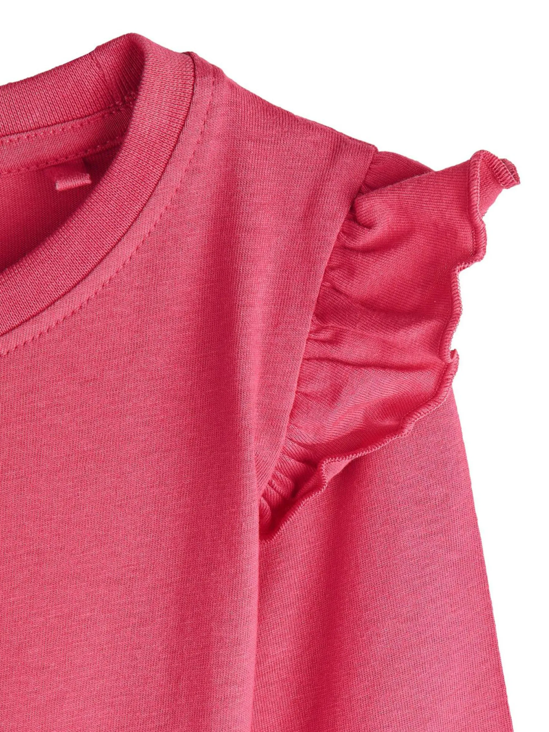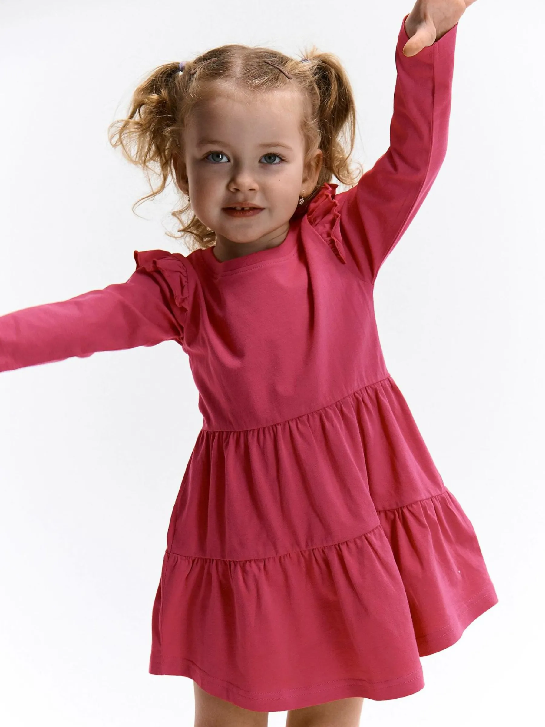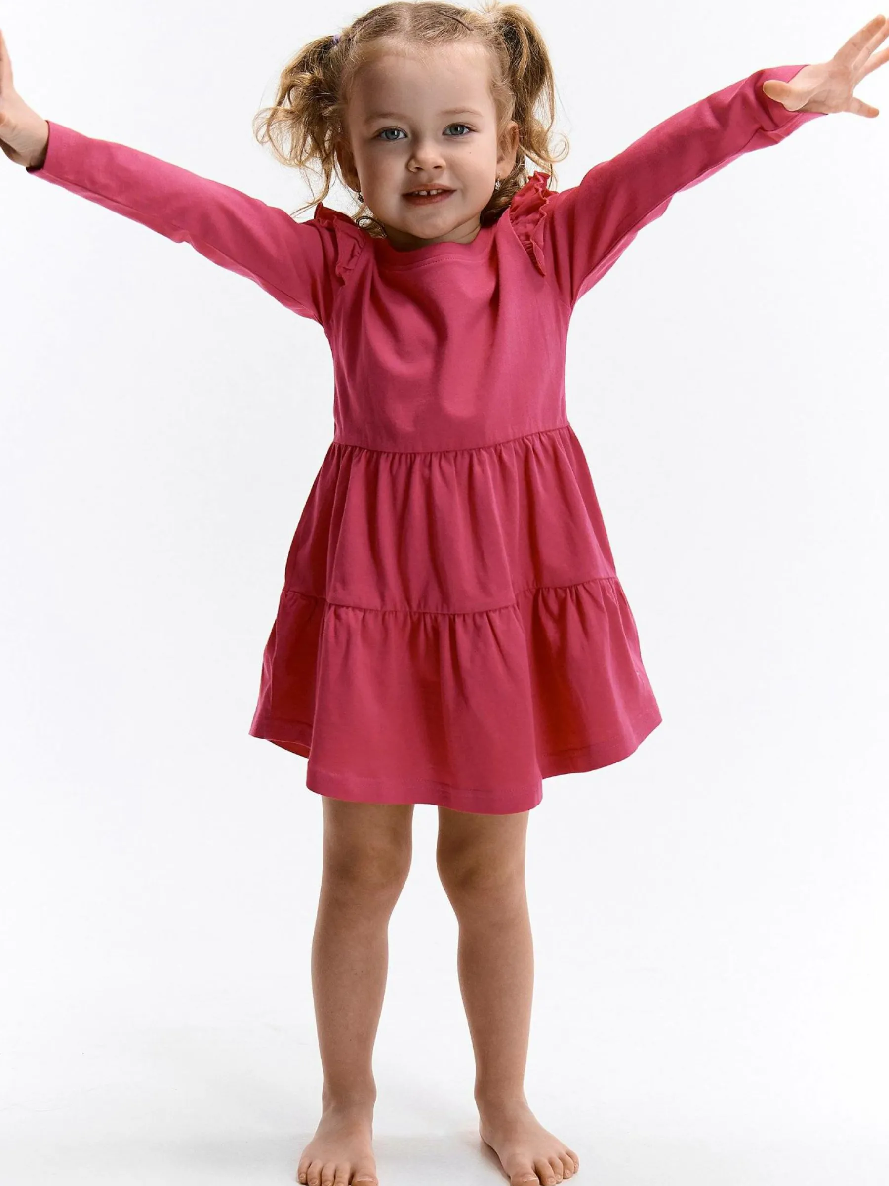 Kolor: różowyKrój: z falbanąTyp: sukienkaRekaw: długi rękawDługość: miniPattern style: pojedynczy kolorDetal: n…